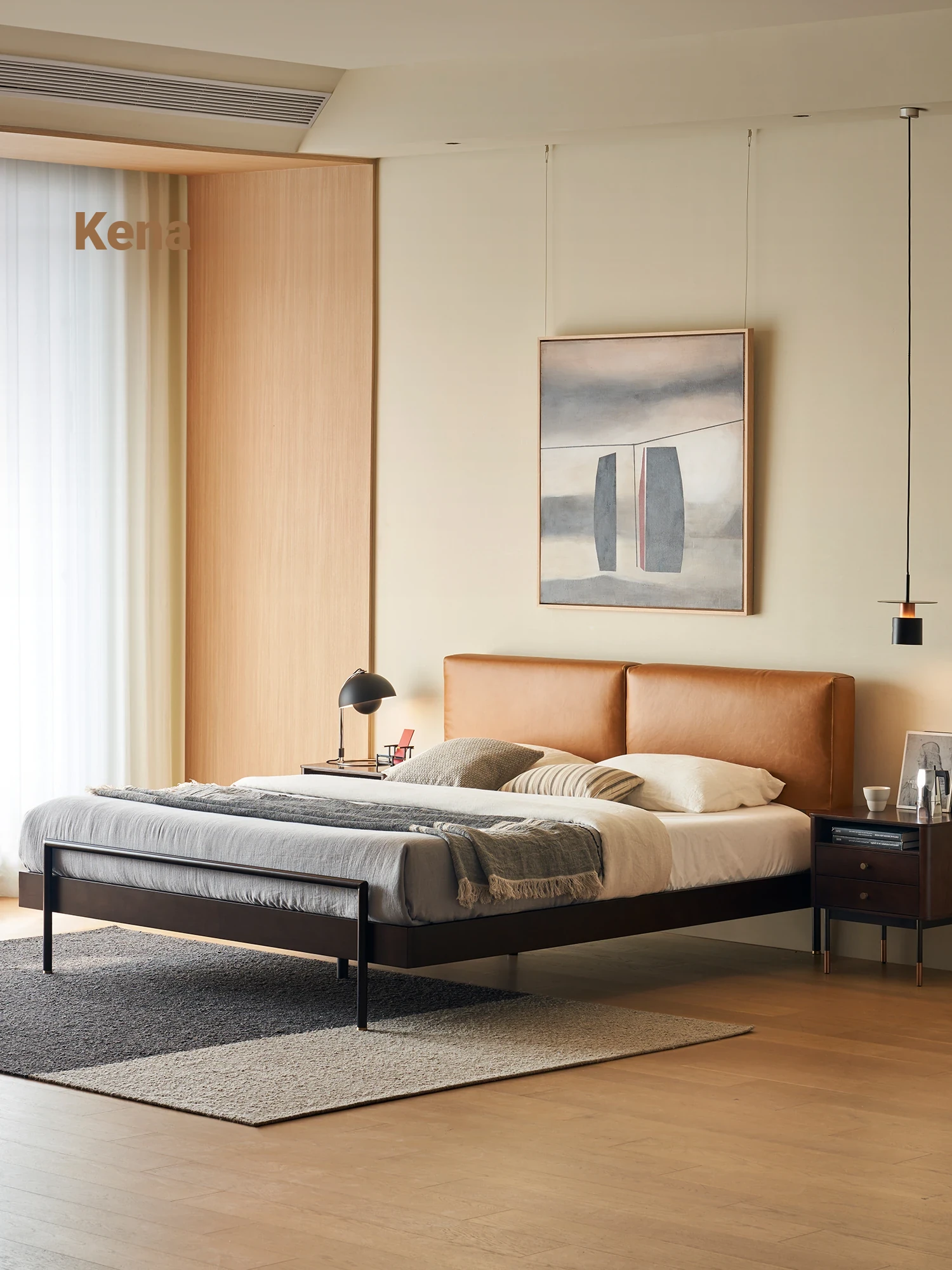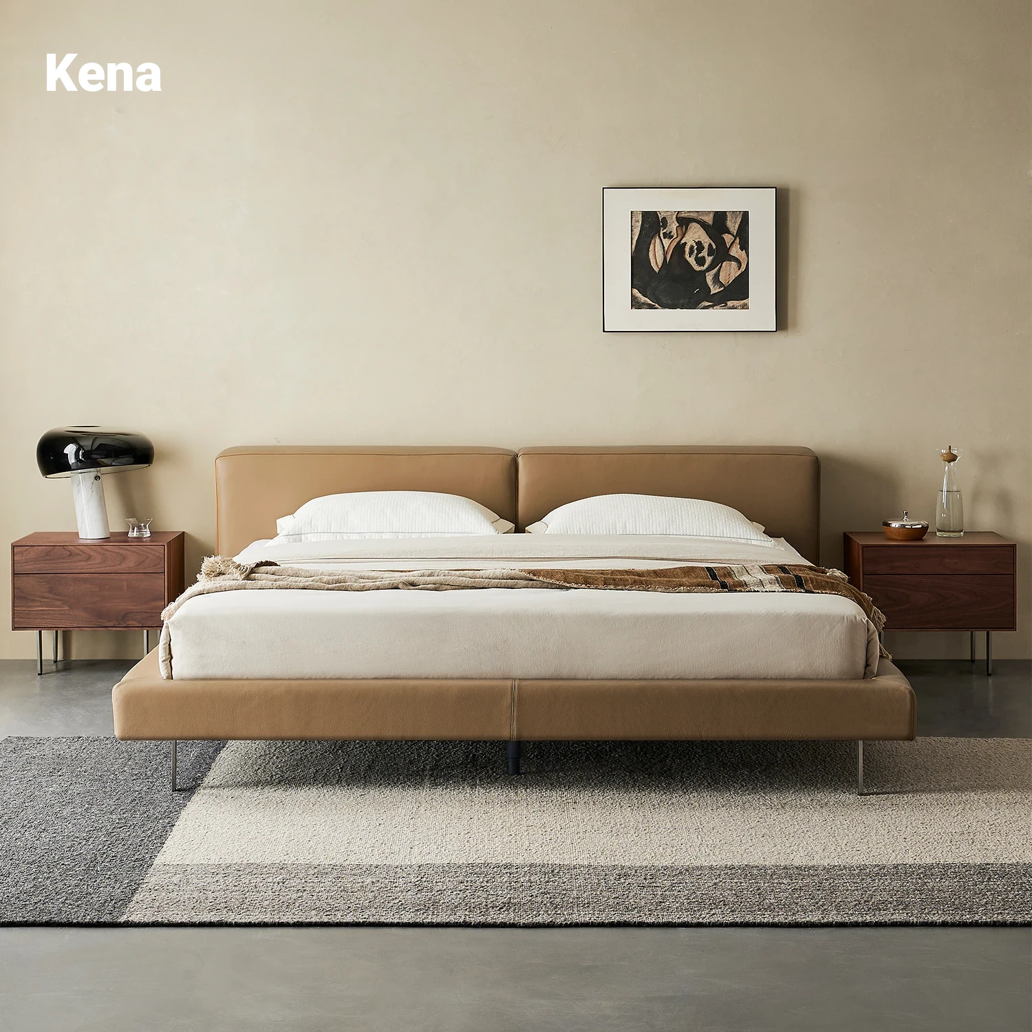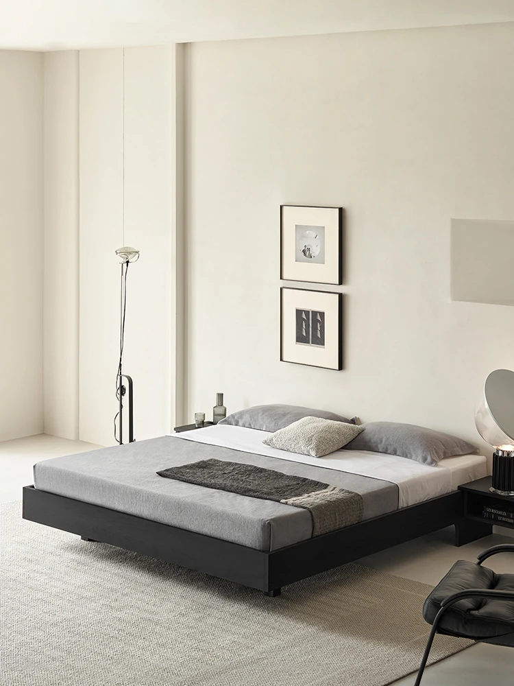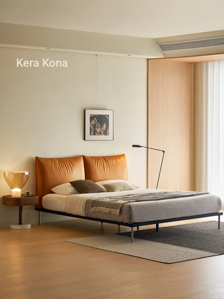 Kena Floating Island Bed - Wabi-Sabi Minimalist Leather Double Bed for Master Bedroom, 1.8m Retro Design, Perfect Blend of Style and Comfort