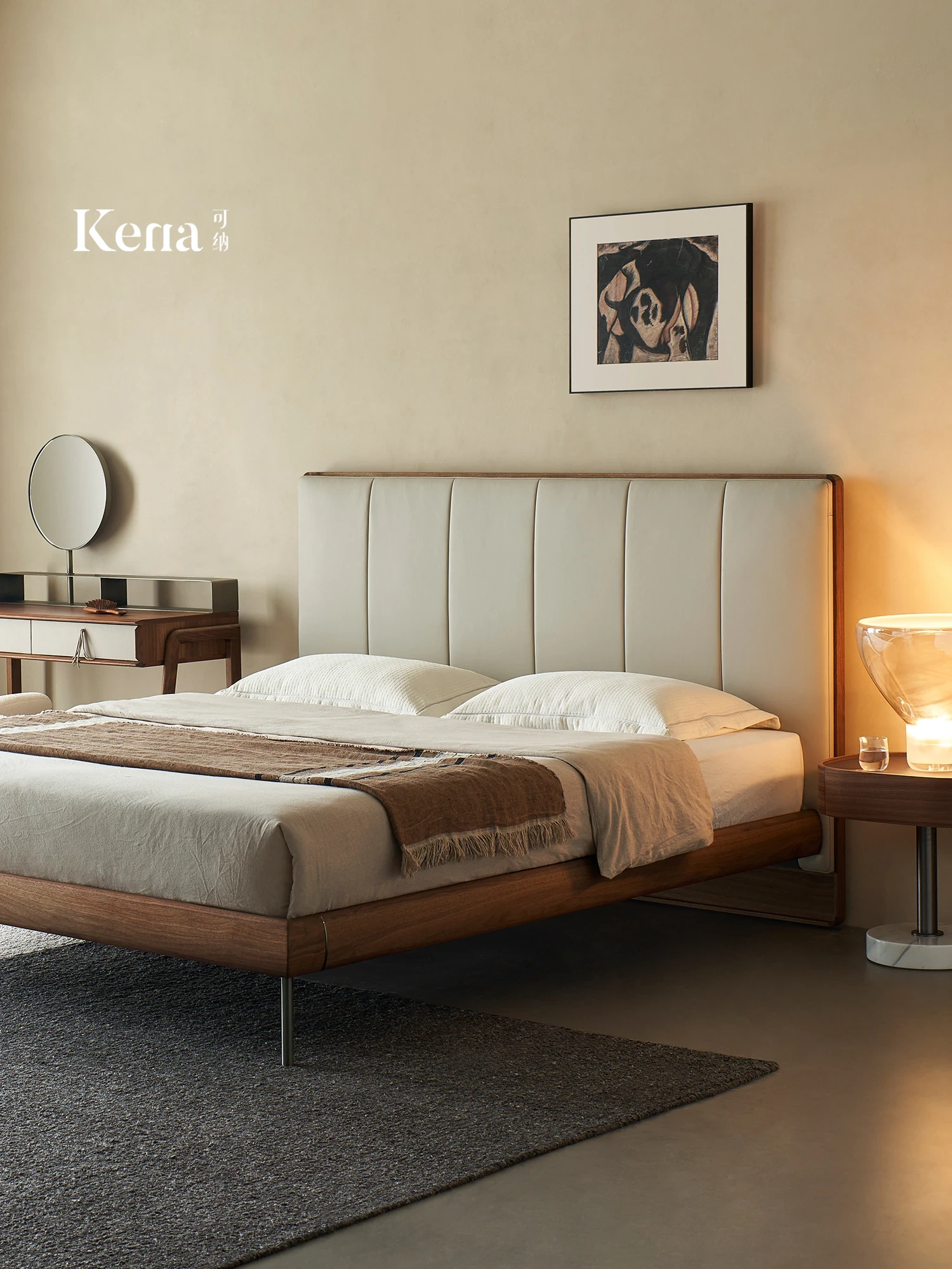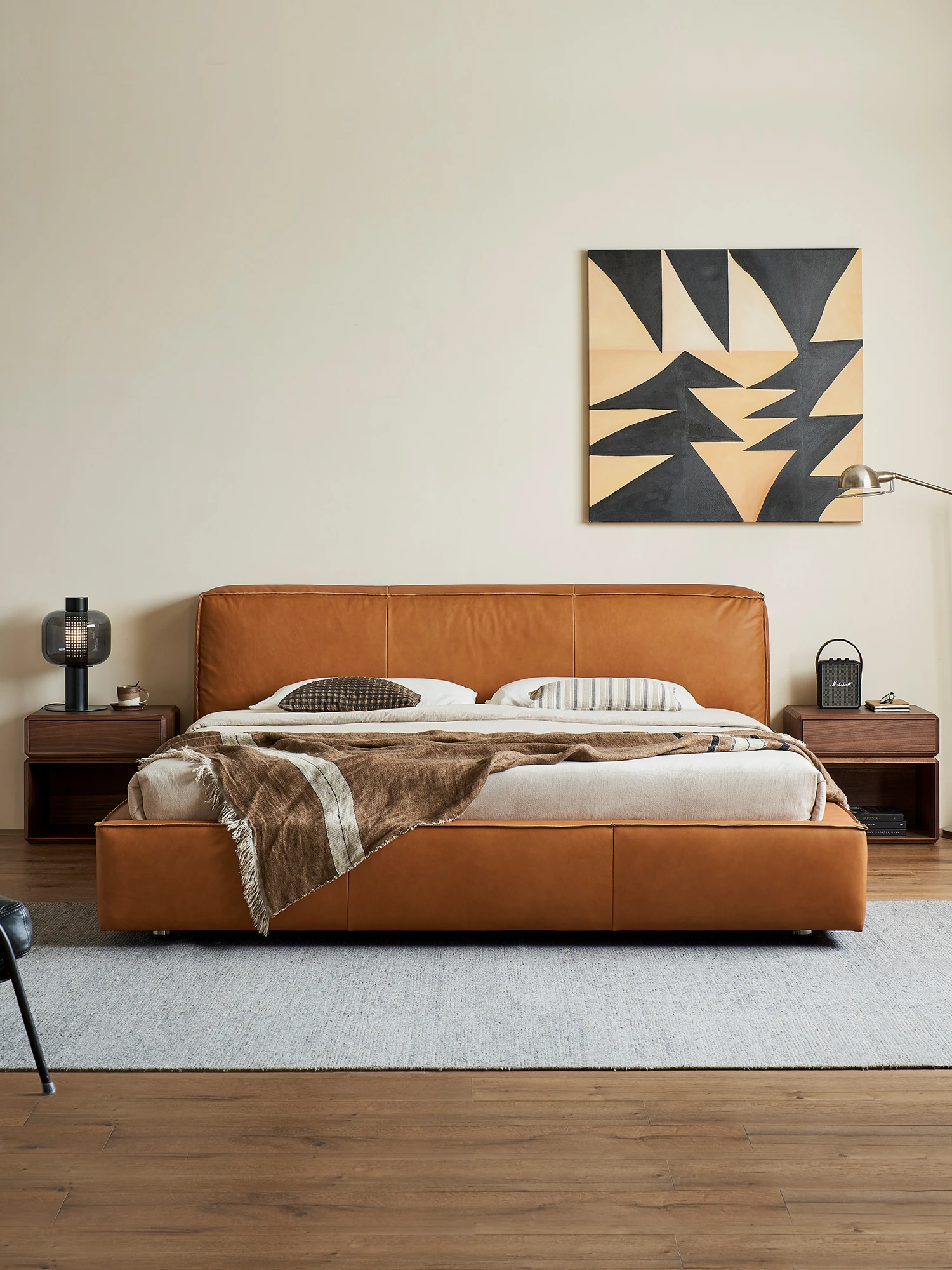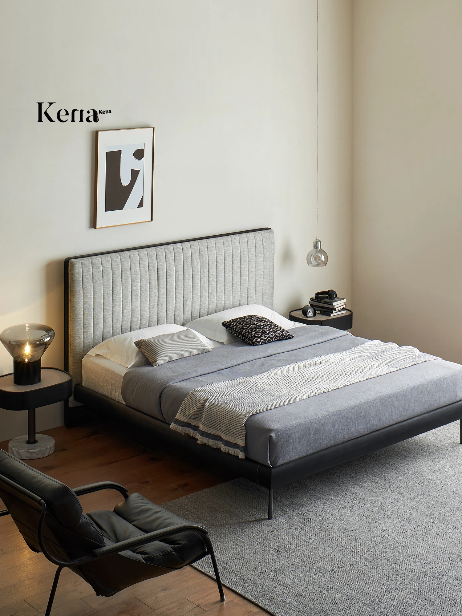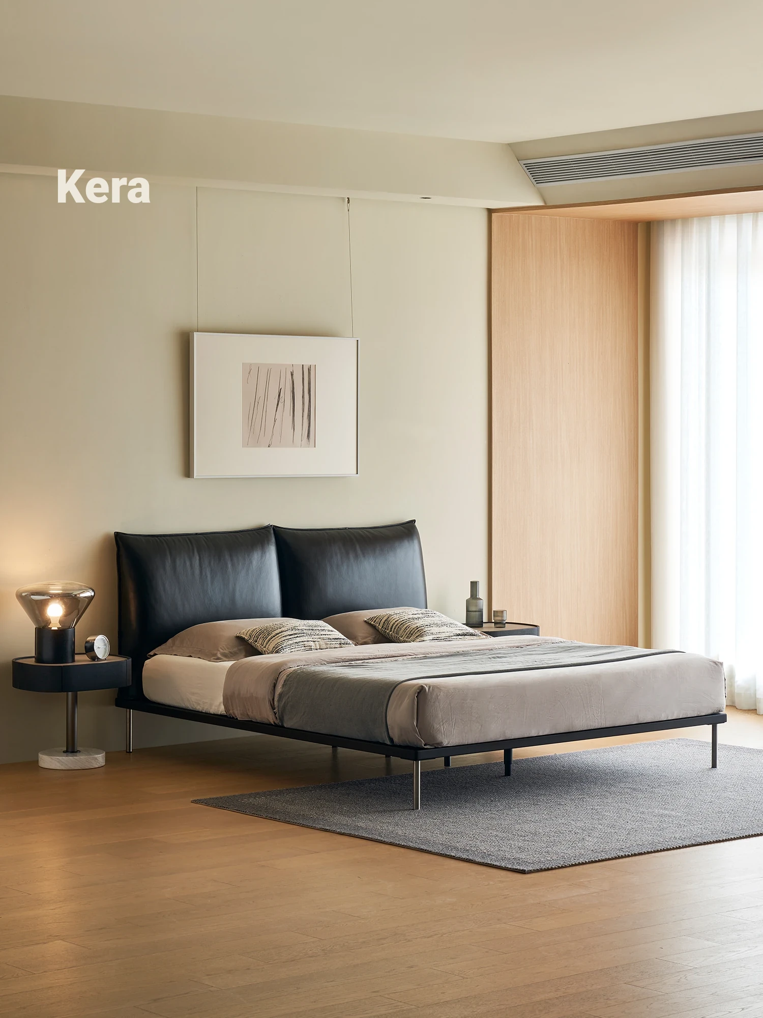 Kena Floating Island Bed - Wabi-Sabi Minimalist Leather Double Bed for Master Bedroom, 1.8m Retro Design, Perfect Blend of Style and Comfort