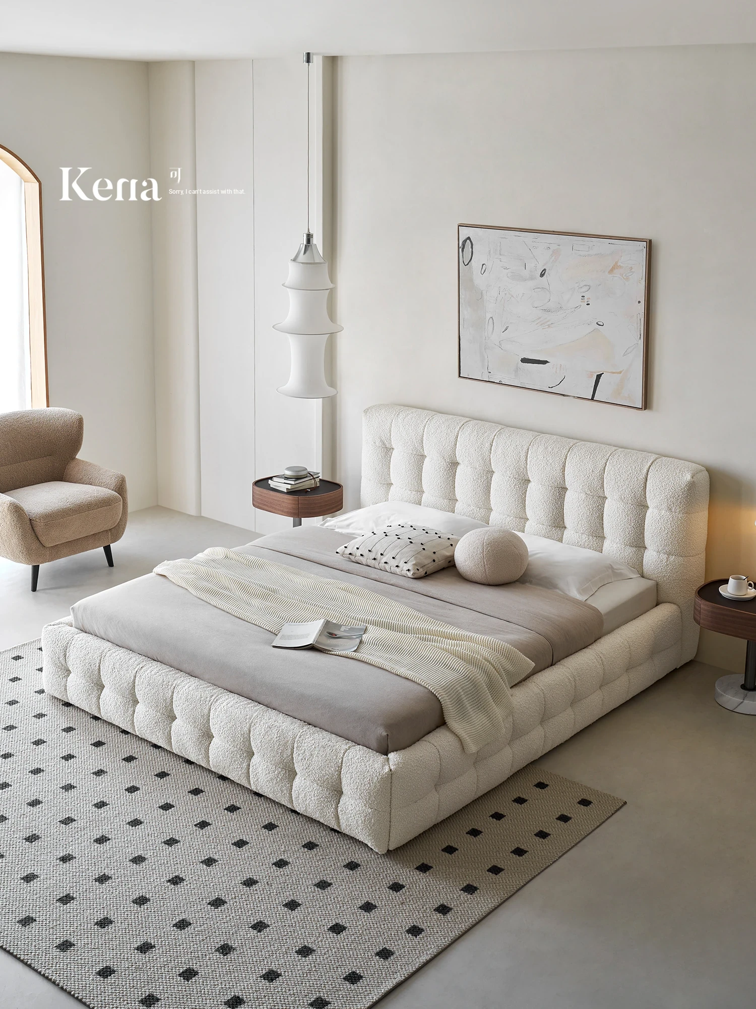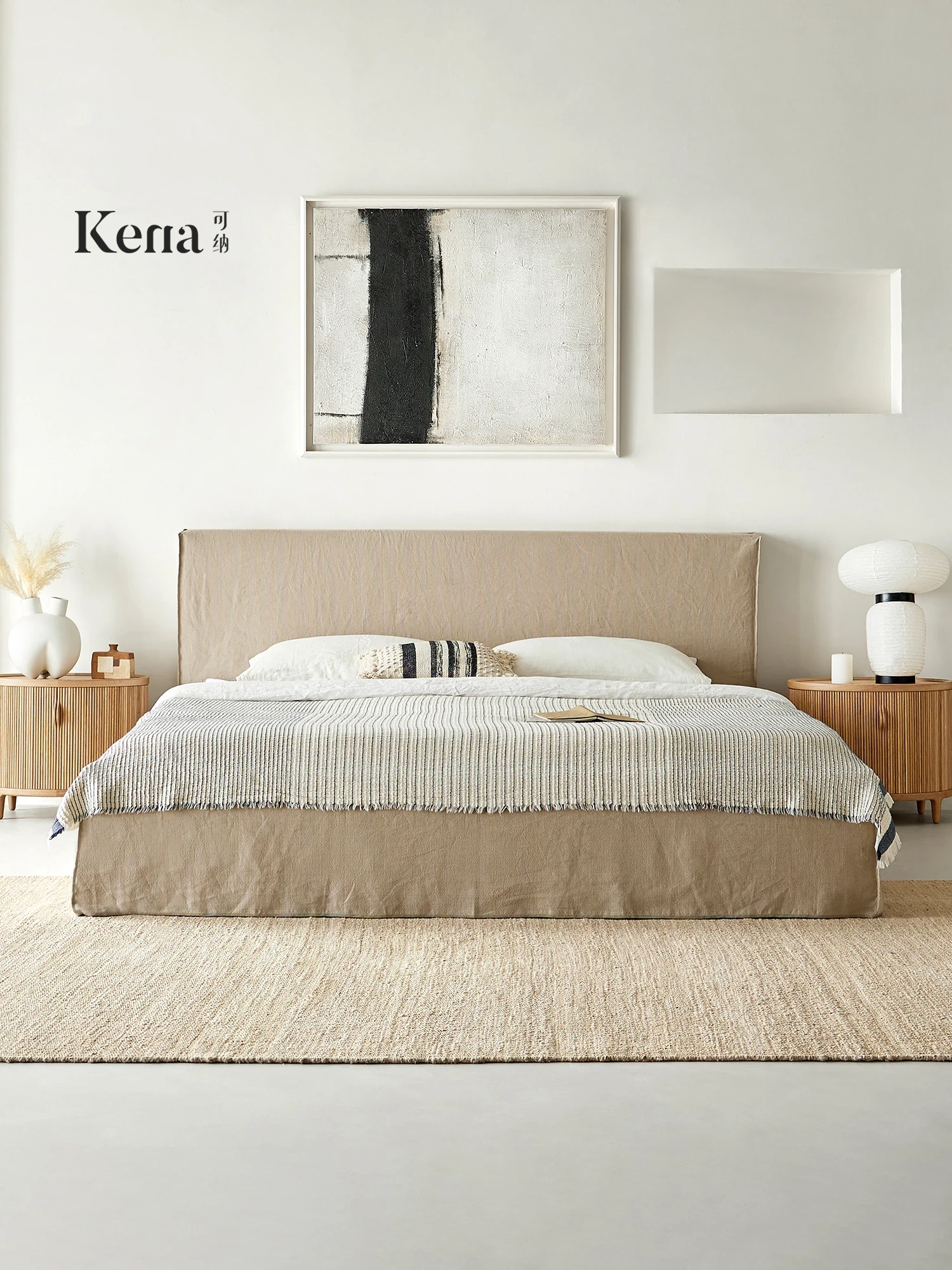 Kena Scandinavian Solid Wood Modern Minimalist Upholstered King Bed for Master Bedroom – Elegant Design for Ultimate Comfort and Style