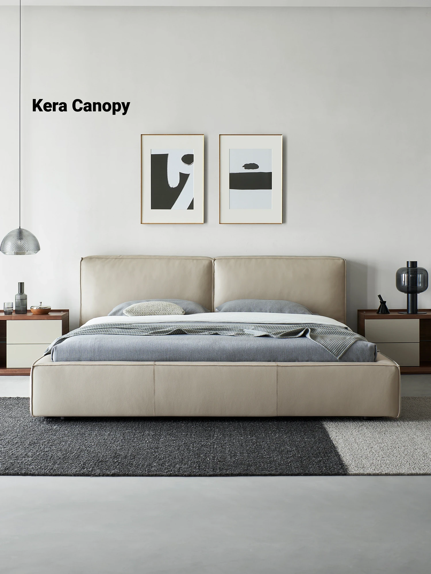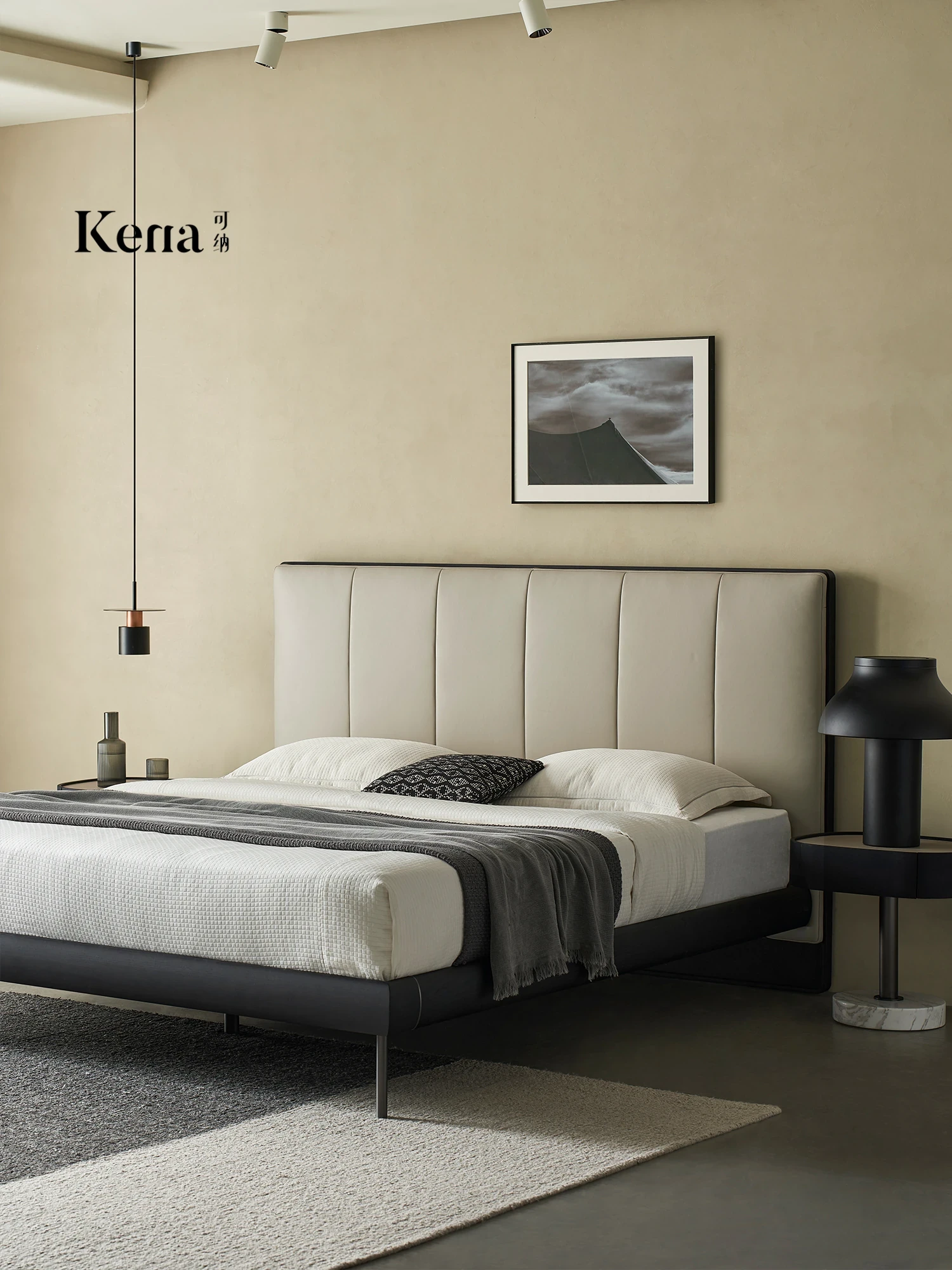 Kena Italian Minimalist Genuine Leather Bed - Modern Soft-Padded Double Bed with Floating Design, Top-Grade Cowhide, 1.8m King Size for Master Bedroom - Elevate Your Sleep Experience with Style and Comfort!