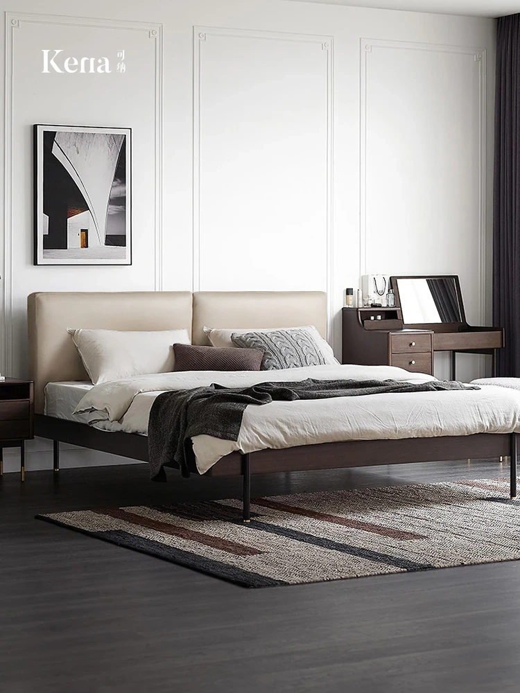 Kena Elegant Solid Wood Bed - Italian Light Luxury Retro Soft Leather Upholstered with Premium Top Grain Cowhide, Modern Minimalist Design for Master Bedroom Z