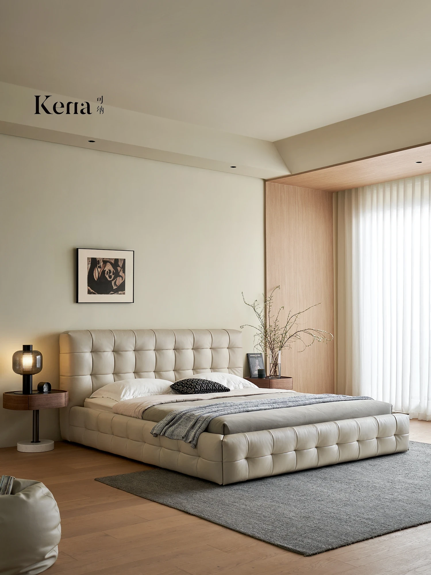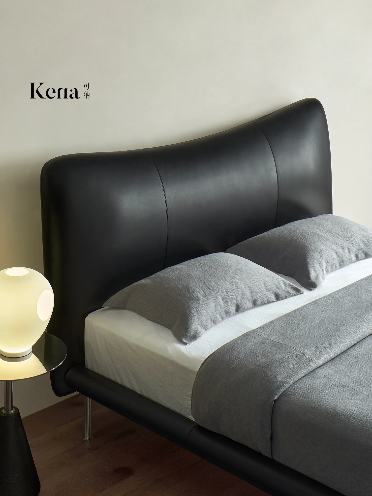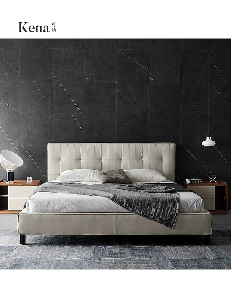 Kena Chic Modern Minimalist Genuine Leather Chiffon Bed - Luxurious 1.8m King Size Double Bed with Top-Grade Cowhide for Your Master Bedroom
