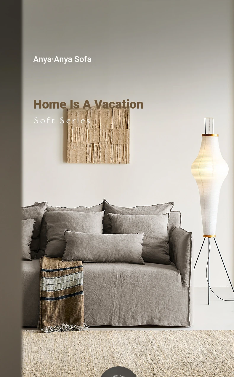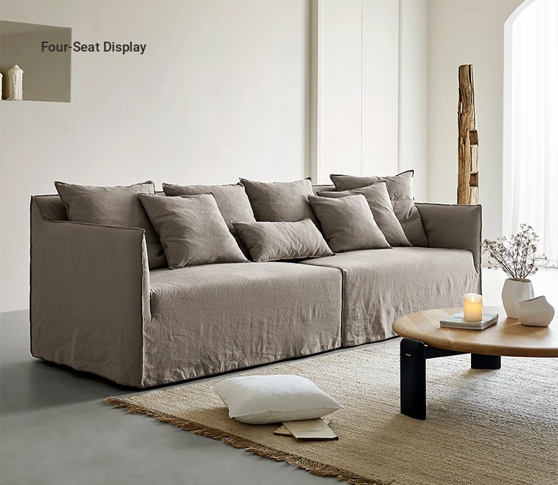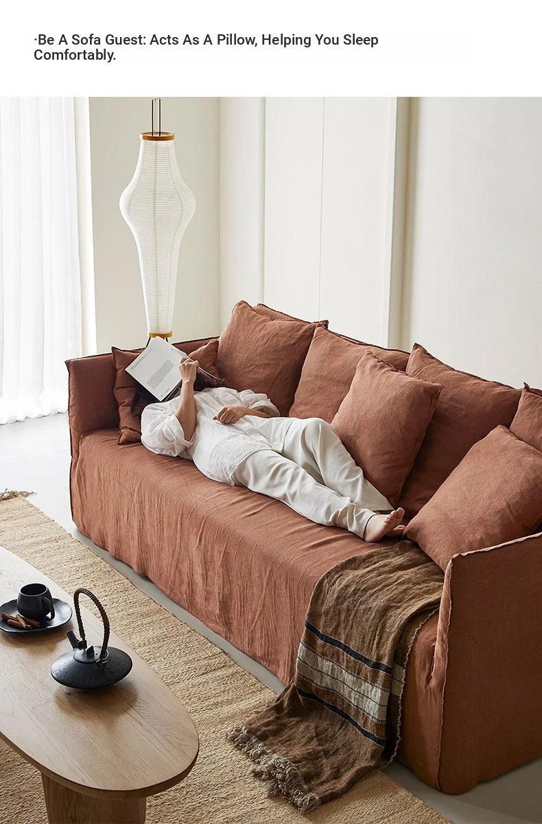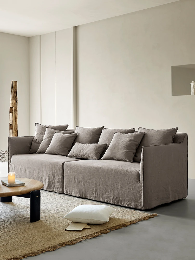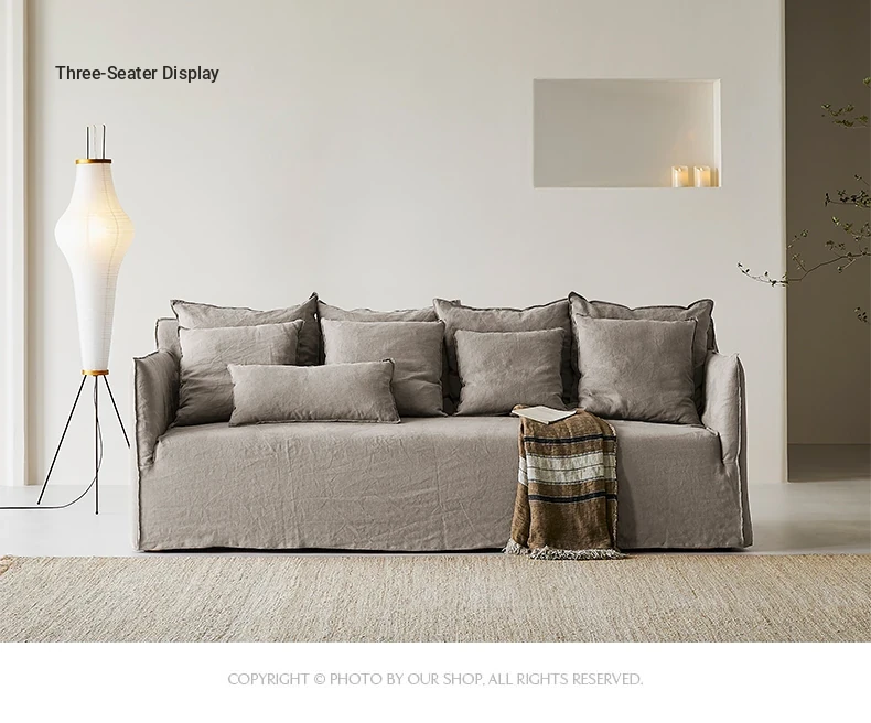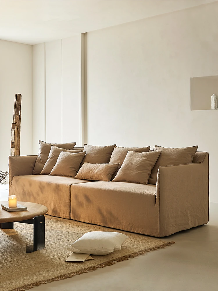 Kena Ghost Sofa - Minimalist Scandinavian Design in Light Beige Linen, Embracing Wabi-Sabi Aesthetics, Removable and Washable Cover for Easy Care