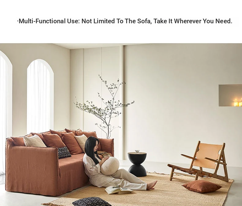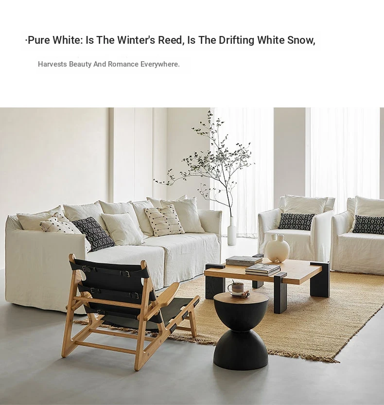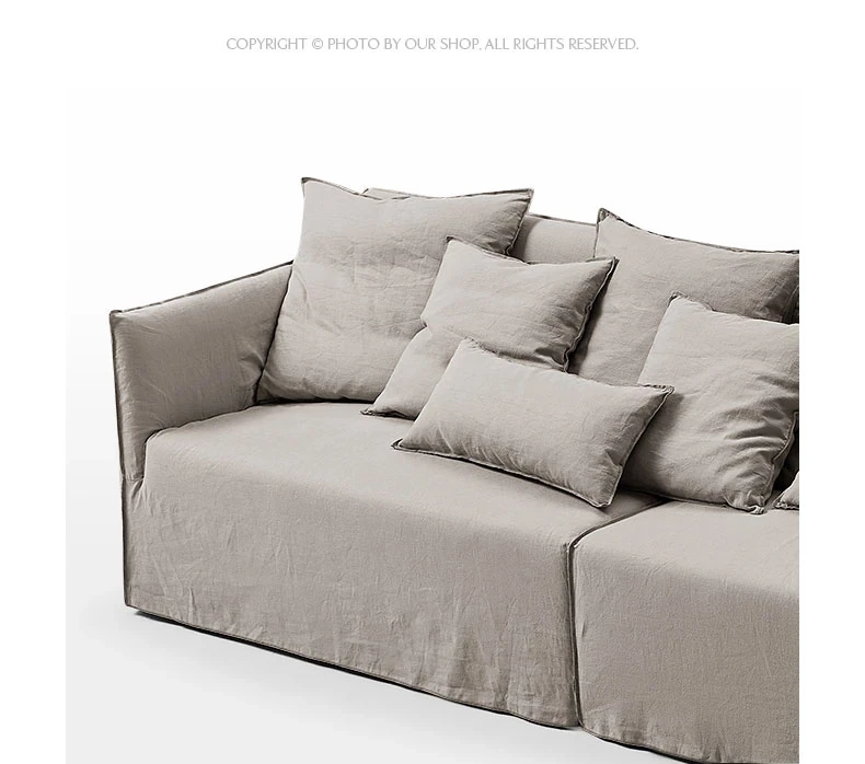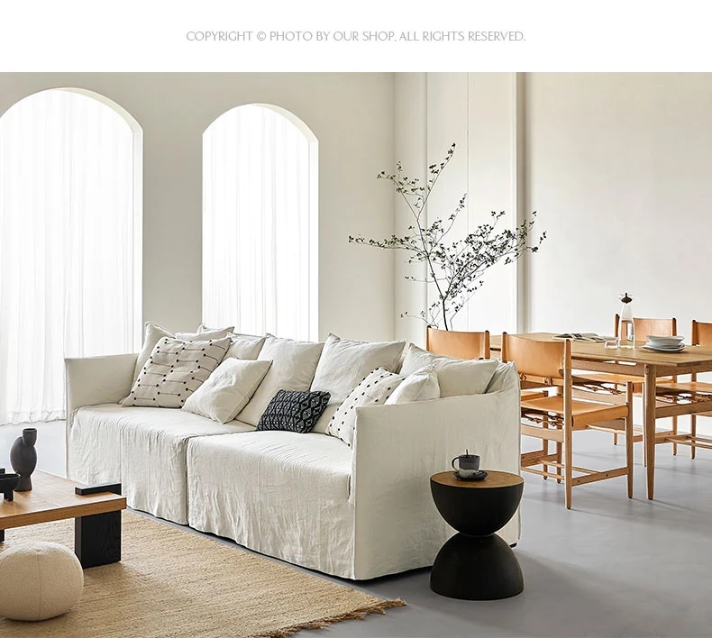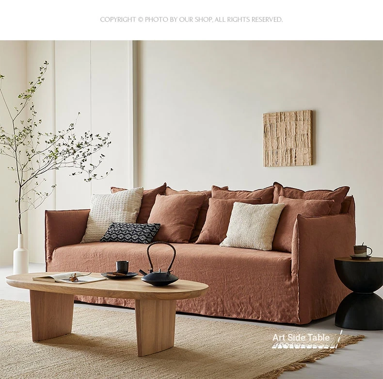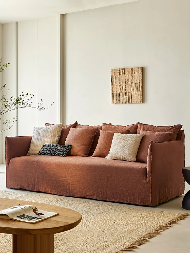 Kena Ghost Sofa - Minimalist Scandinavian Design in Light Beige Linen, Embracing Wabi-Sabi Aesthetics, Removable and Washable Cover for Easy Care