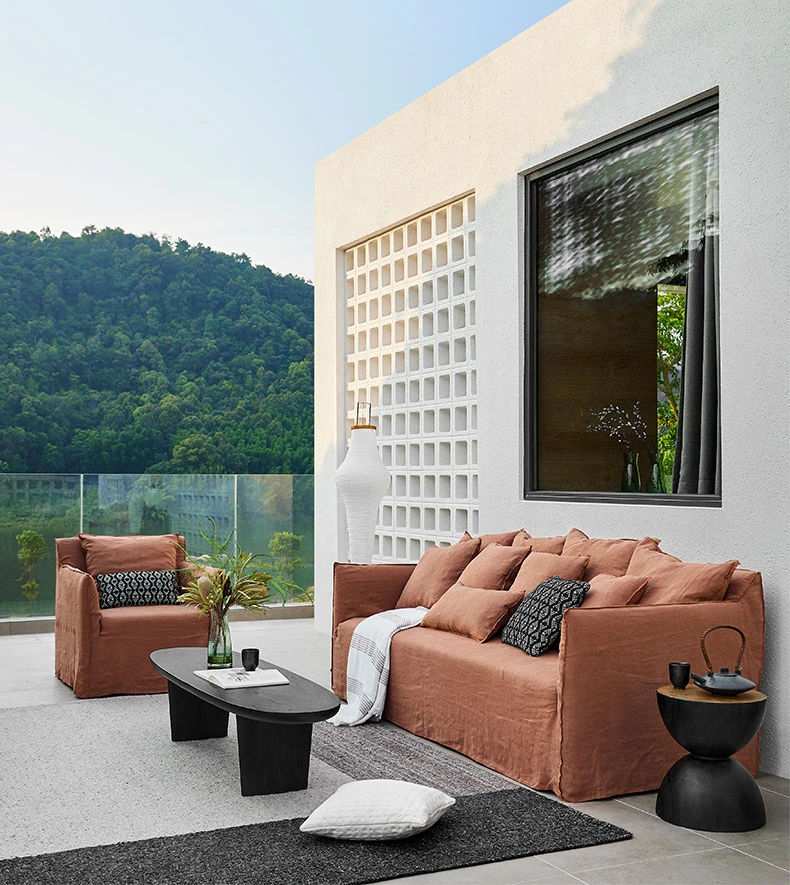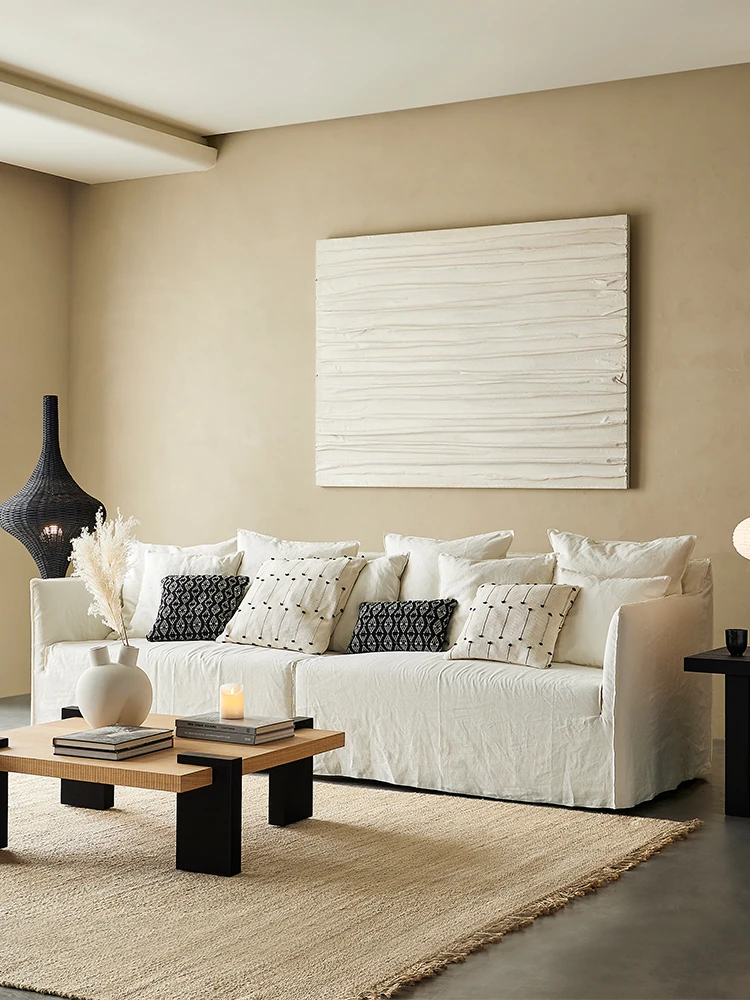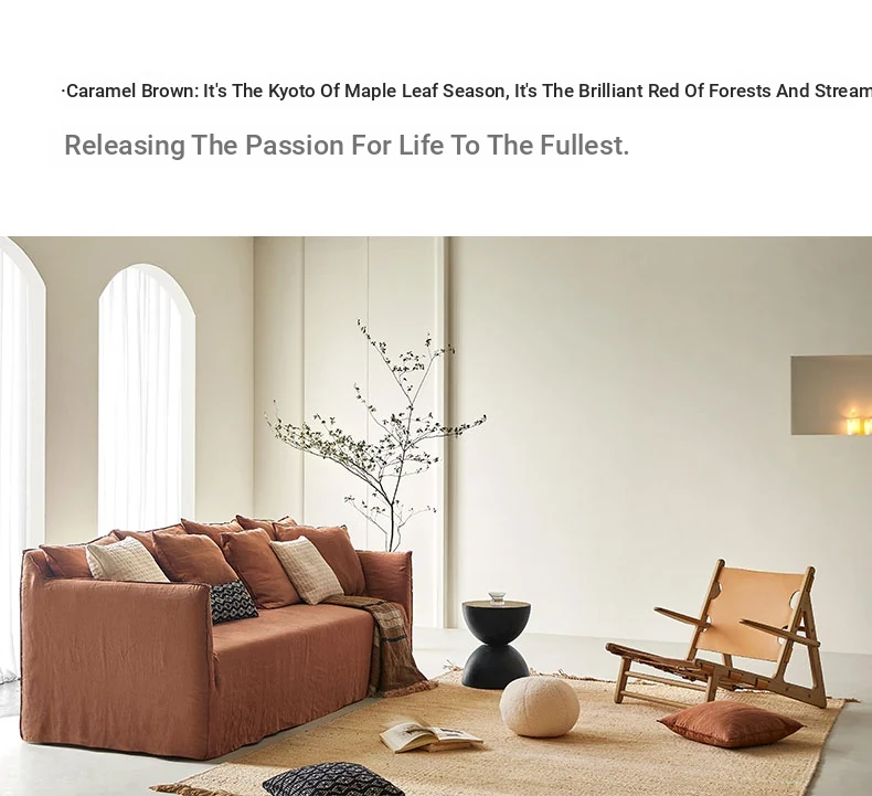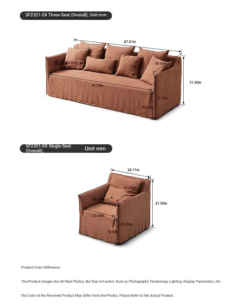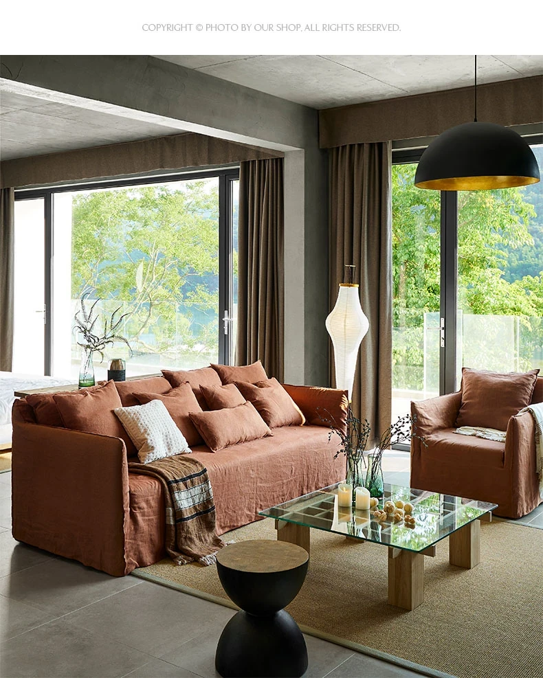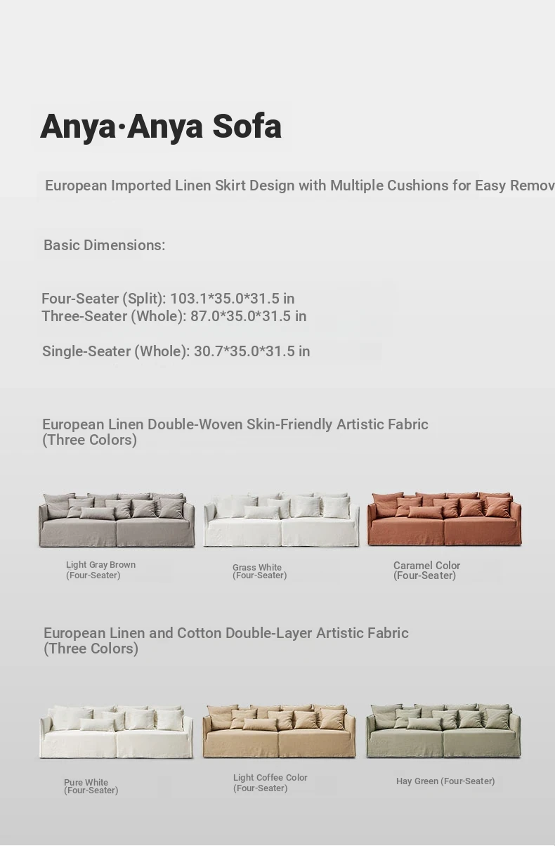 Kena Ghost Sofa - Minimalist Scandinavian Design in Light Beige Linen, Embracing Wabi-Sabi Aesthetics, Removable and Washable Cover for Easy Care