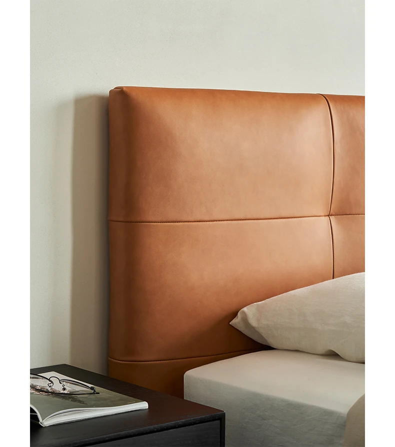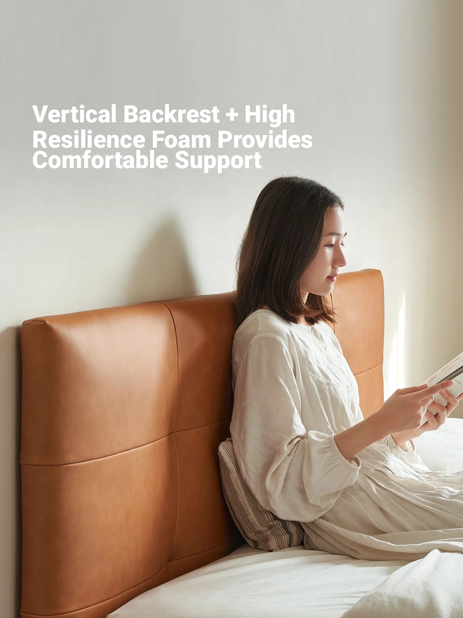 [New Edition] [Log Color Frame-camel Bedhead] Leather Solid Wood Bed In Stock