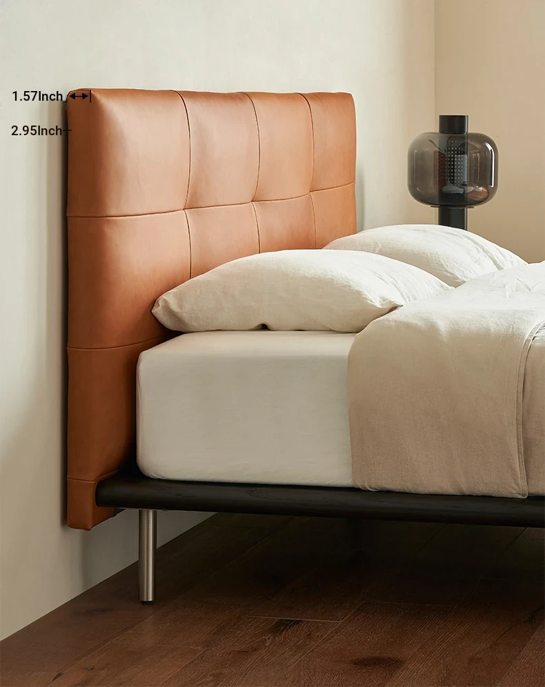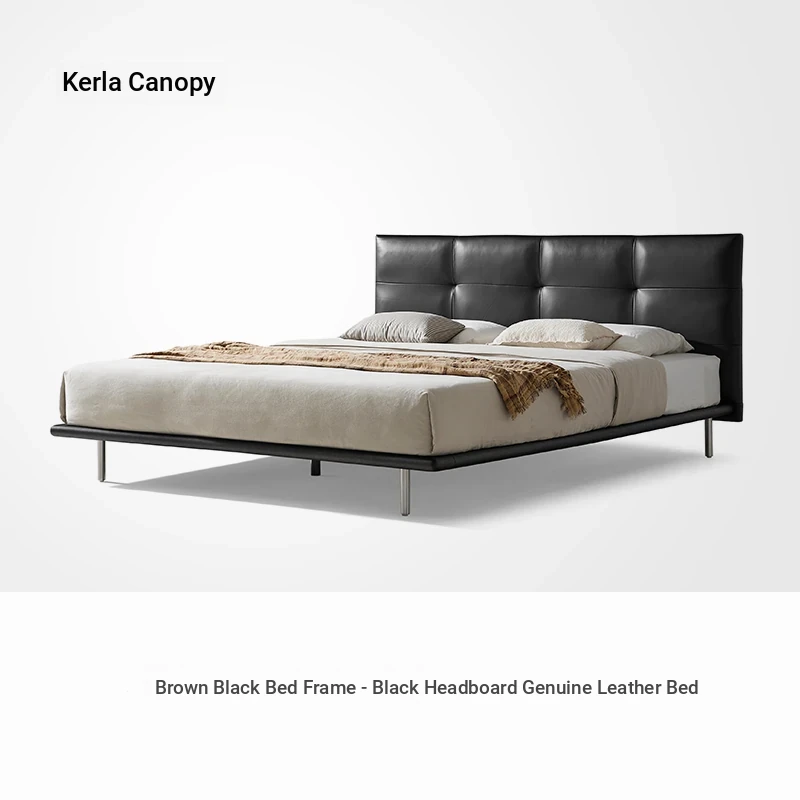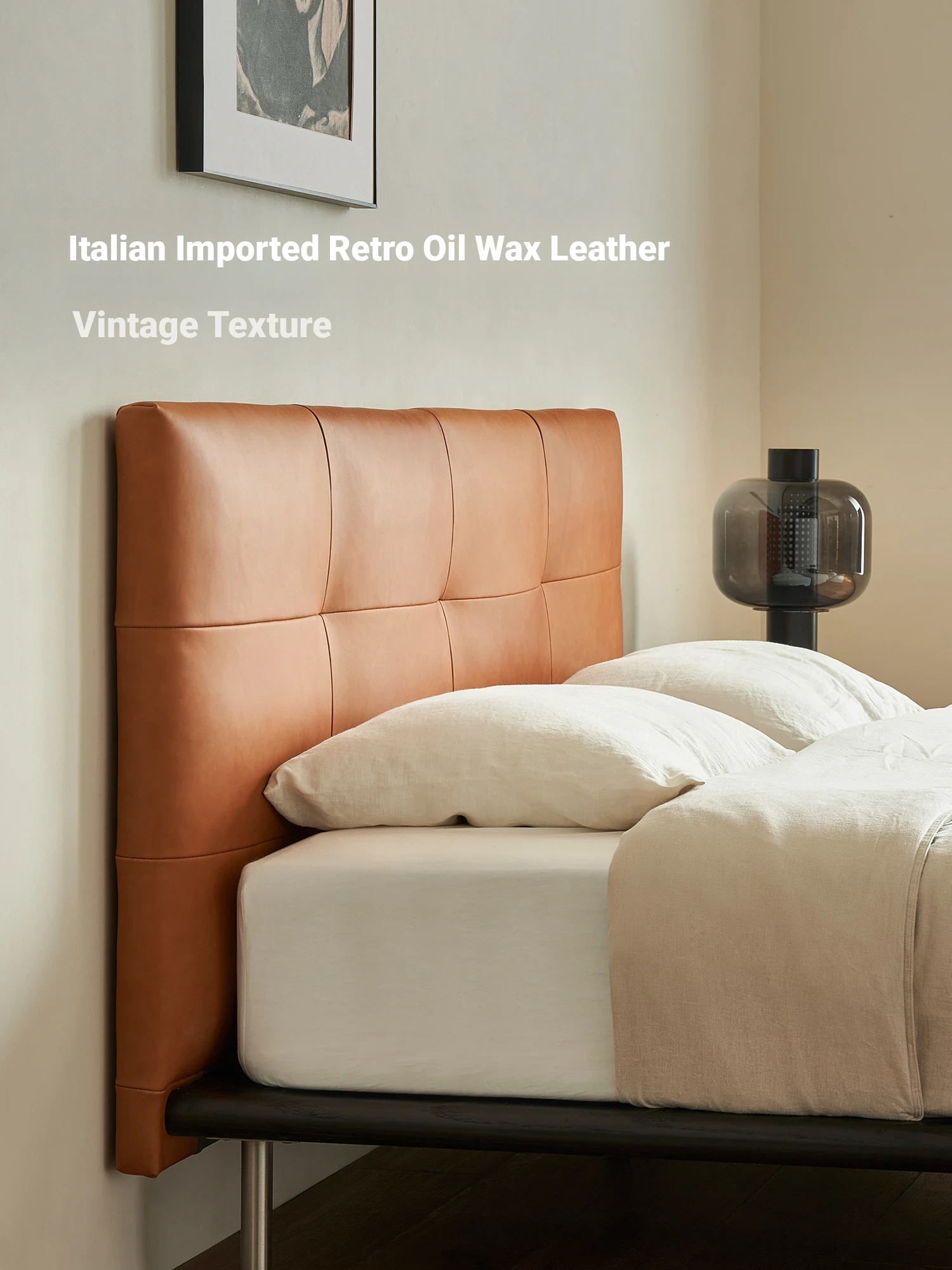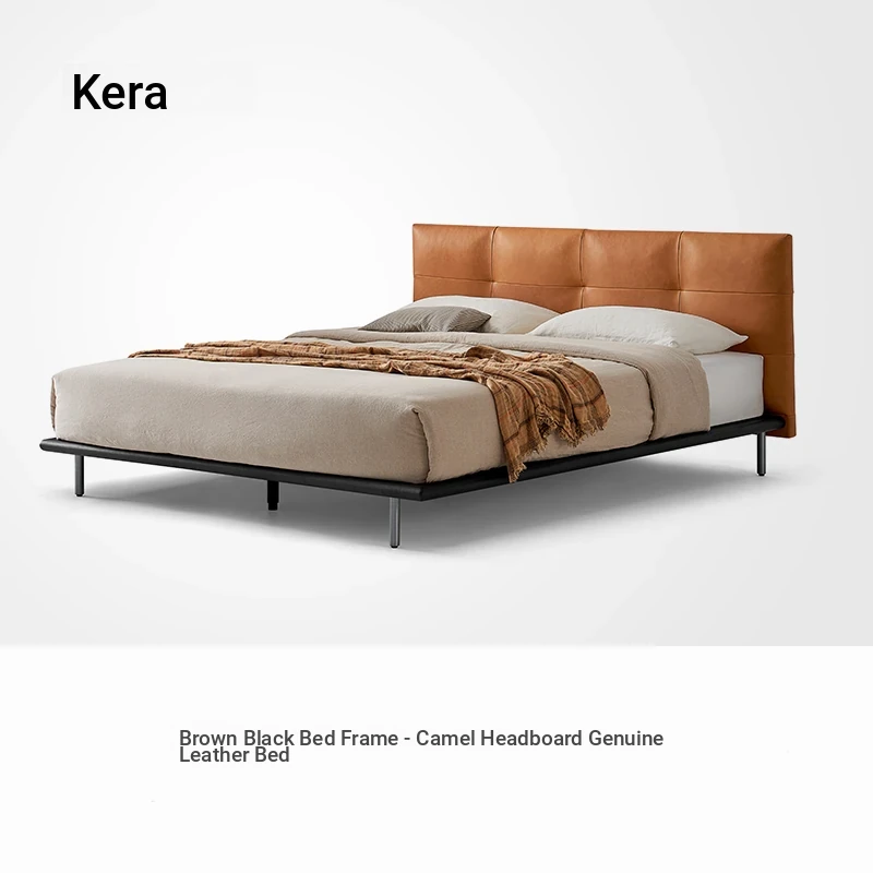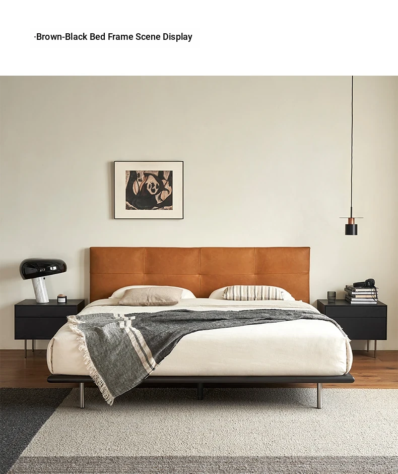 [New Edition] [Brown Black Frame-camel Bedhead] Leather Solid Wood Bed In Stock