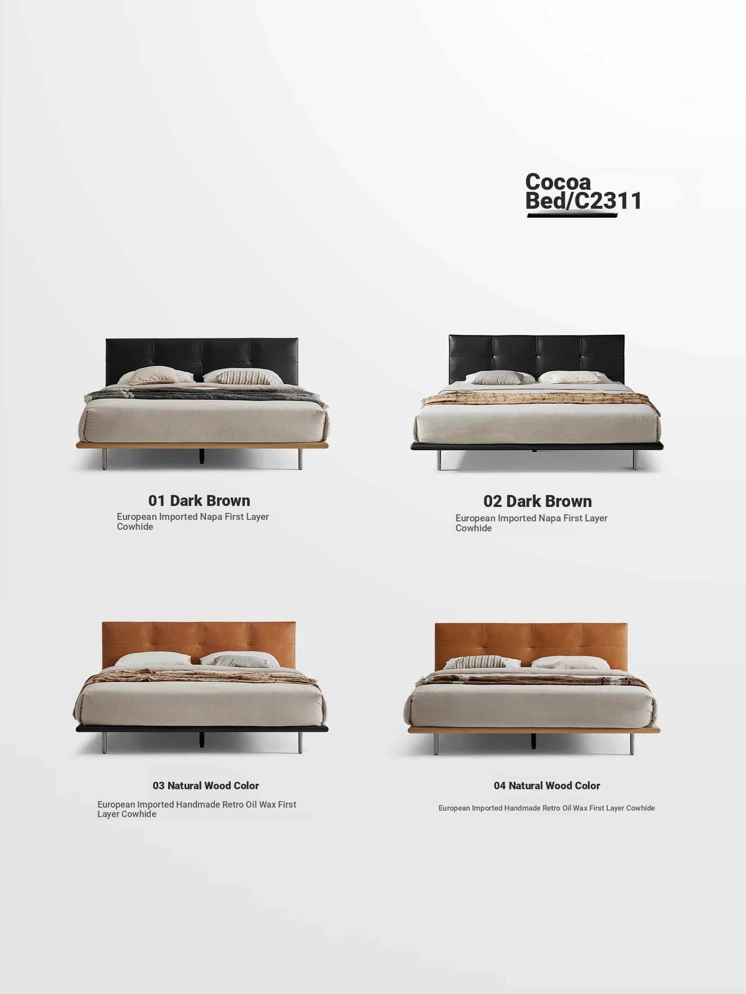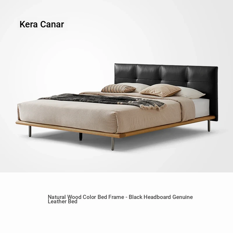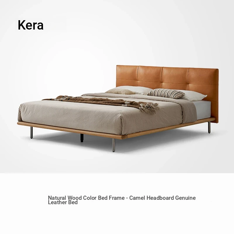 Kena Scandinavian Solid Wood High-End Genuine Leather Modern Minimalist Retro King Size Bed - 1.8m Double Bed for Master Bedroom