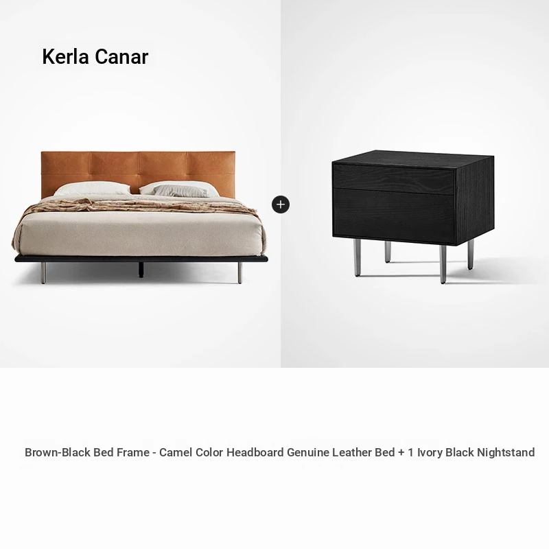 [Brown black frame-camel bedside] leather bed + ivory black bedside table 1