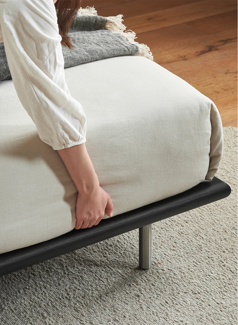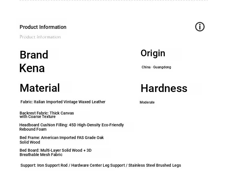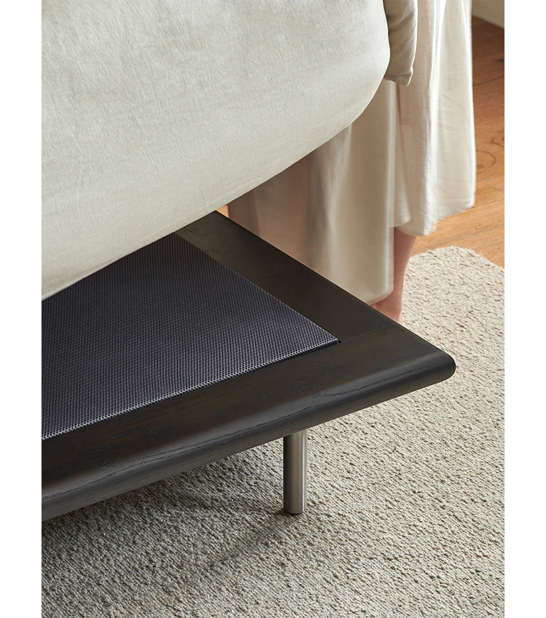 [North American White Oak-log color bed frame] black leather solid wood bed In Stock