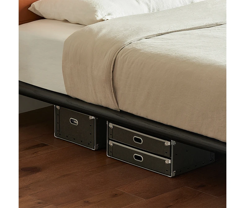 [North American oak-black bed frame] Camel leather solid wood bed In Stock