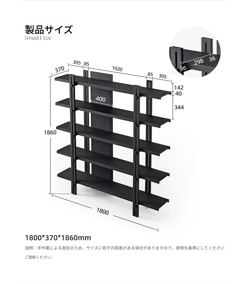 【北米オーク無垢材 - アイボリーブラック】1.8メートル本棚 在庫あり