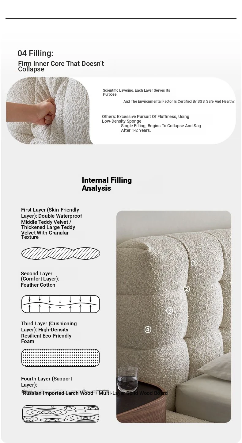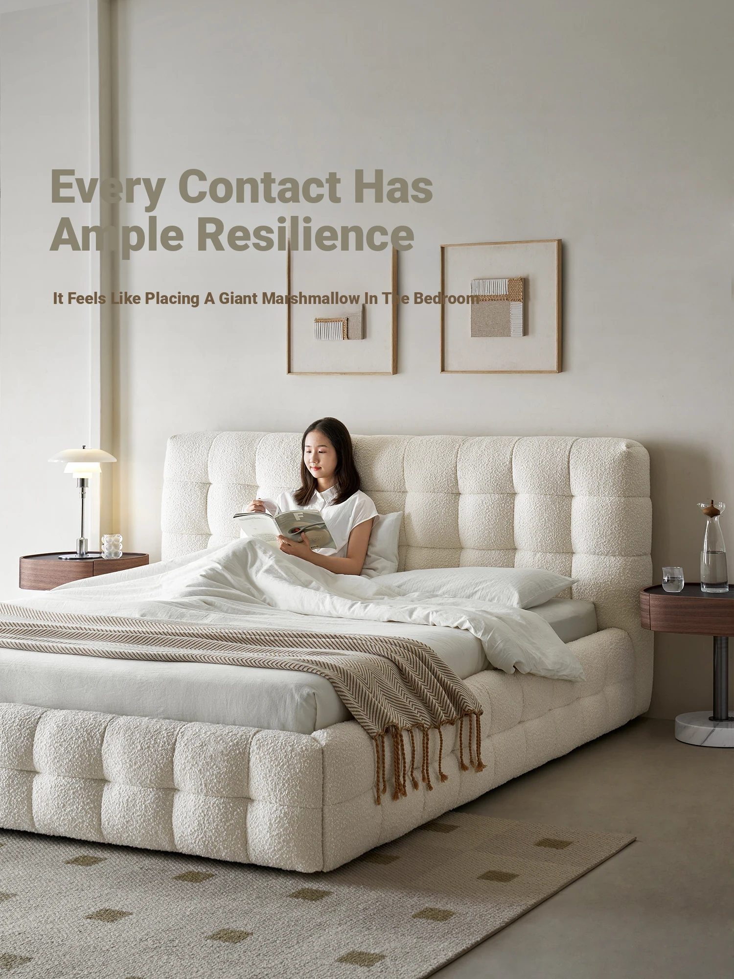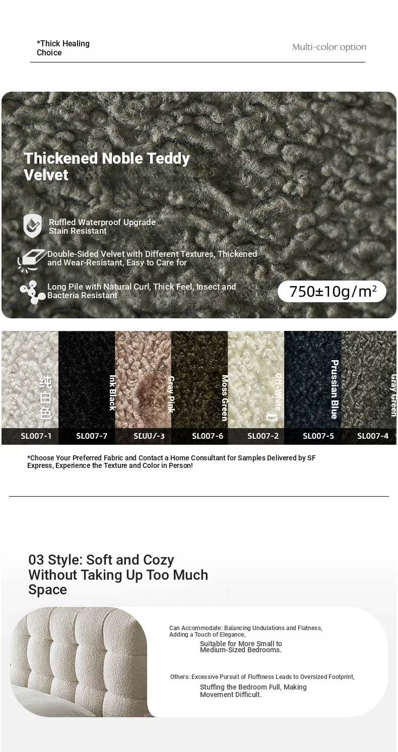 [620g/㎡ Waterproof Antifouling] Comfortable Soft Medium Teddy-Cream White Cloth Bed
