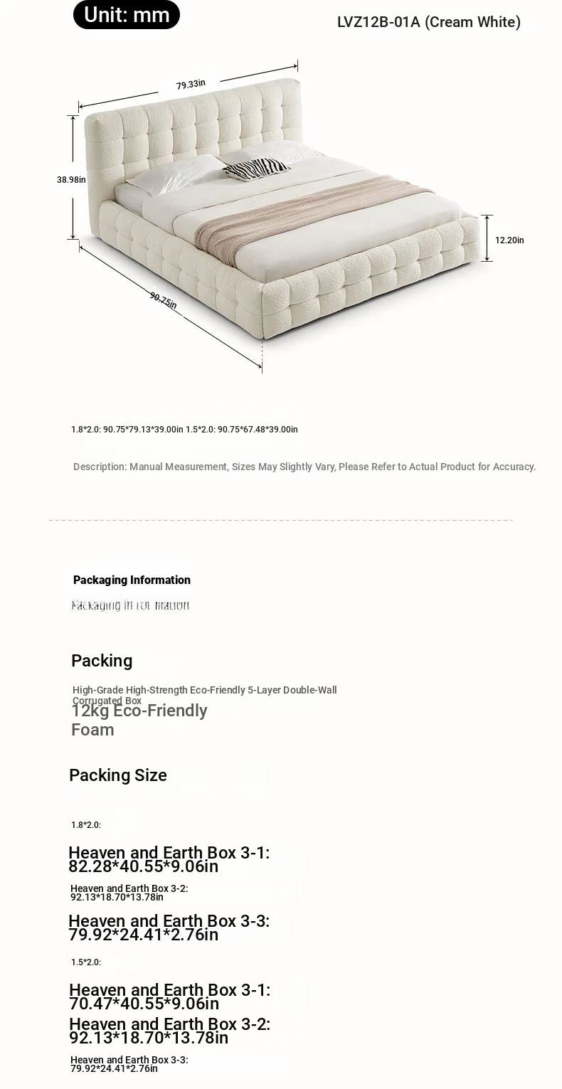 [720 g/m Upgrade Waterproof Anti-fouling] Soft and Smooth Cashmere-creamy-white Fabric Bed