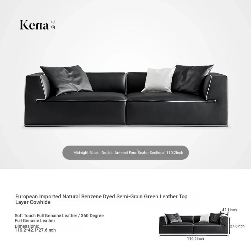 [Natural Benzene Dyed Leather Full Leather-Classy Black] 110.24 in Four