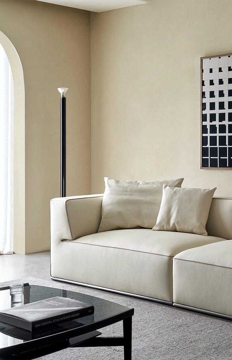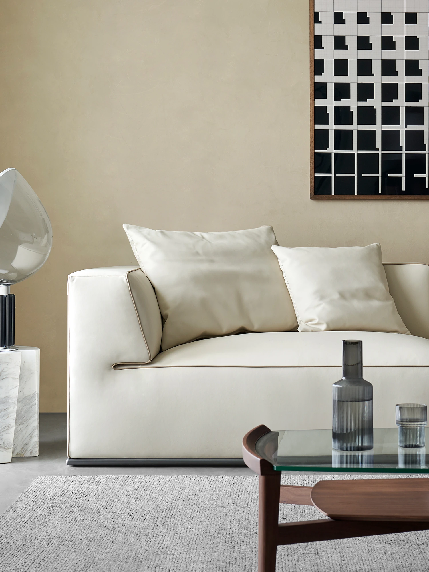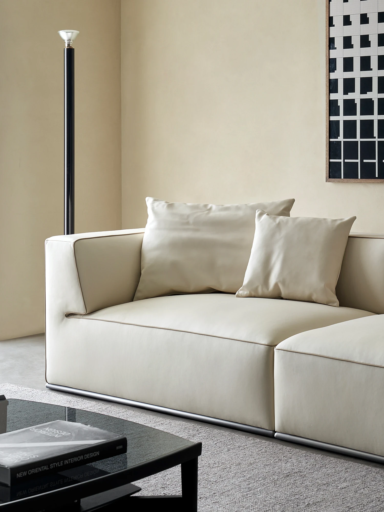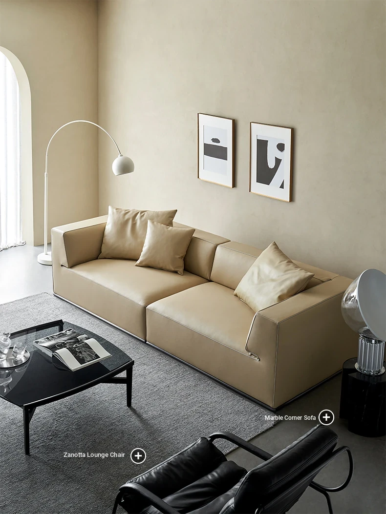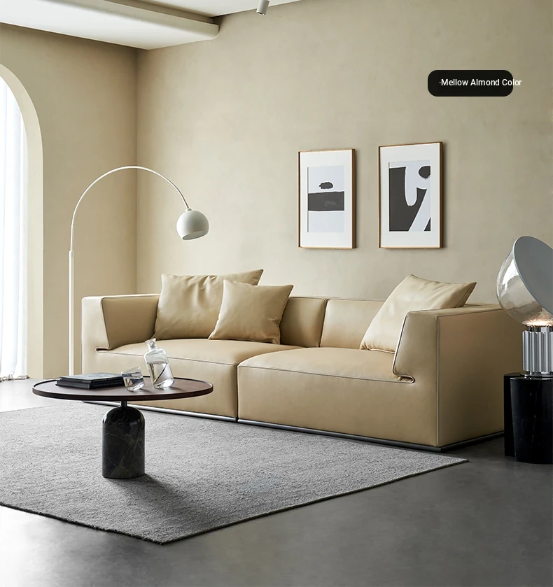 Kena Franz Genuine Leather White Vintage Sofa - Spacious 3-Seater with Deep Seating for Modern Living Rooms, Stylish and Comfortable Design
