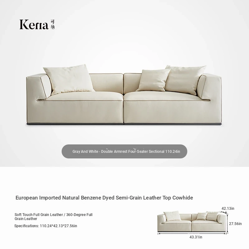 [Natural Benzene Dyed Leather Full Leather-Grey White] 110.24 in Four