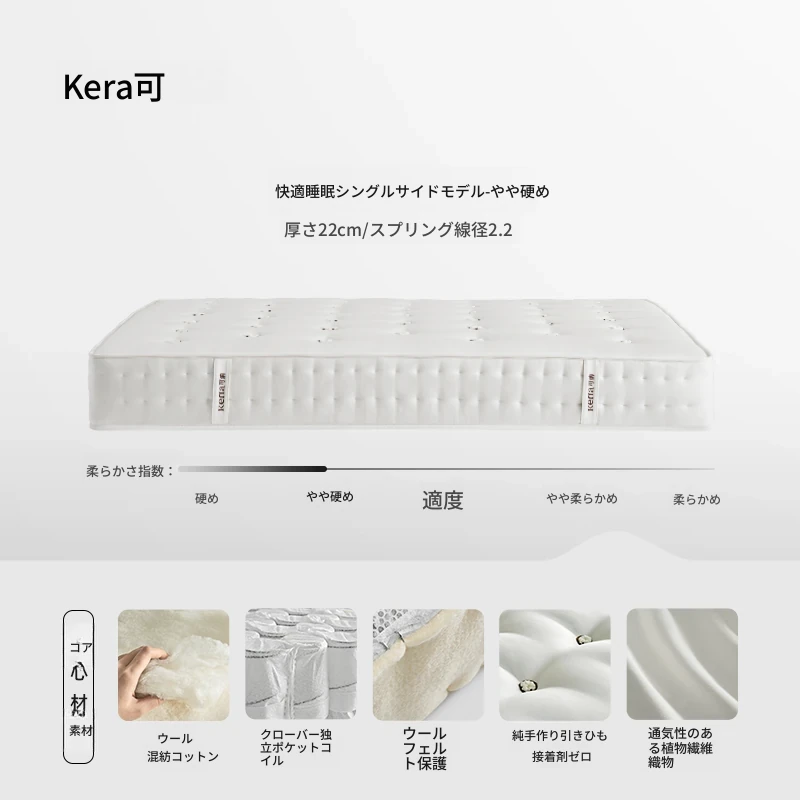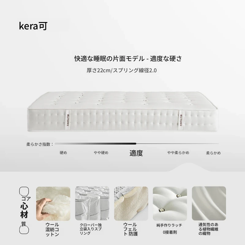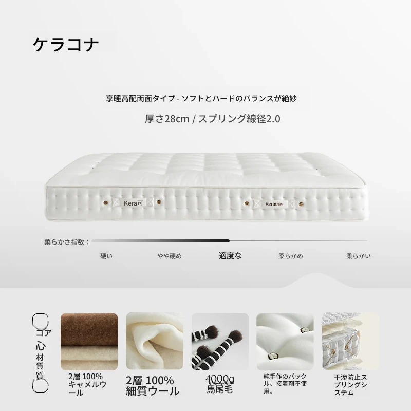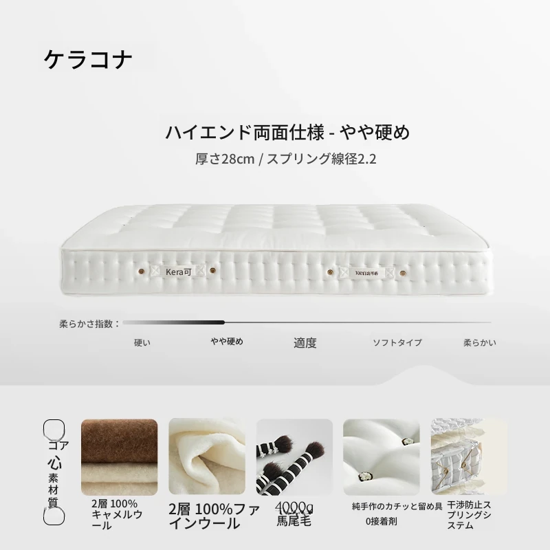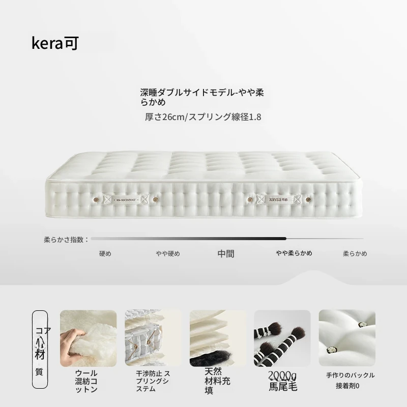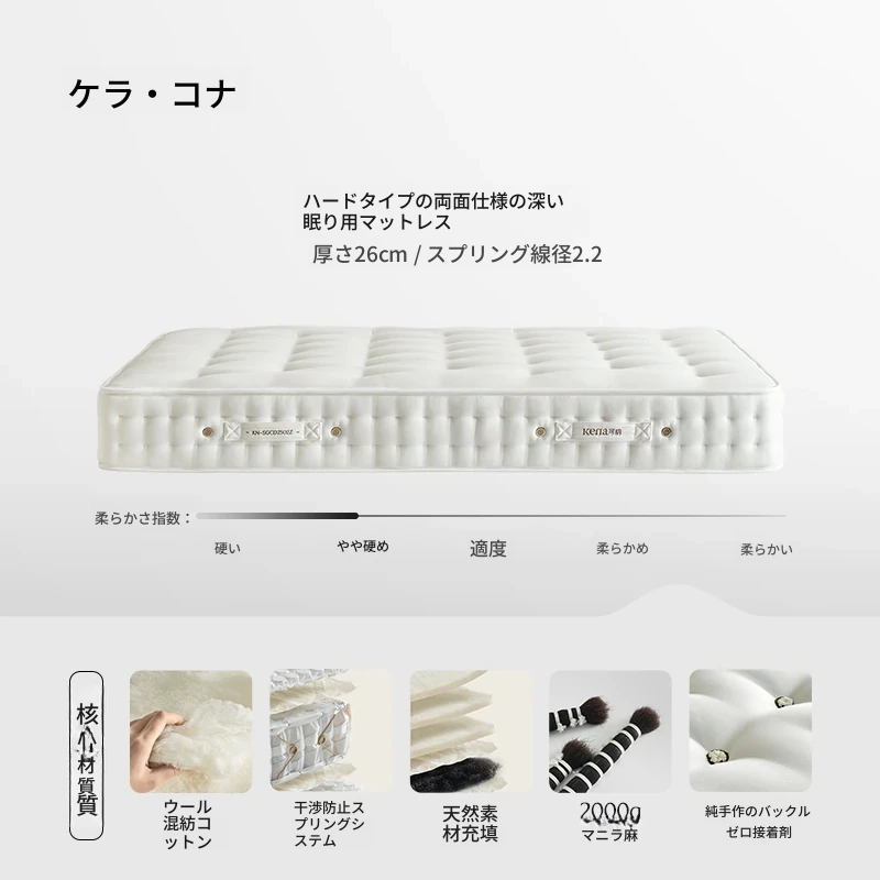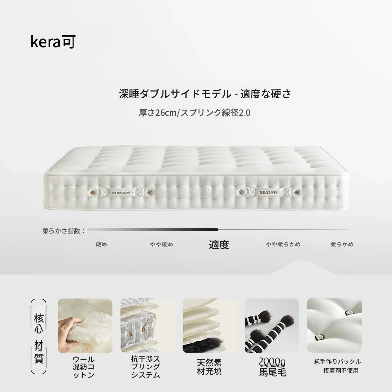 Kena可纳/枕月馬尾毛手作拉扣羊毛ダブルサイドマットレス - グルー不使用・独立スプリング採用で快適な睡眠をサポート!自宅で極上の眠りを体験しませんか?