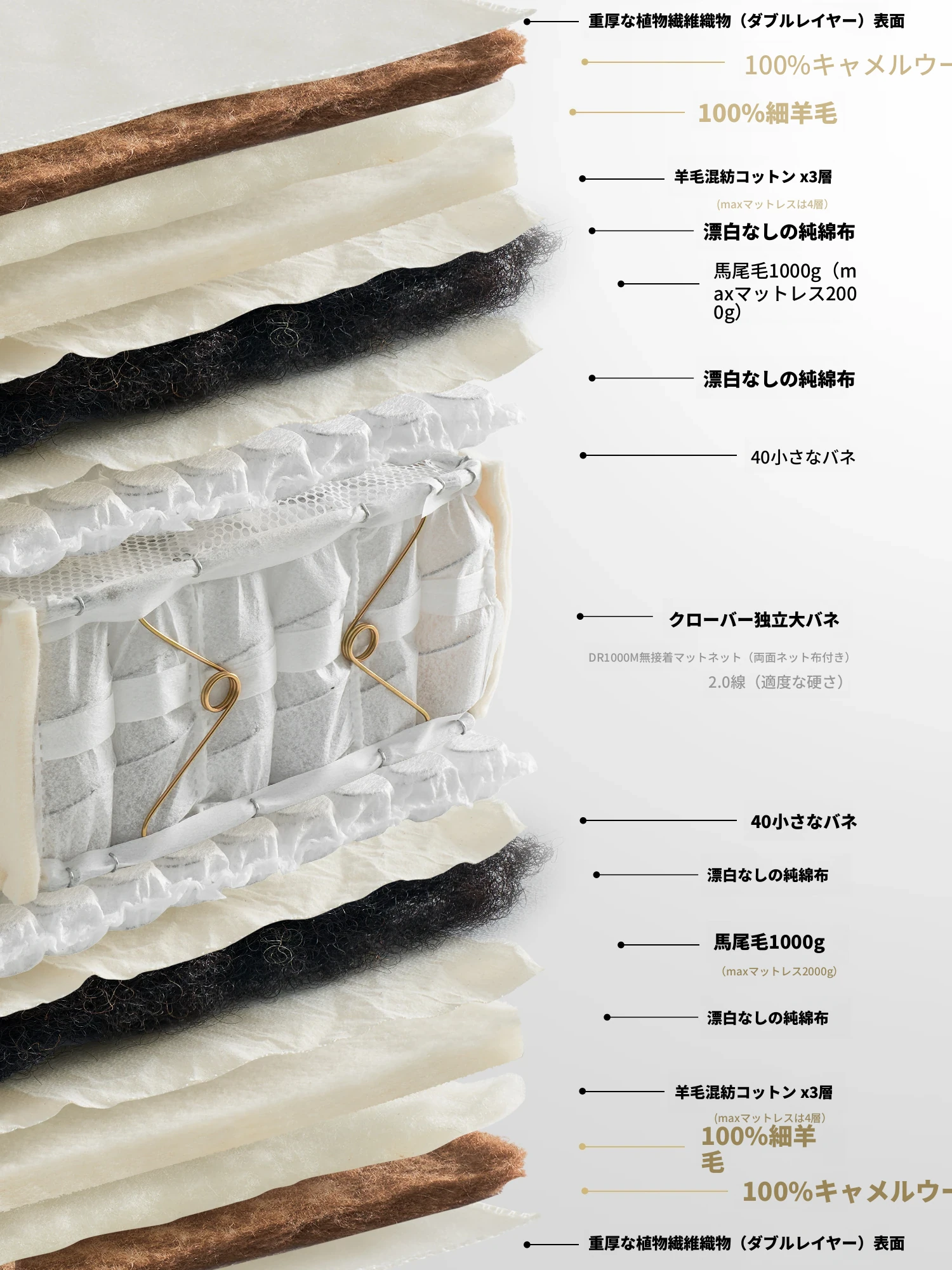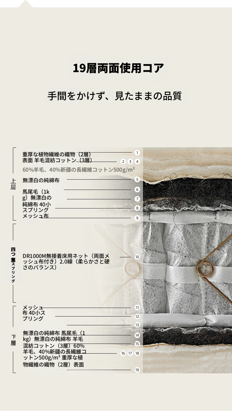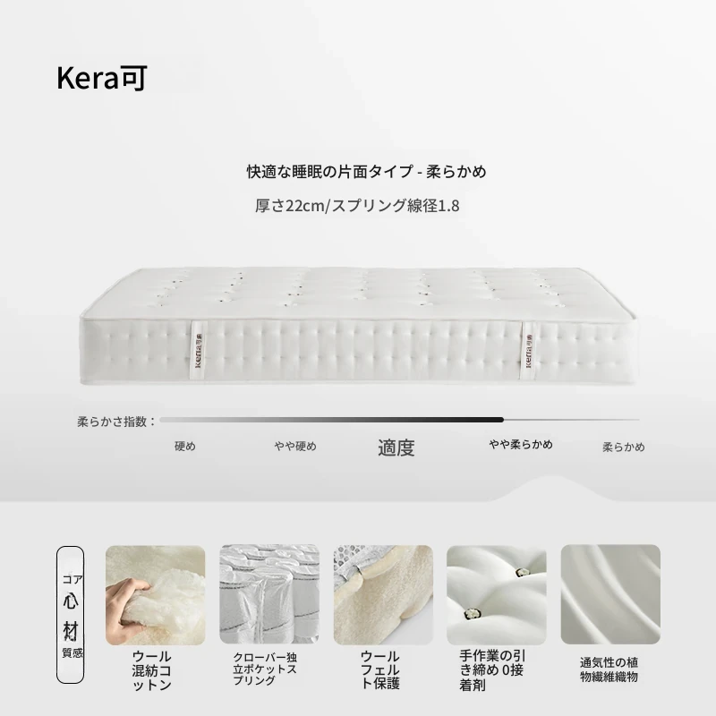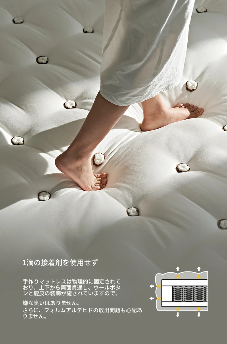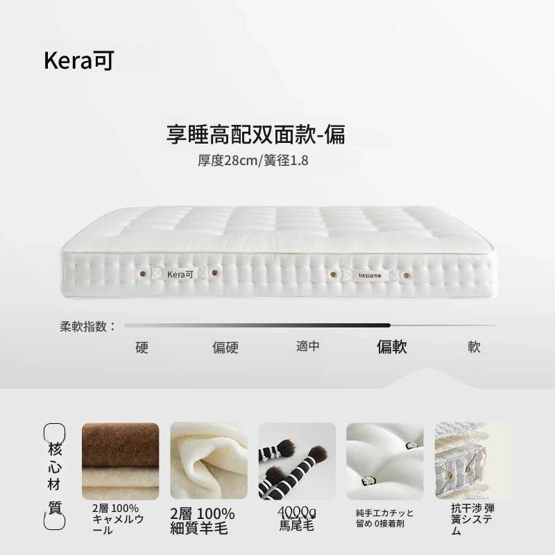 Kena可纳/枕月馬尾毛手作拉扣羊毛ダブルサイドマットレス - グルー不使用・独立スプリング採用で快適な睡眠をサポート!自宅で極上の眠りを体験しませんか?