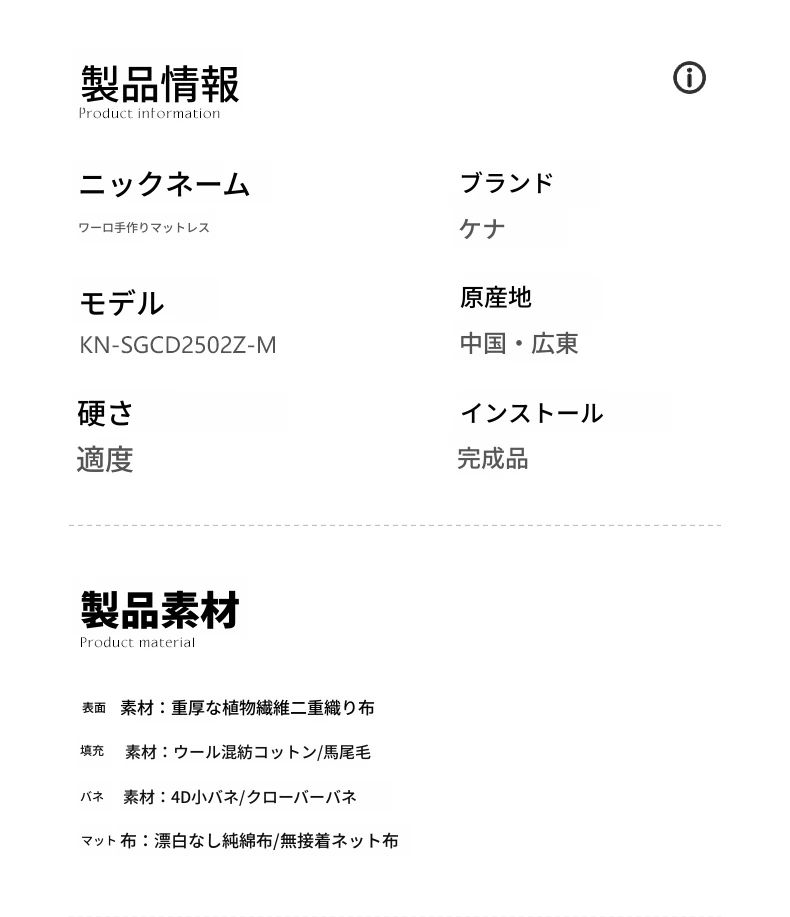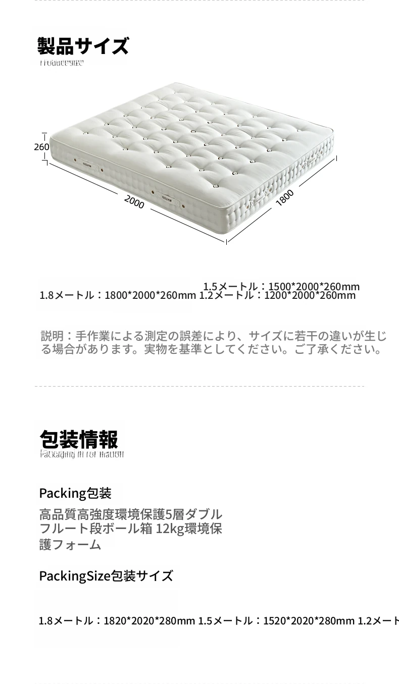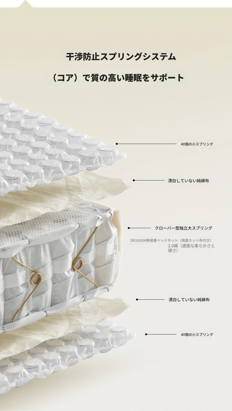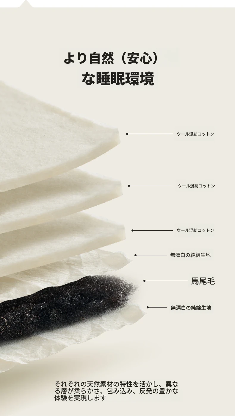 Kena可纳/枕月馬尾毛手作拉扣羊毛ダブルサイドマットレス - グルー不使用・独立スプリング採用で快適な睡眠をサポート!自宅で極上の眠りを体験しませんか?