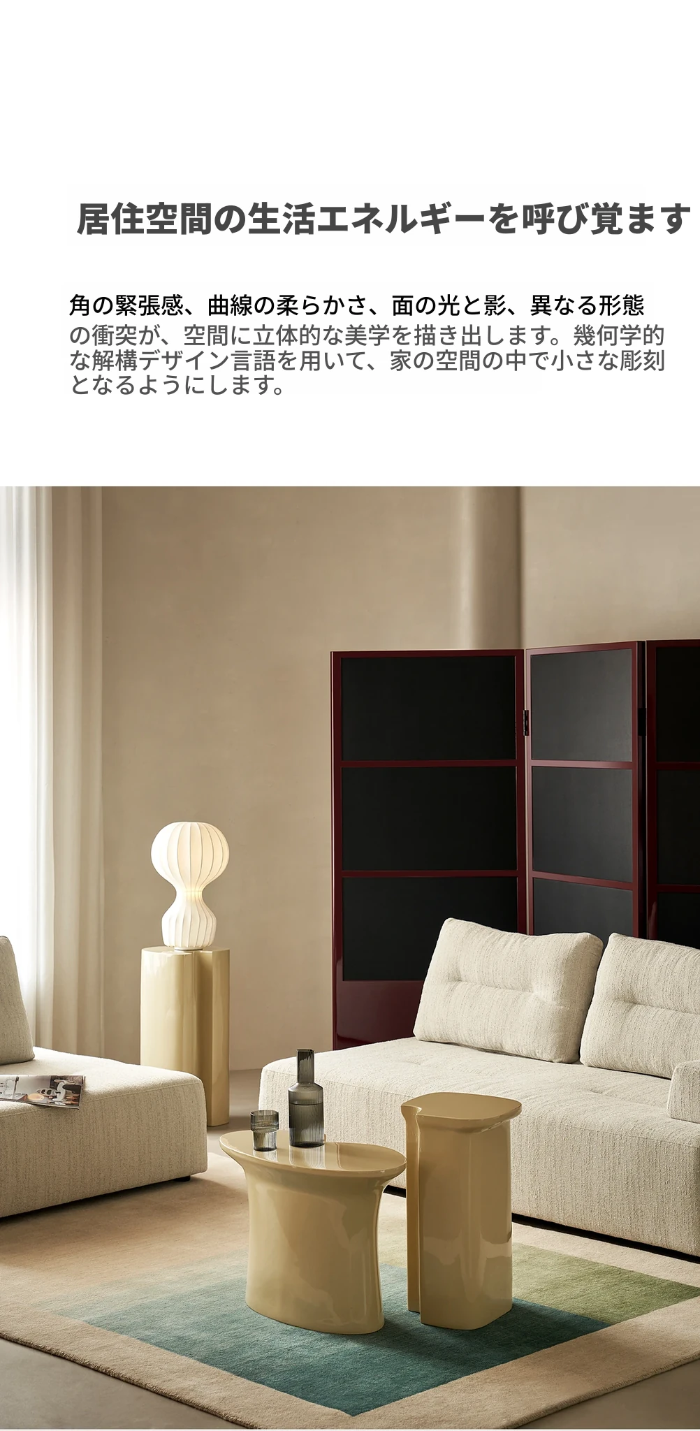 Kena可纳/ルーカス角のアート塗装ジオメトリックデザインリビングルーム用コンビネーションコーヒーテーブル・ソファサイドテーブルZ - スタイリッシュで機能的な空間を演出!