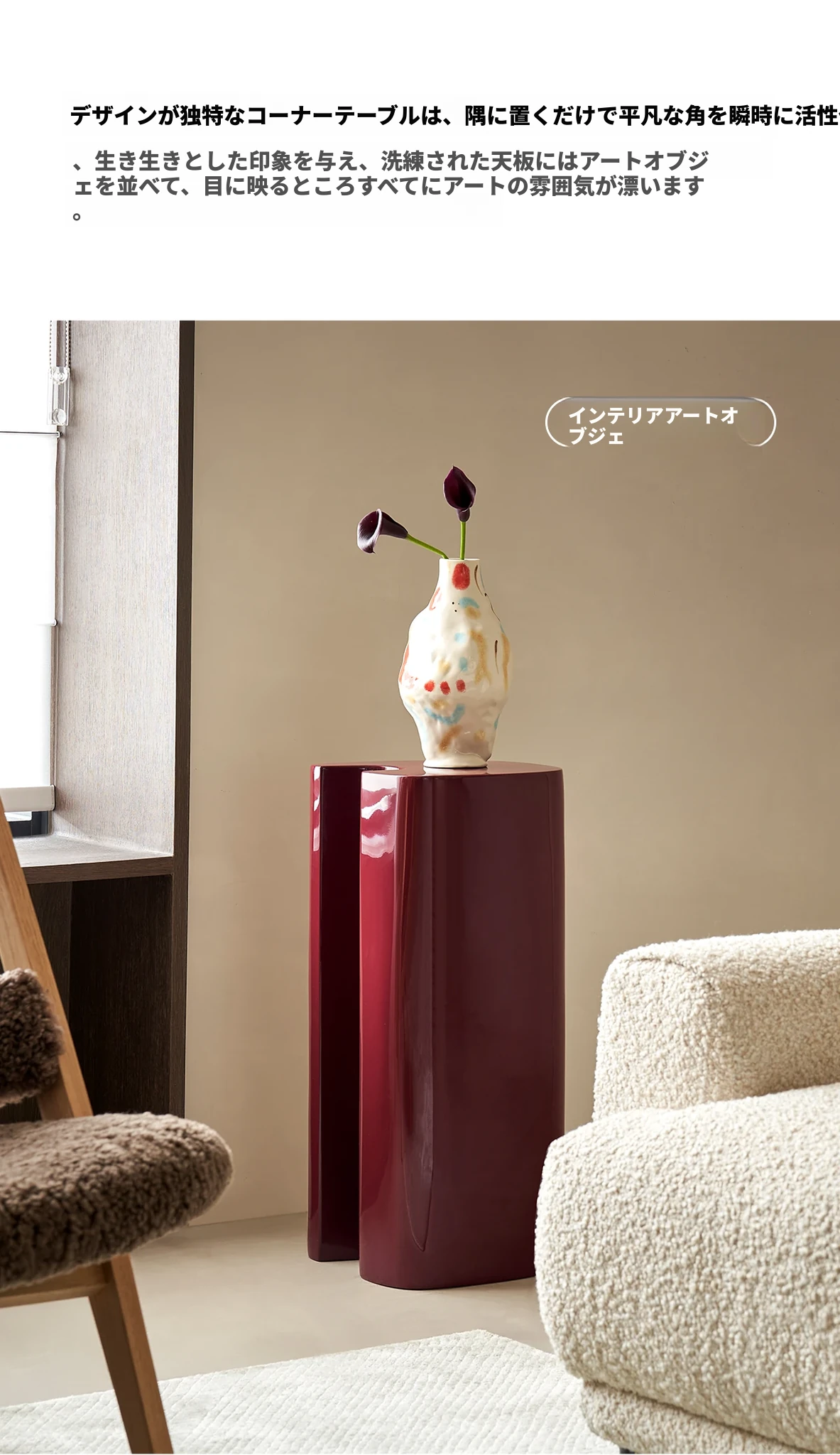 【落葉色ハイグロス塗装】コーナーテーブル高411mm 在庫あり
