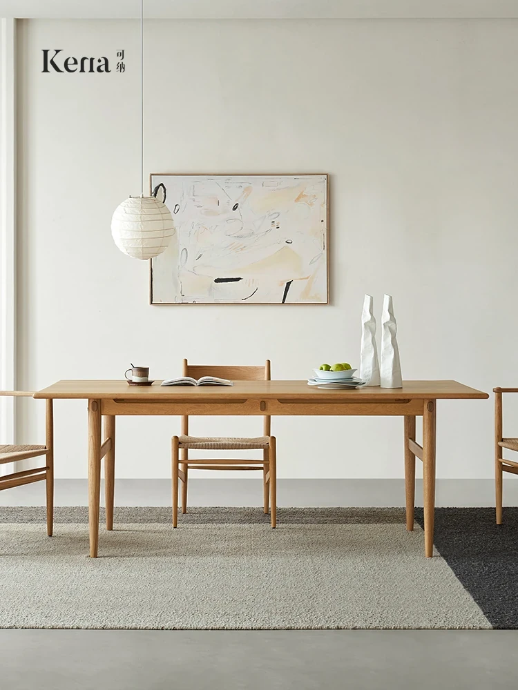 Kena Minimalist Japanese-Style Dining Table - White Oak Natural Wood, Solid Wood Rectangular Living Room Table, Embrace the Wabi-Sabi Aesthetic, Perfect for Modern Homes