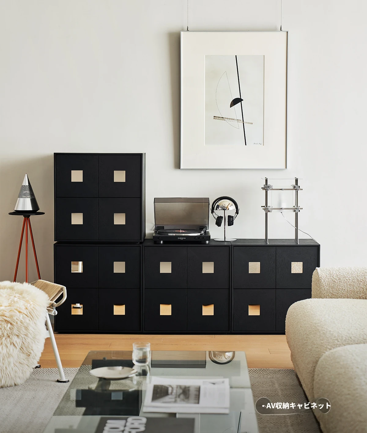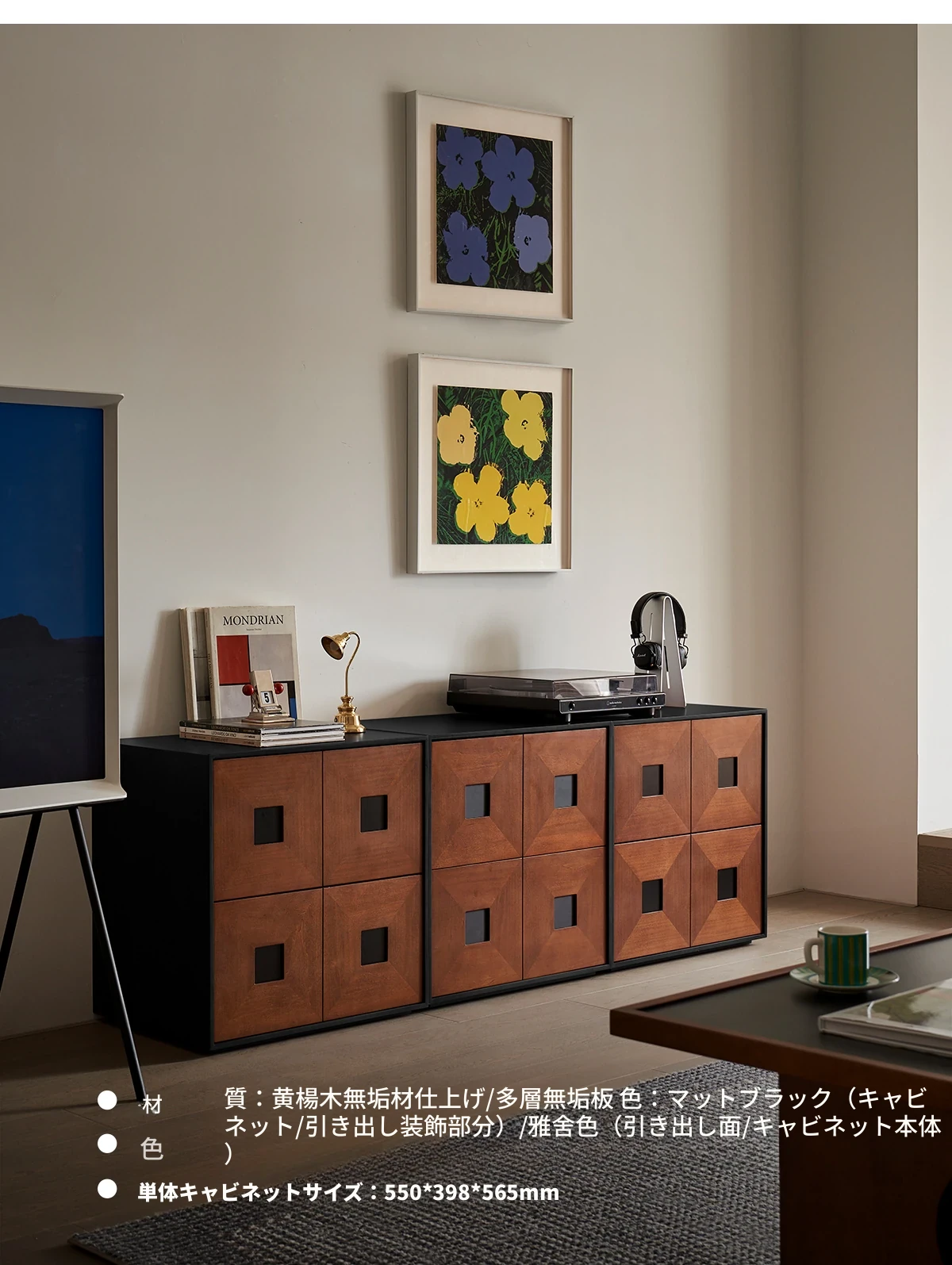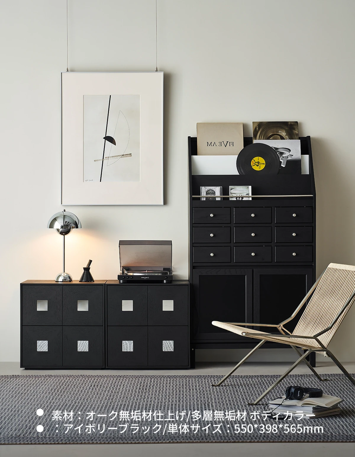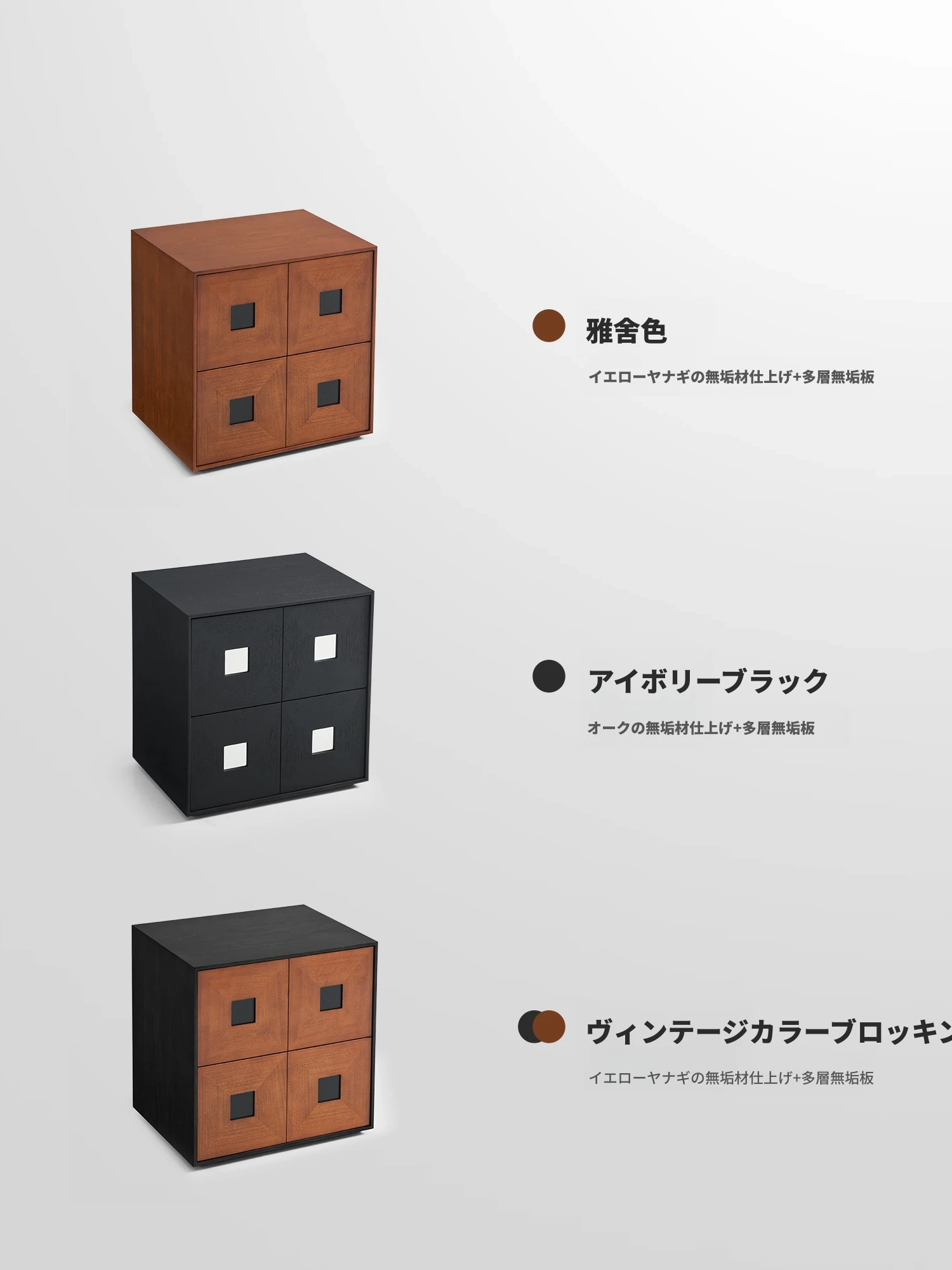 【北米オーク-アイボリーブラック】コンビネーションキャビネット4つ 在庫あり