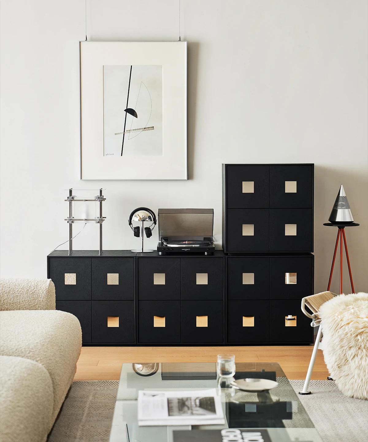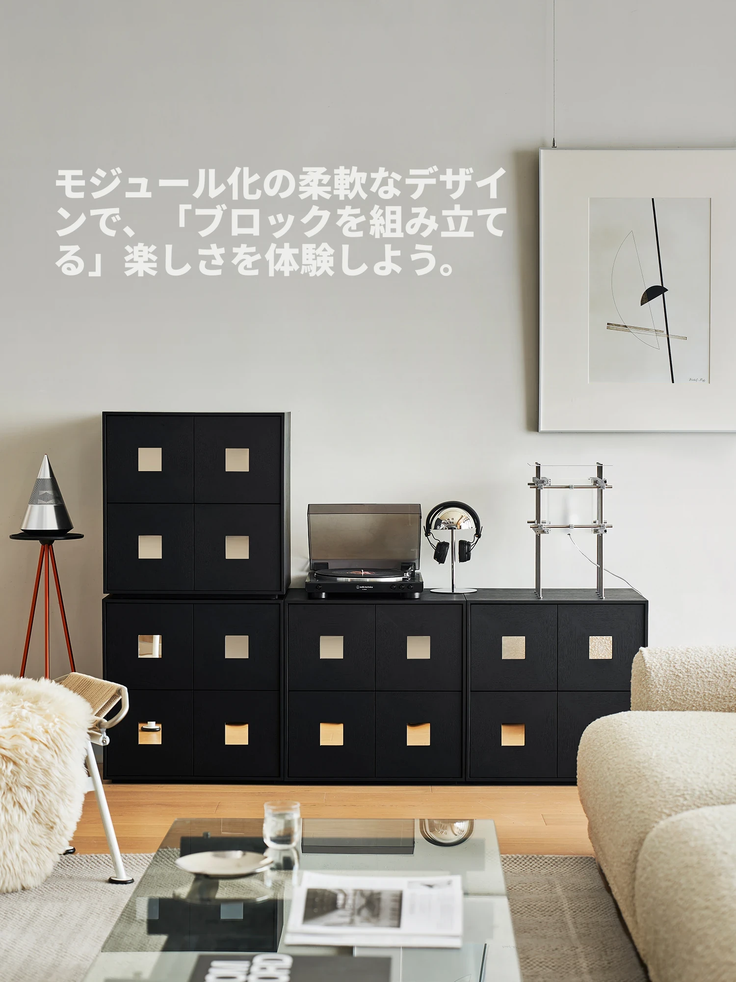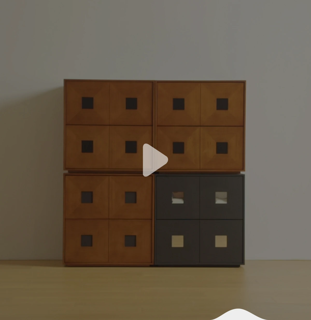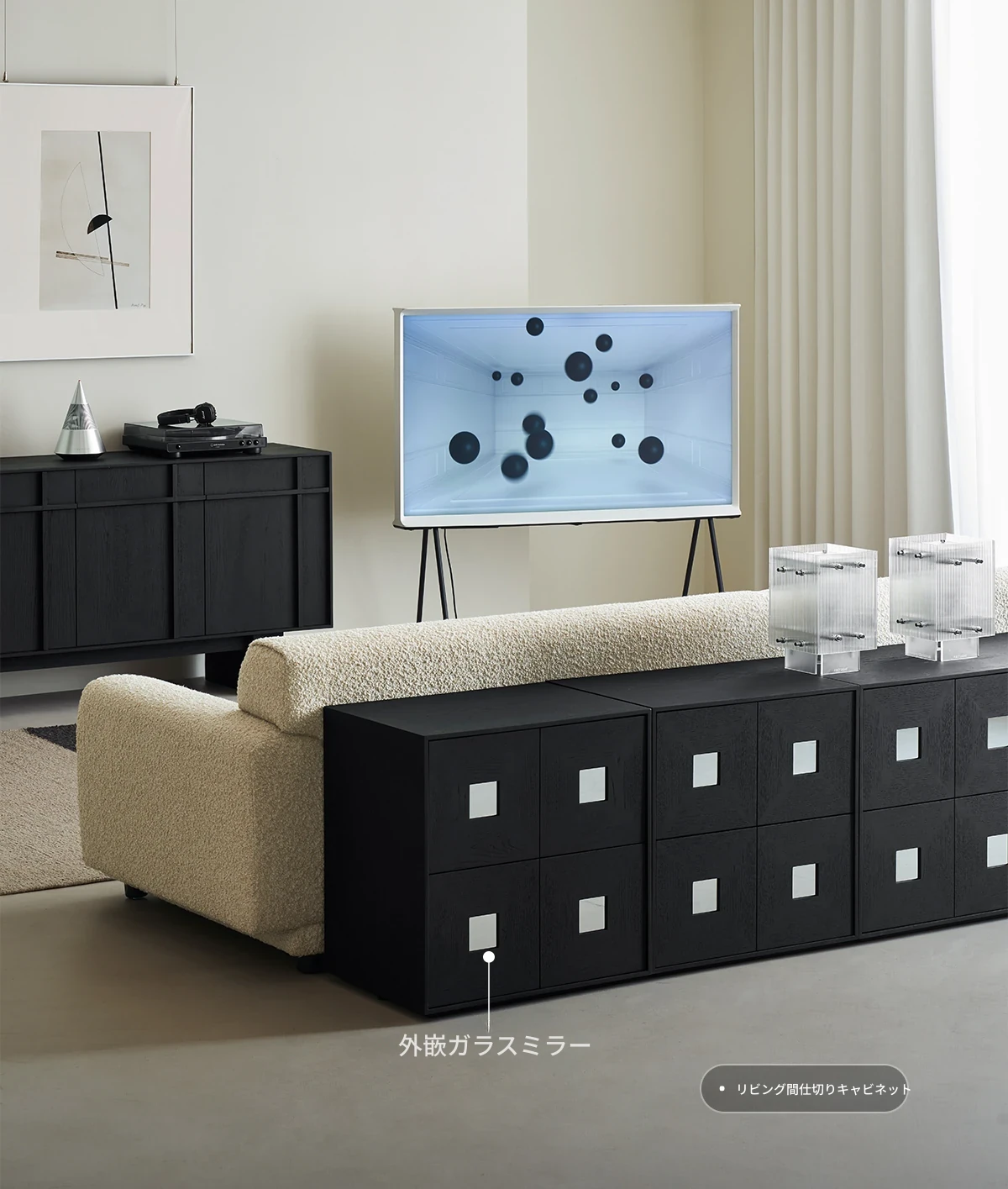 【北米オーク-アイボリーブラック】コンビネーションキャビネット4つ 在庫あり