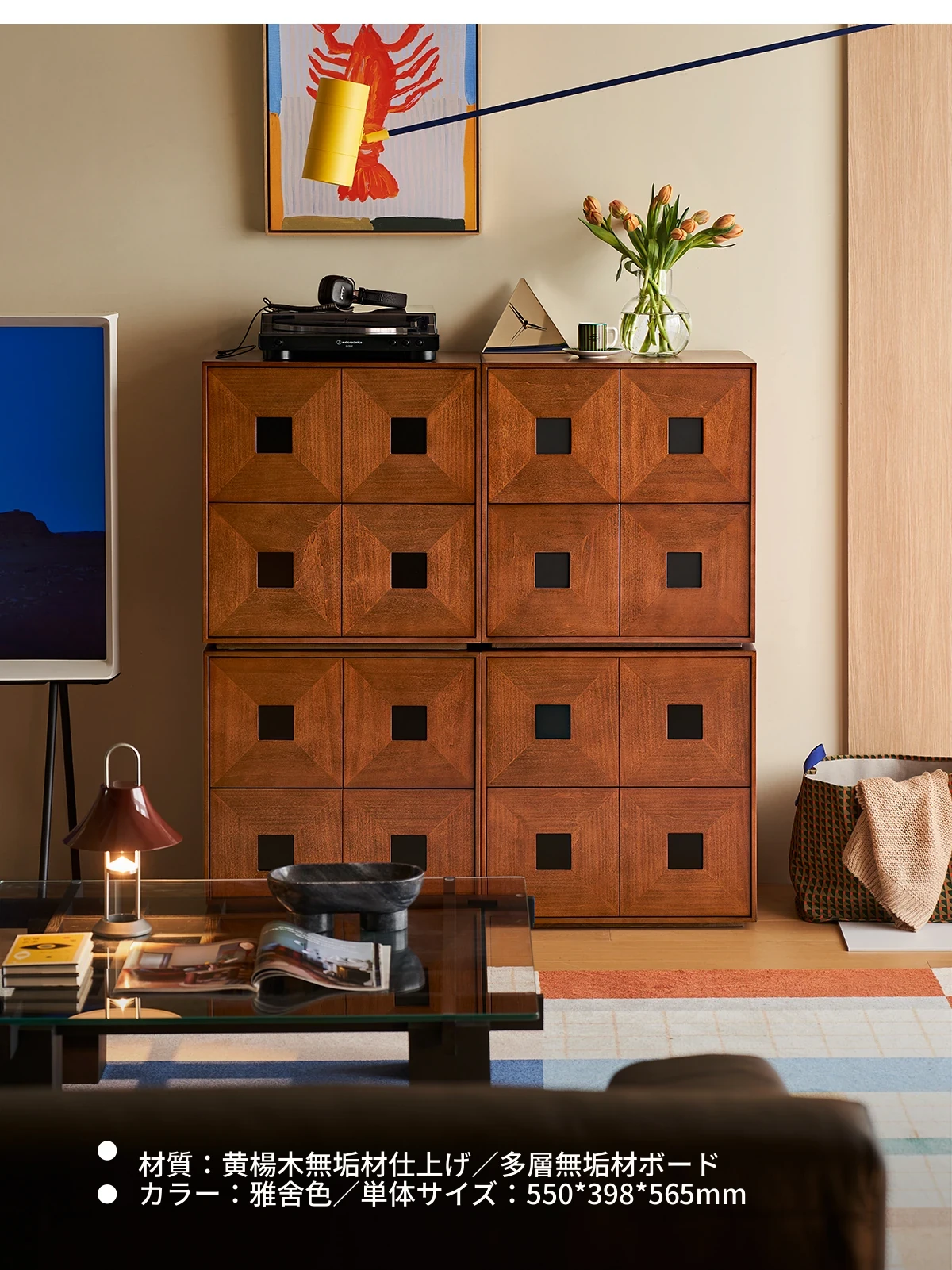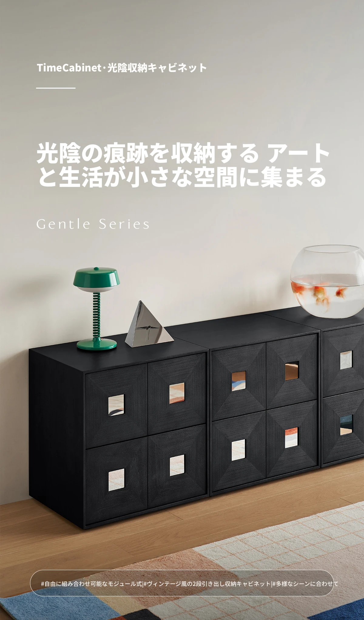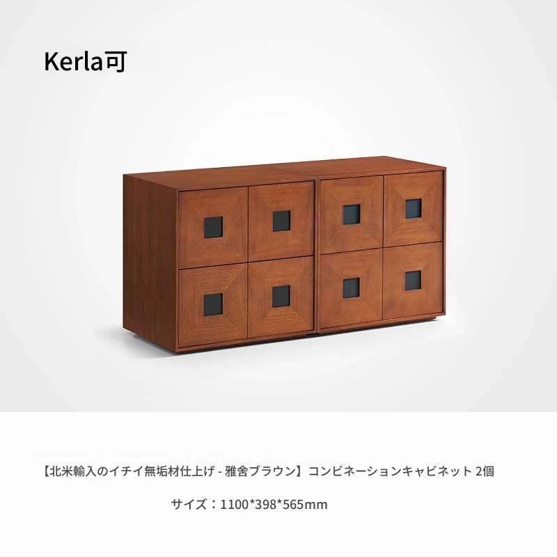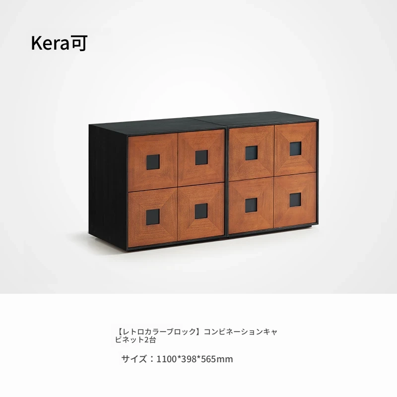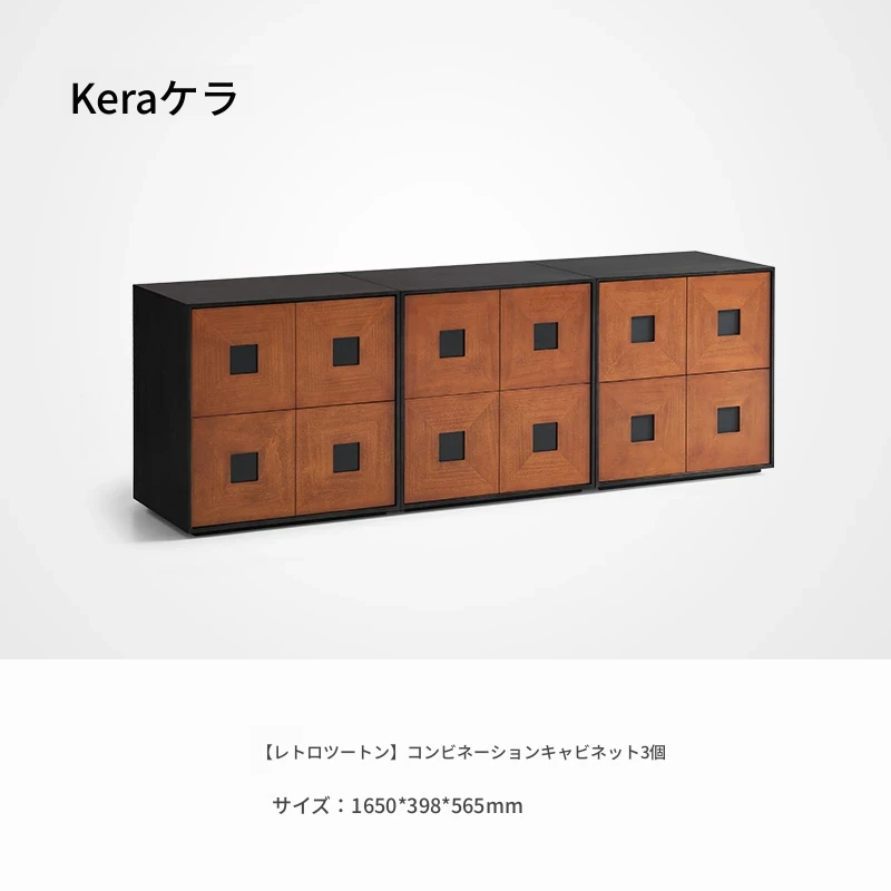 Kena可纳/光陰のモダンミニマリスト黒いサイドキャビネット - ヴィンテージスタイルの無垢材収納カーメンキャビネットZで、スタイリッシュにお部屋を整理整頓!
