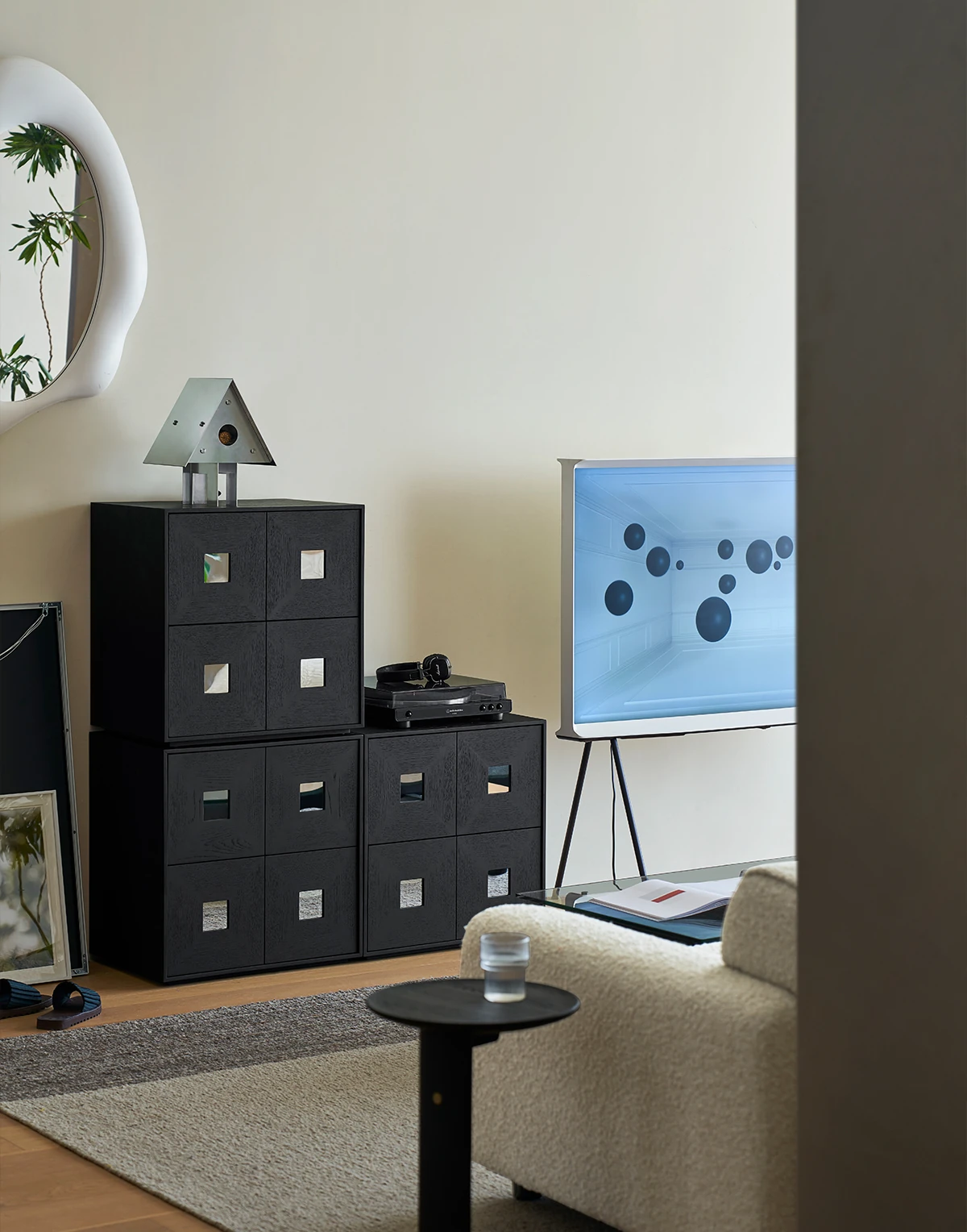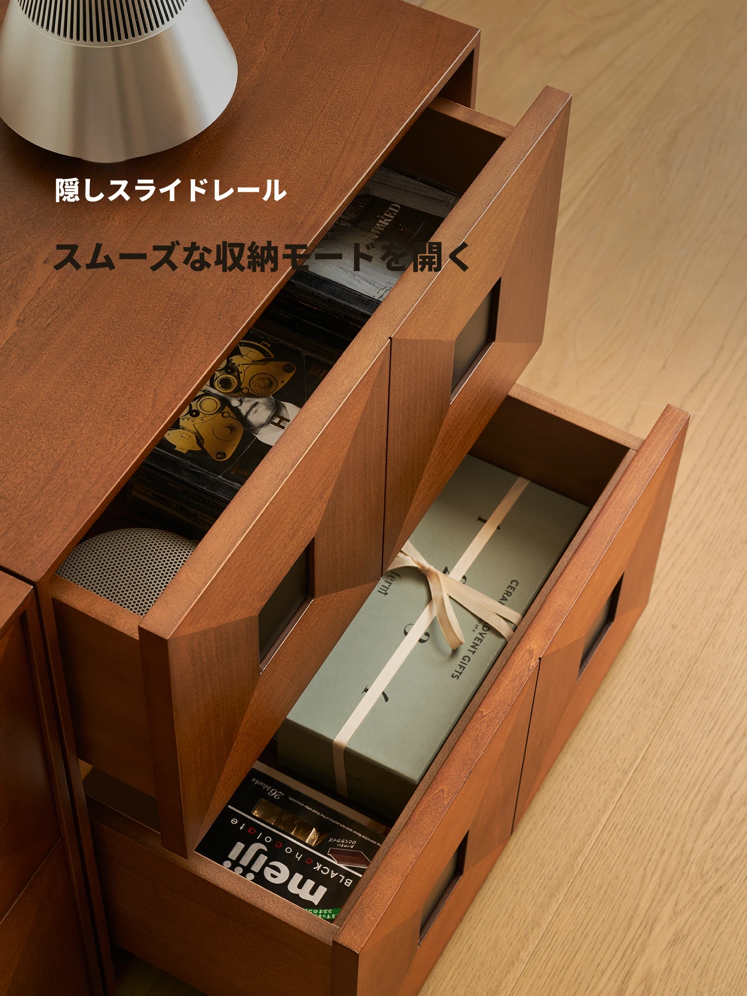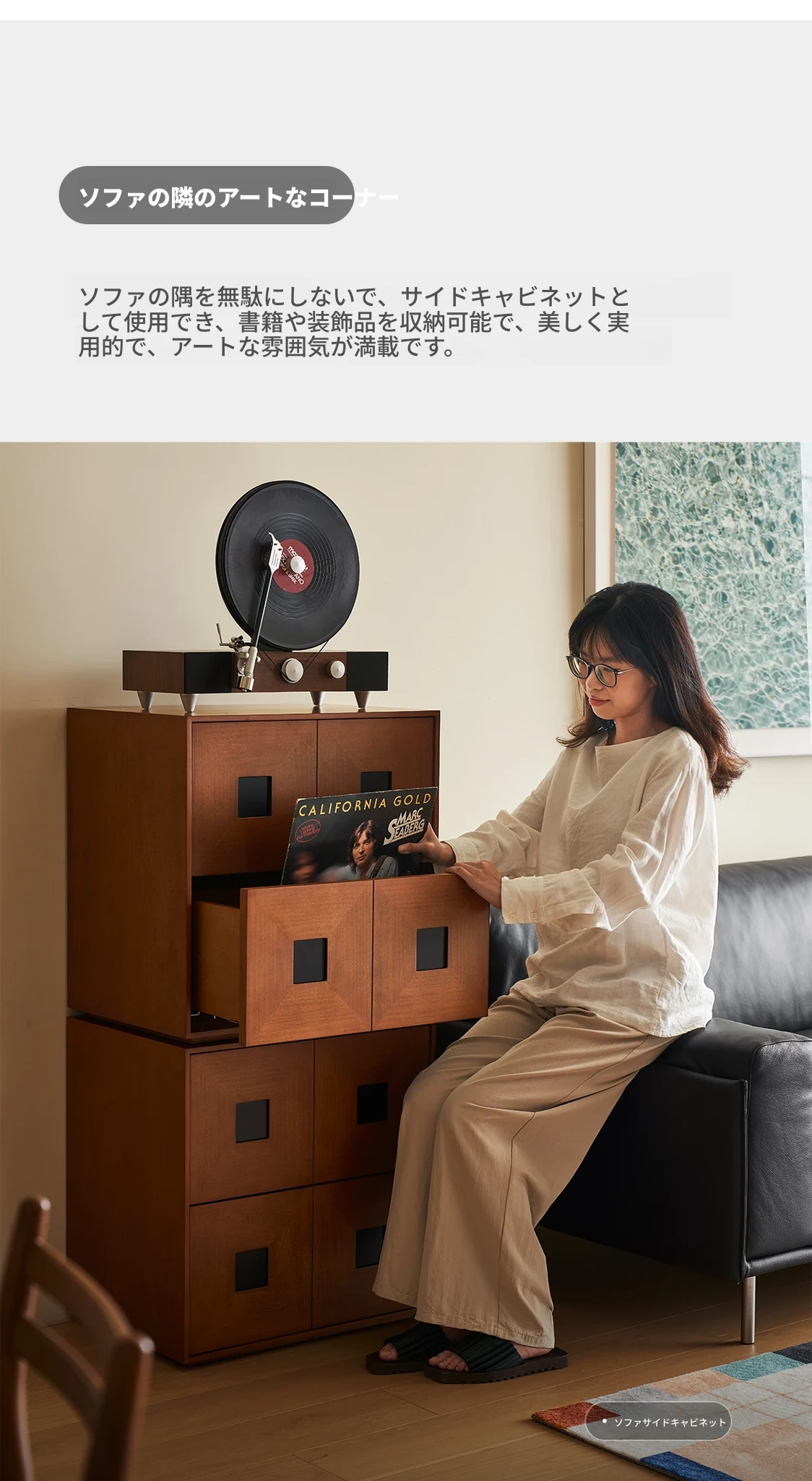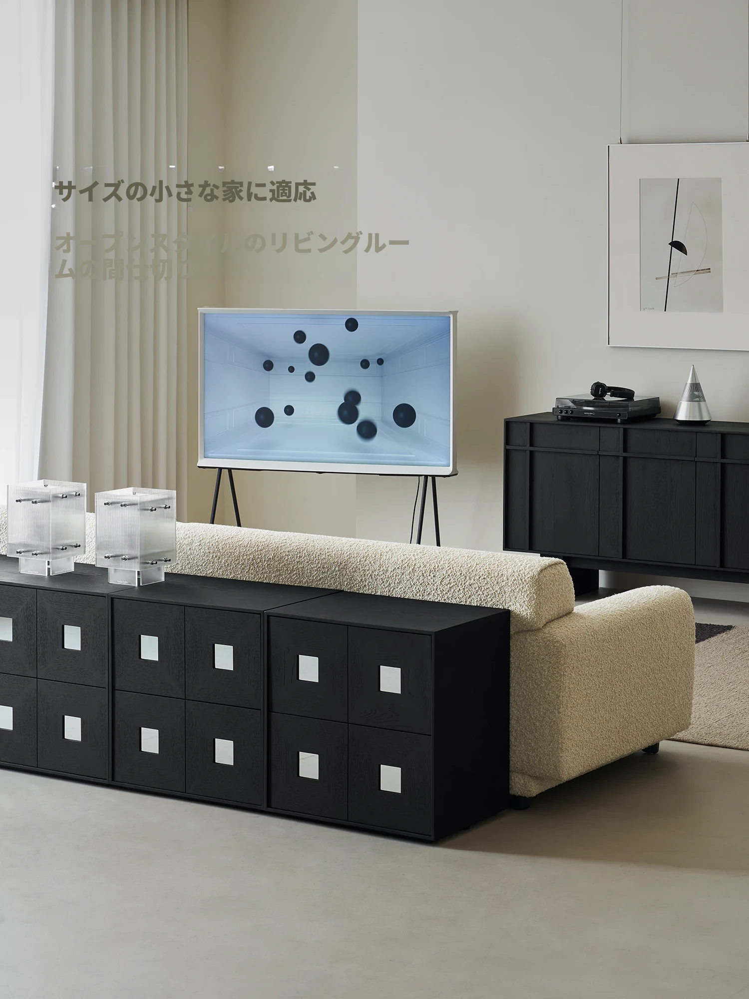 Kena可纳/光陰のモダンミニマリスト黒いサイドキャビネット - ヴィンテージスタイルの無垢材収納カーメンキャビネットZで、スタイリッシュにお部屋を整理整頓!