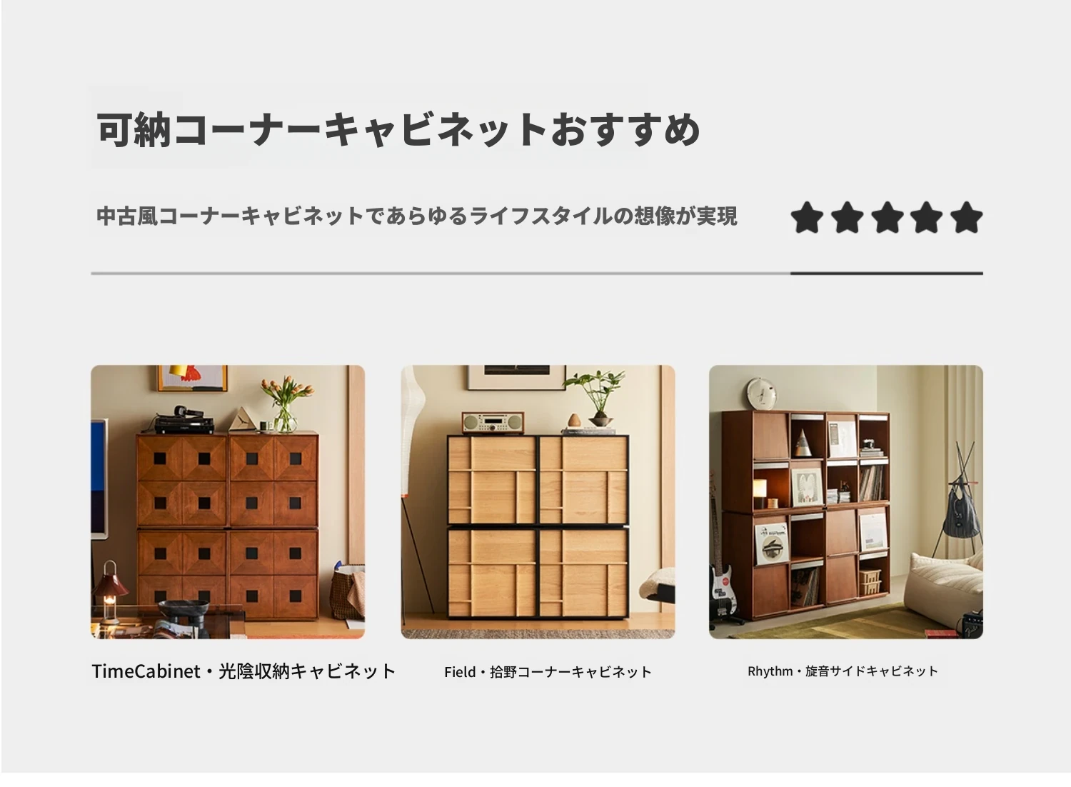 【北米オーク-アイボリーブラック】コンビネーションキャビネット3つ 在庫あり