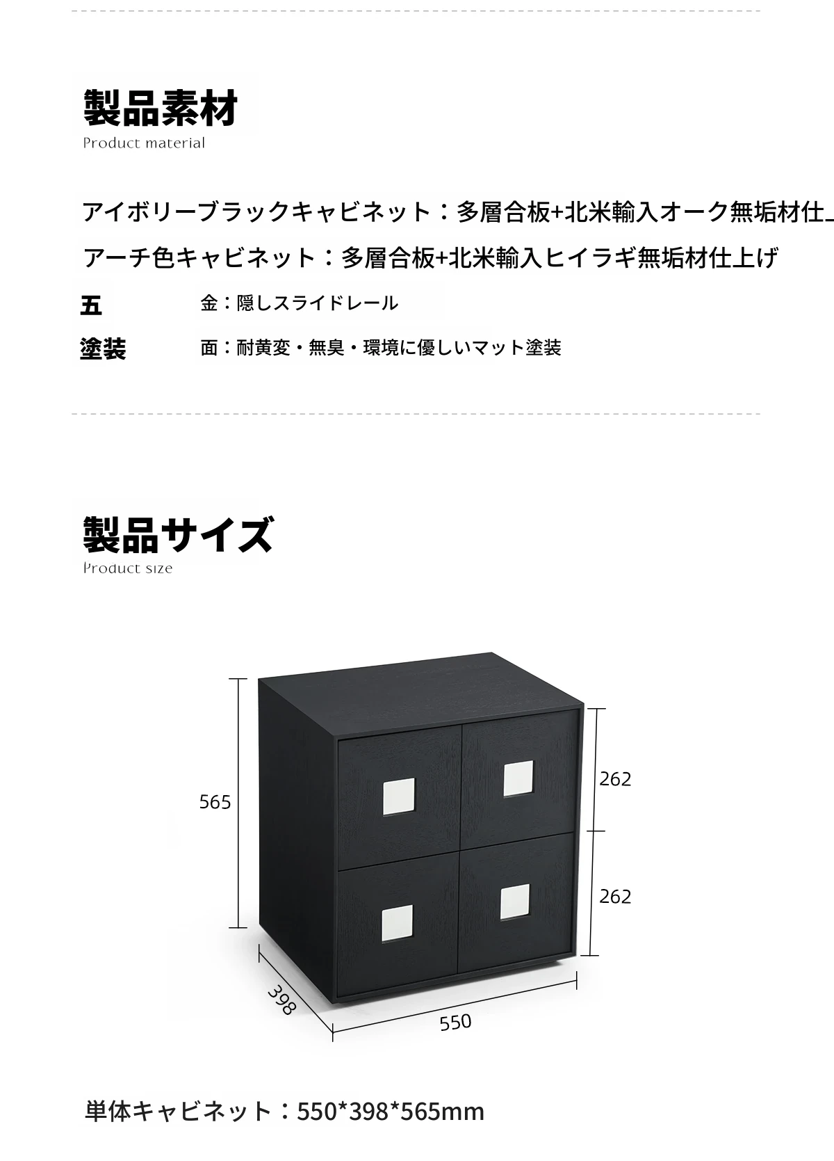 【北米オーク-アイボリーブラック】シングルキャビネット1つ 在庫あり