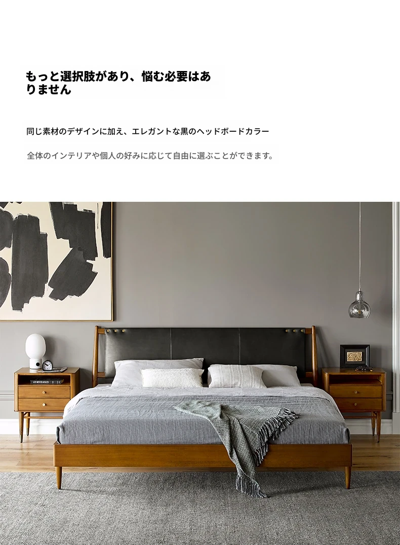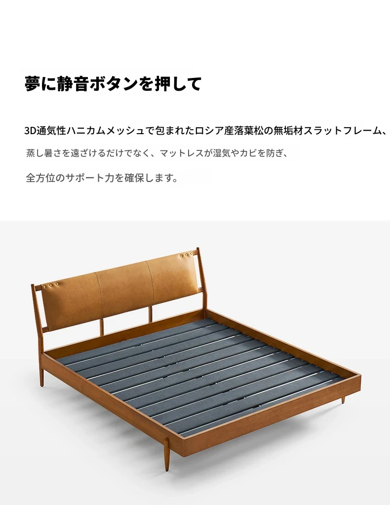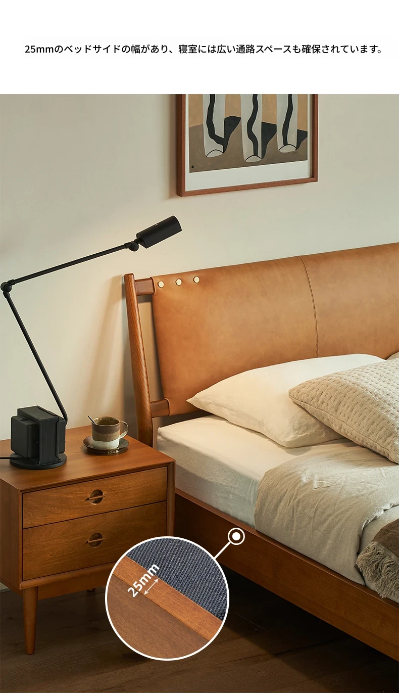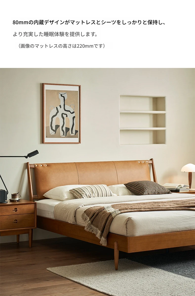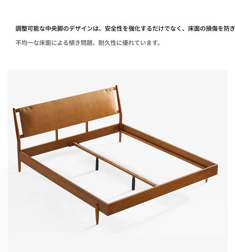 Kena可纳 北欧スタイルの高級本革ベッド - モダンでシンプルなデザイン、上質な牛革使用のヴィンテージダブルベッド。実木フレームで耐久性抜群!あなたの寝室に洗練された魅力をプラス。