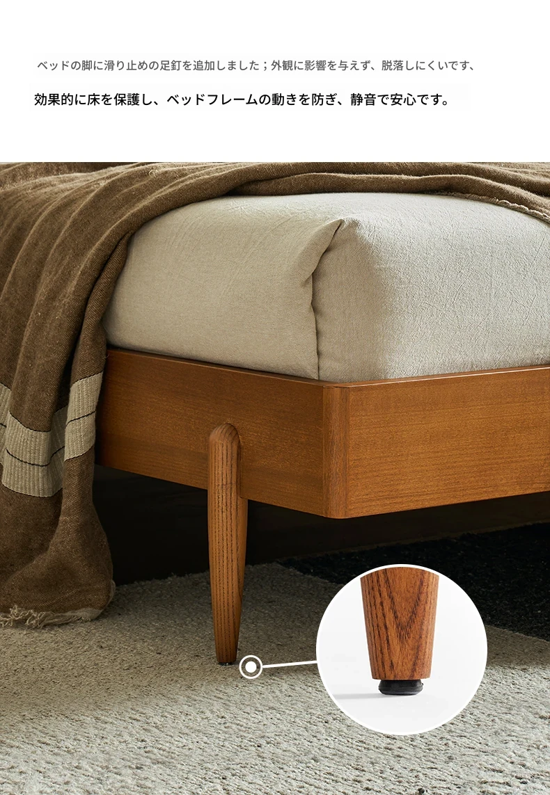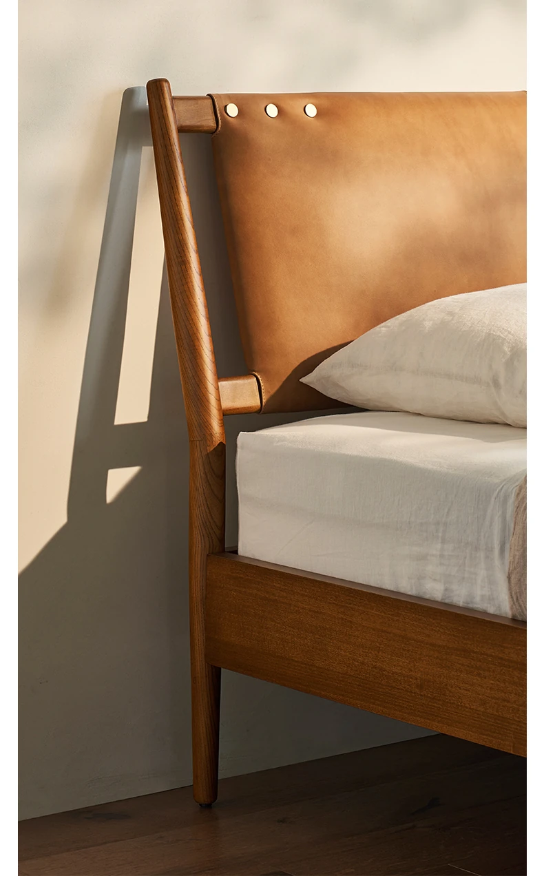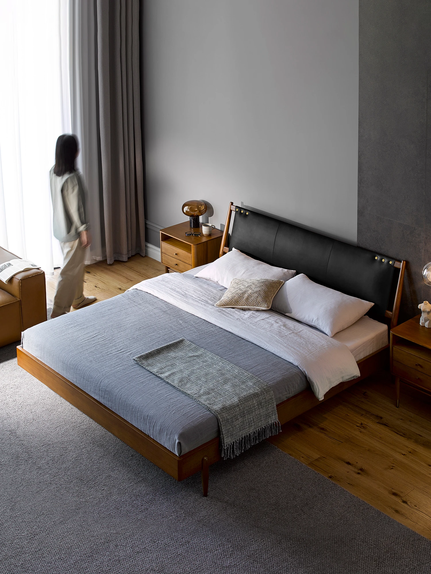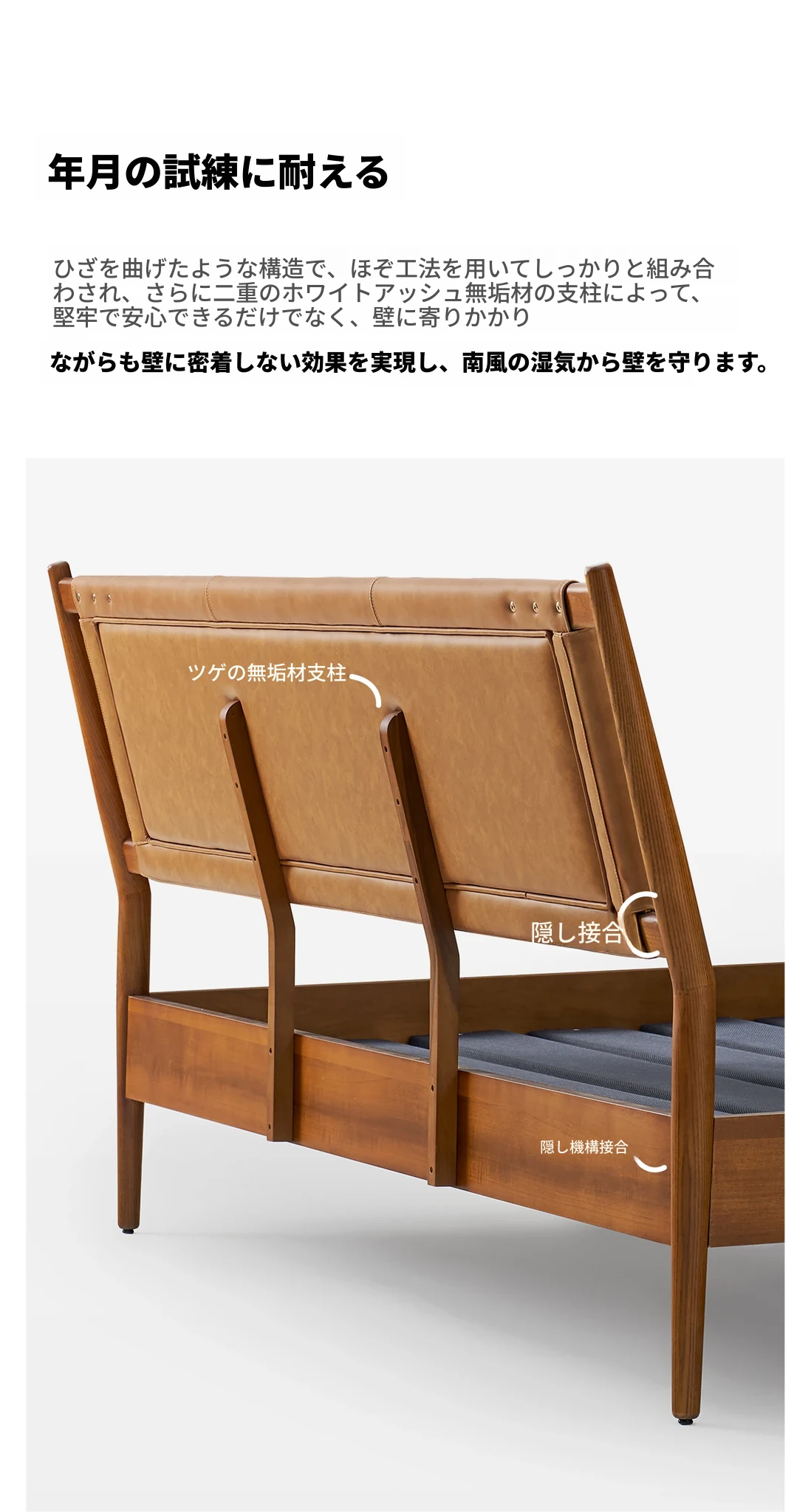 Kena可纳 北欧スタイルの高級本革ベッド - モダンでシンプルなデザイン、上質な牛革使用のヴィンテージダブルベッド。実木フレームで耐久性抜群!あなたの寝室に洗練された魅力をプラス。