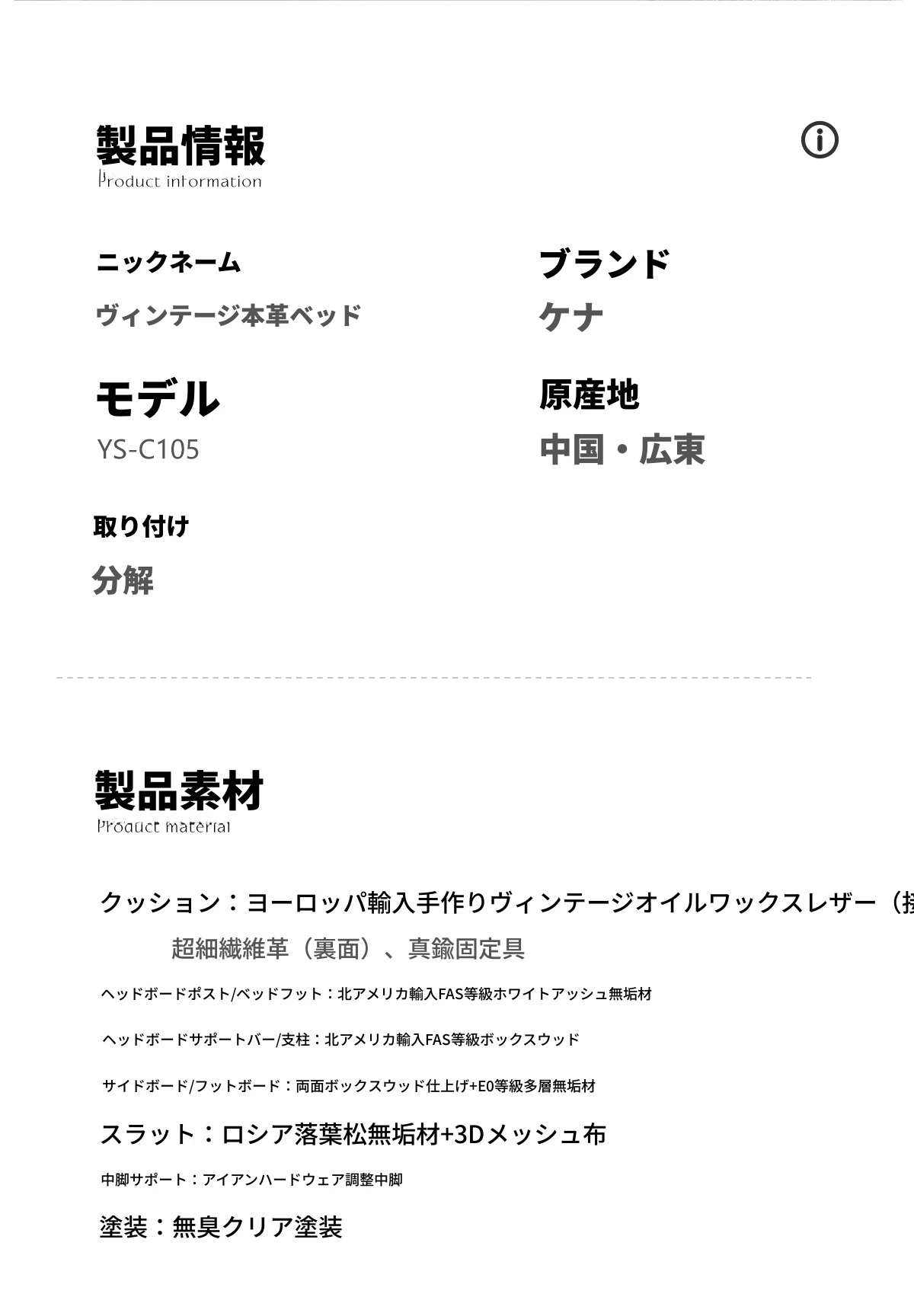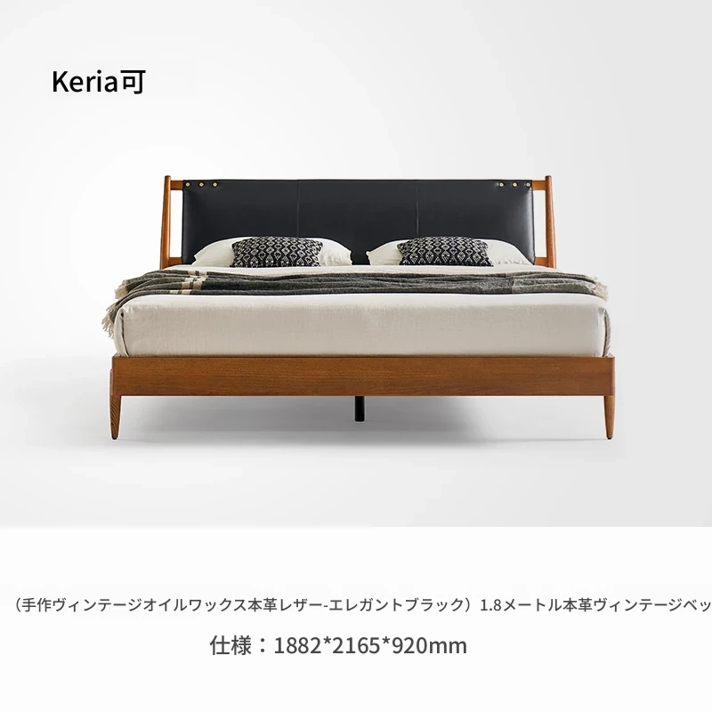 【レトロオイルワックスレザー-エレガントブラック】1.8メートル真皮レトロベッド 在庫あり
