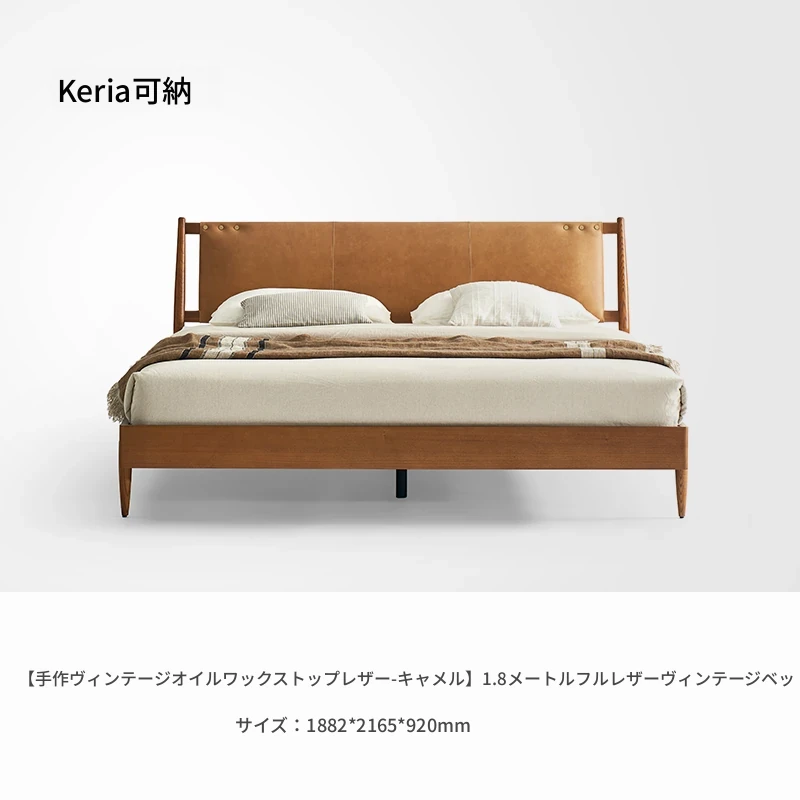 【レトロオイルワックスレザー-キャメル】1.8メートル全真皮レトロベッド 在庫あり