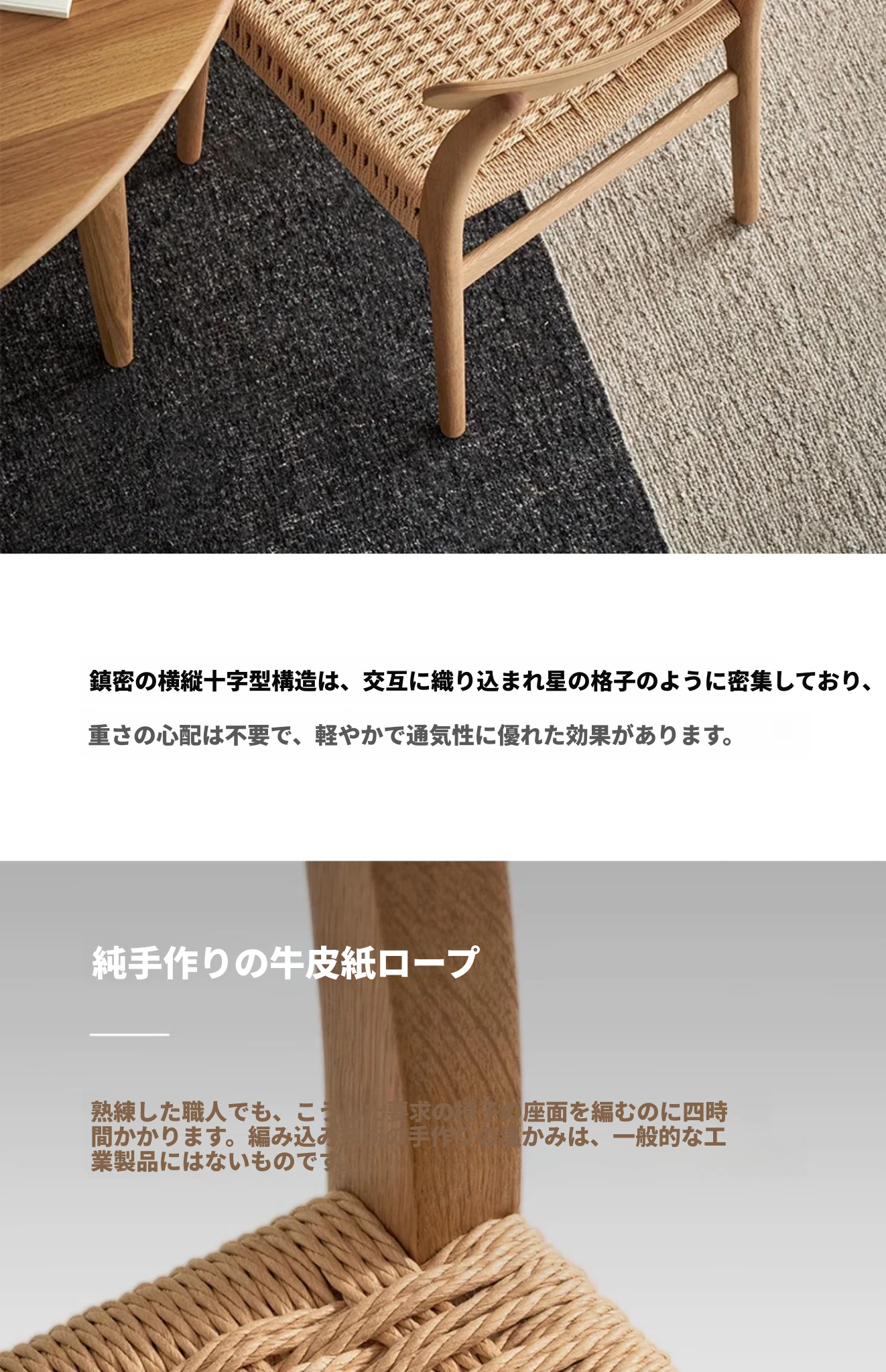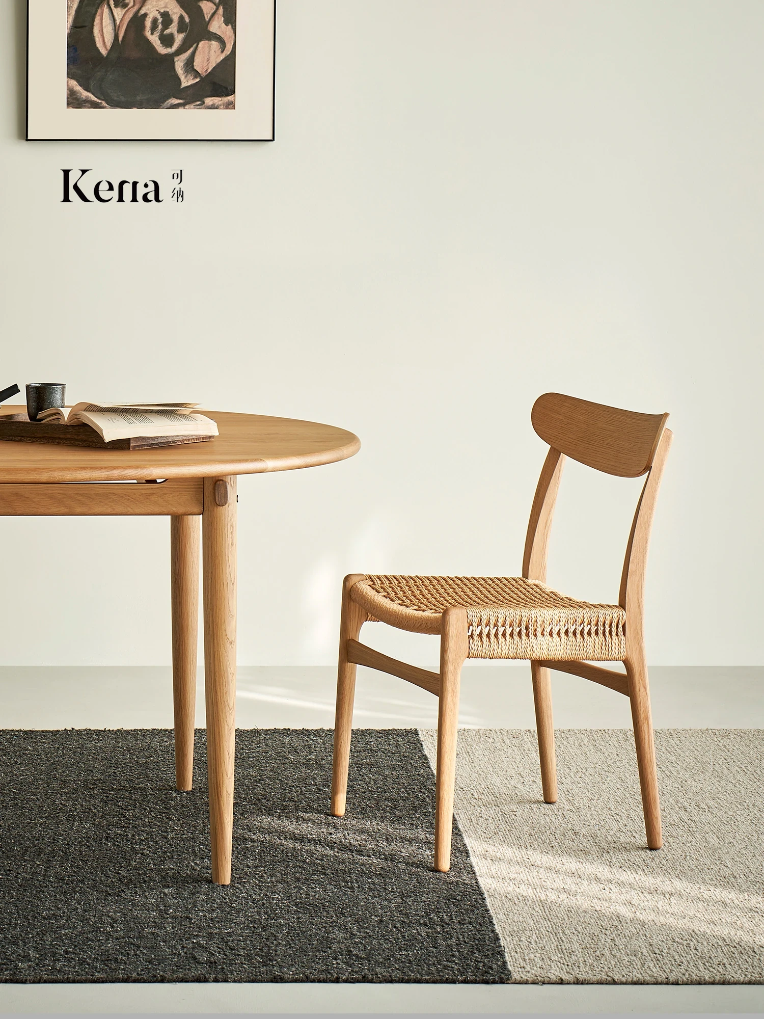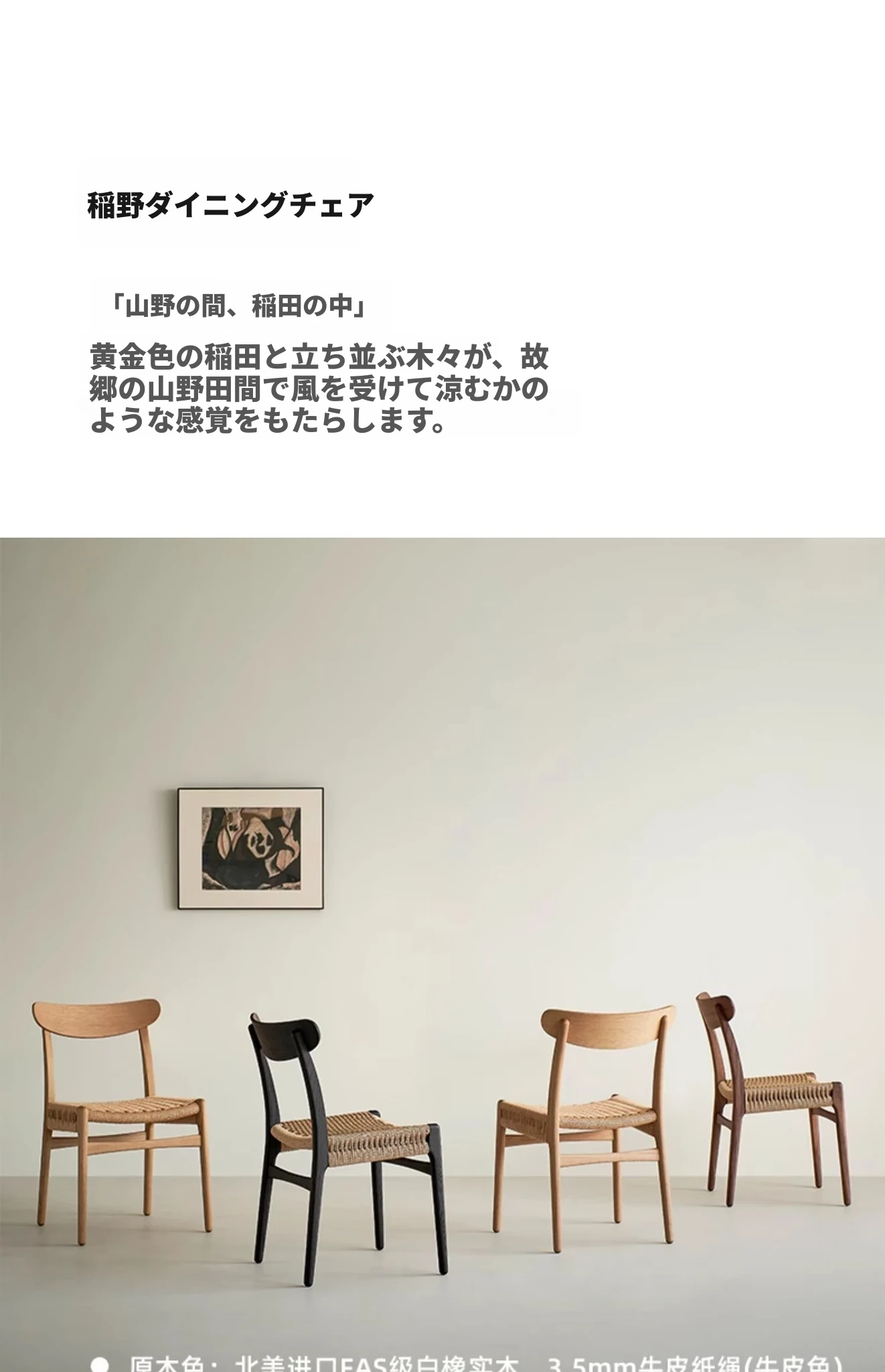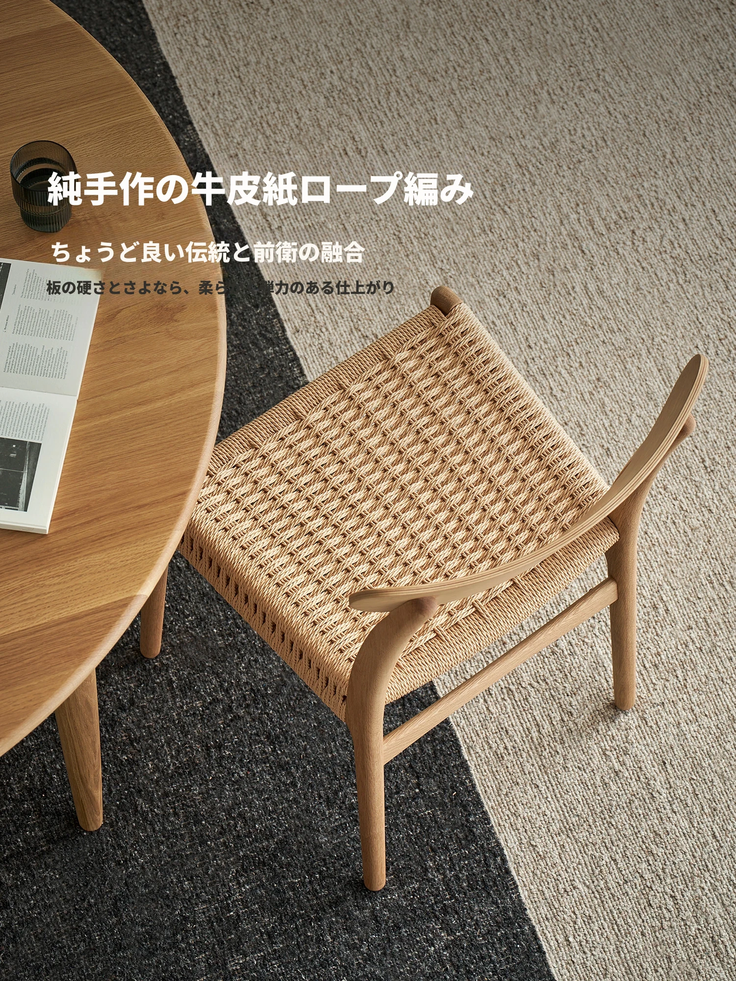 Kena可纳/稻野原木色の実木ダイニングチェア - 侘寂風のラタン編みアームレスト付き背もたれ。シンプルでスタイリッシュな家庭用書椅子。暮らしに自然の温もりを添える一品!