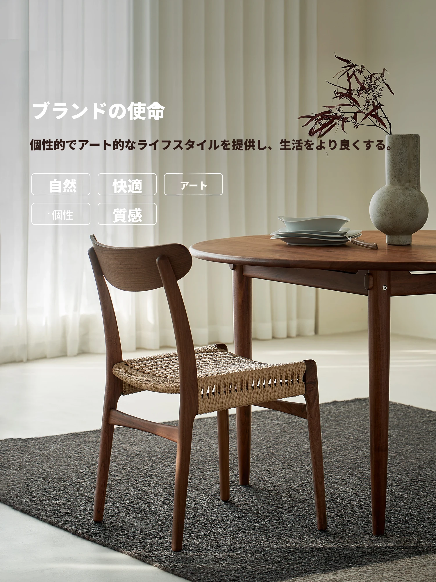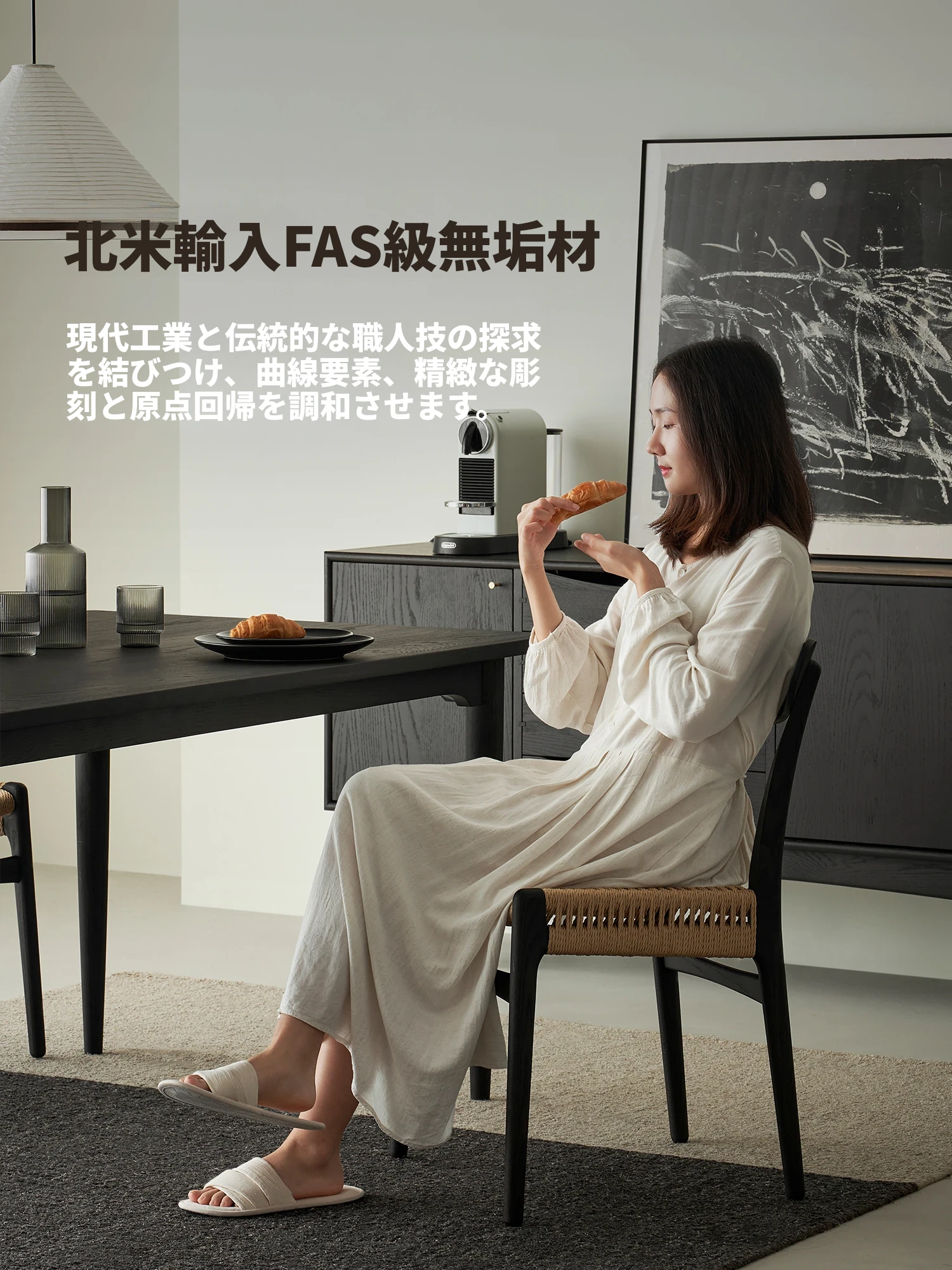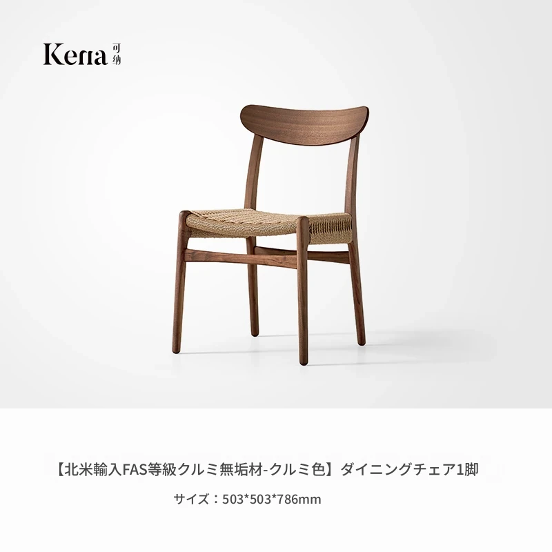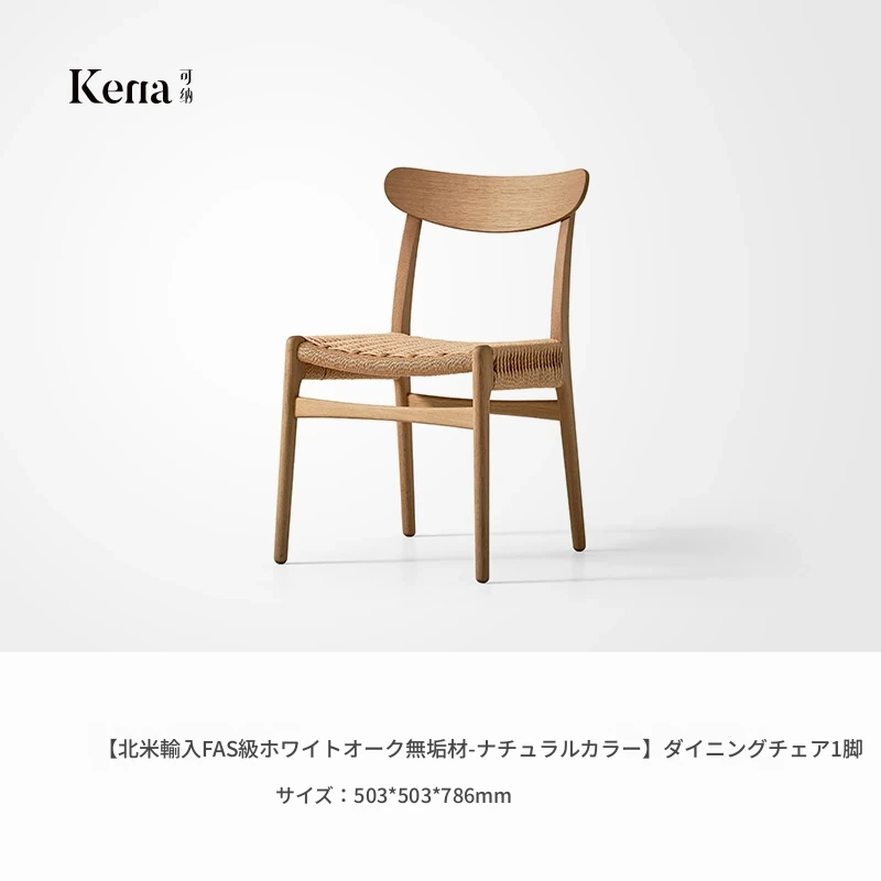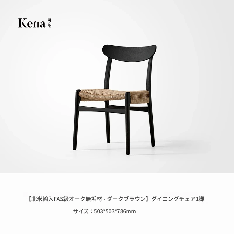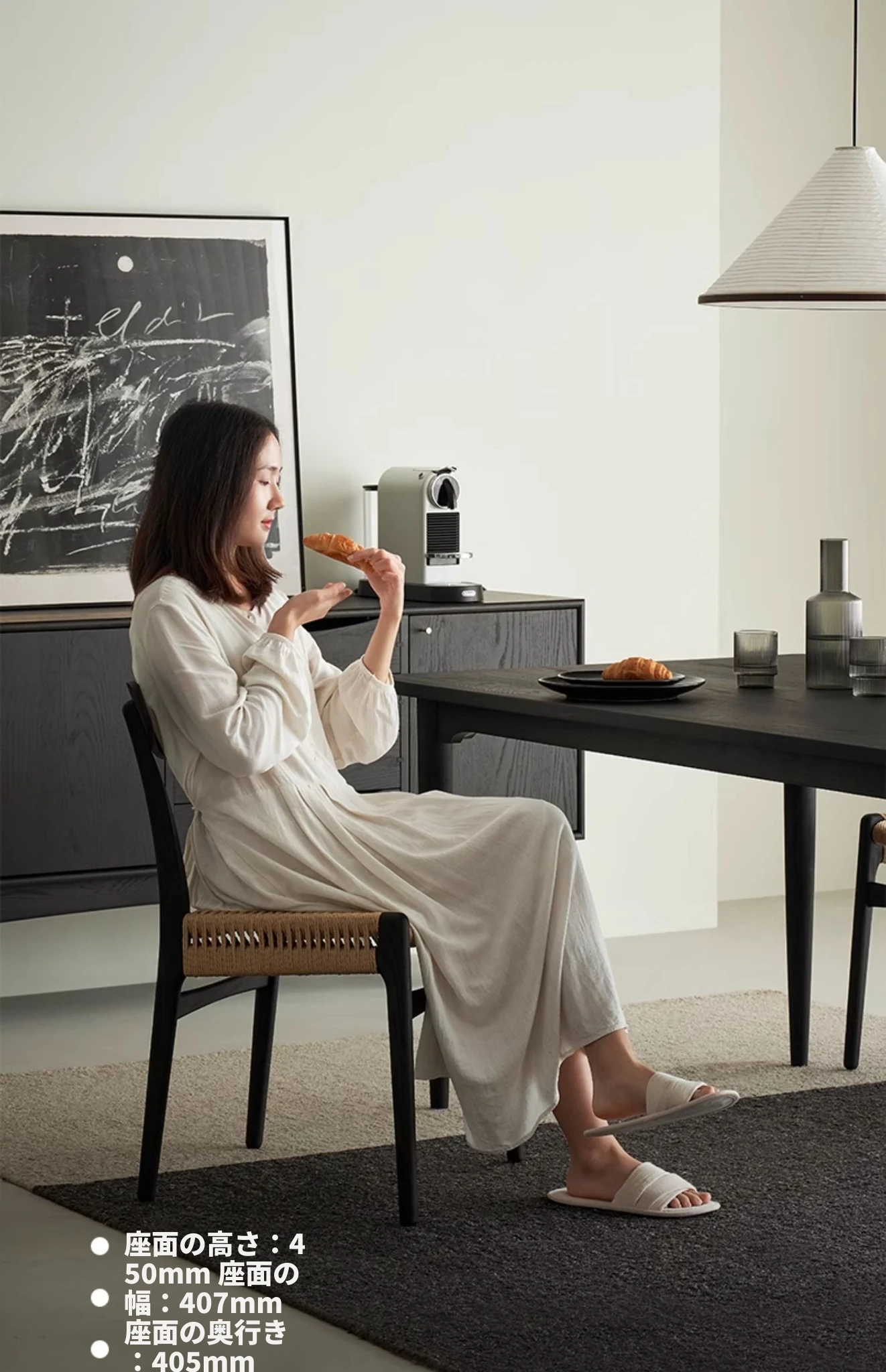 Kena可纳/稻野原木色の実木ダイニングチェア - 侘寂風のラタン編みアームレスト付き背もたれ。シンプルでスタイリッシュな家庭用書椅子。暮らしに自然の温もりを添える一品!