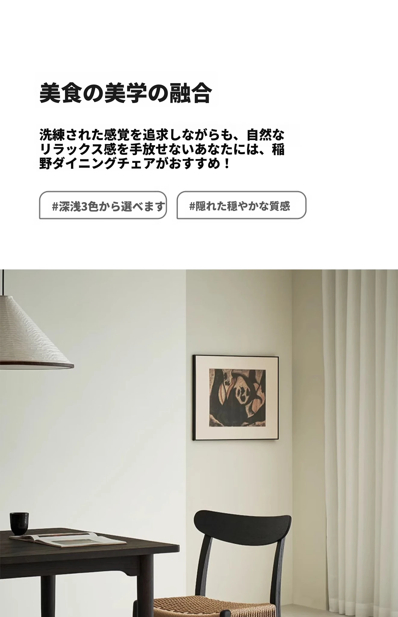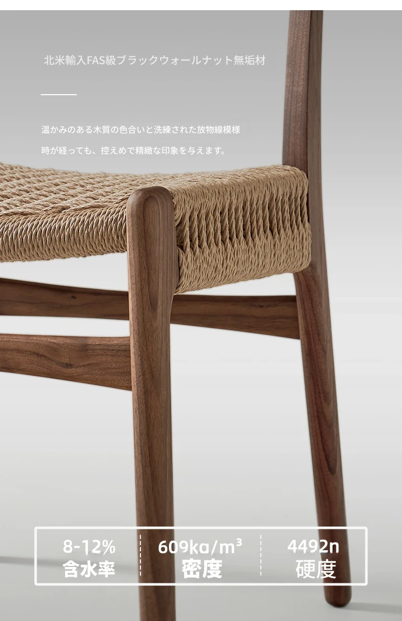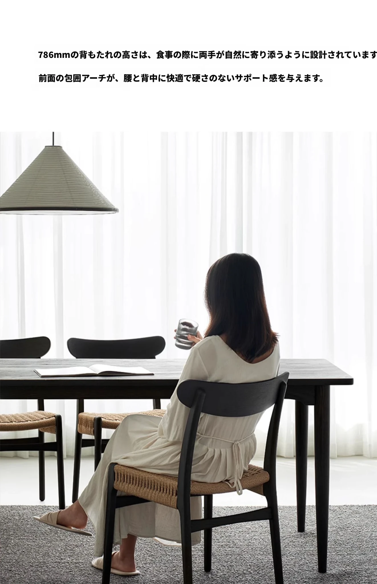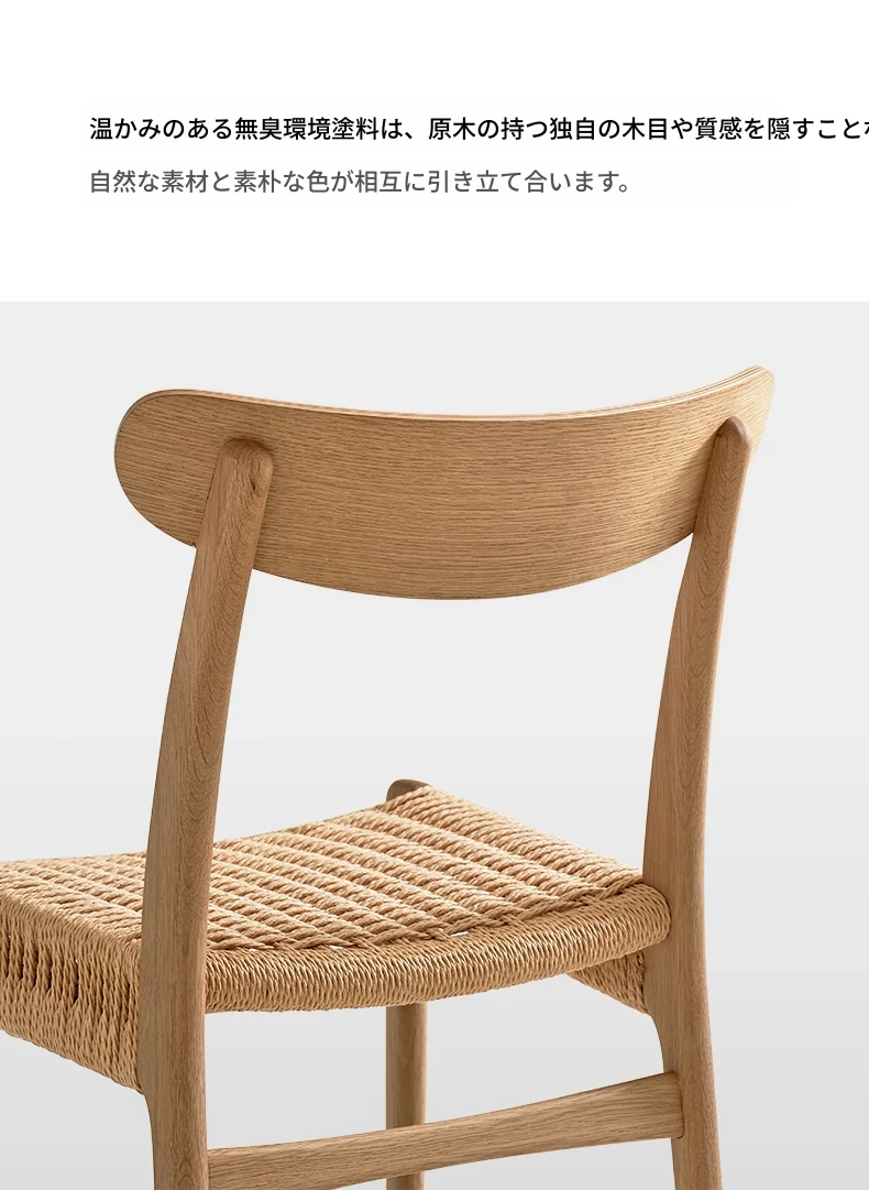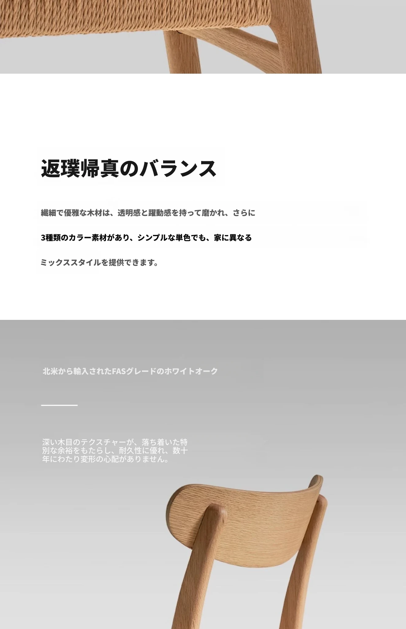 Kena可纳/稻野原木色の実木ダイニングチェア - 侘寂風のラタン編みアームレスト付き背もたれ。シンプルでスタイリッシュな家庭用書椅子。暮らしに自然の温もりを添える一品!