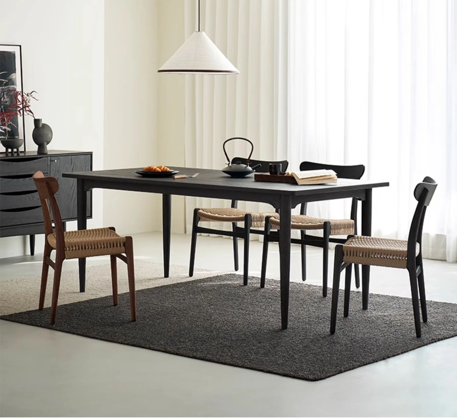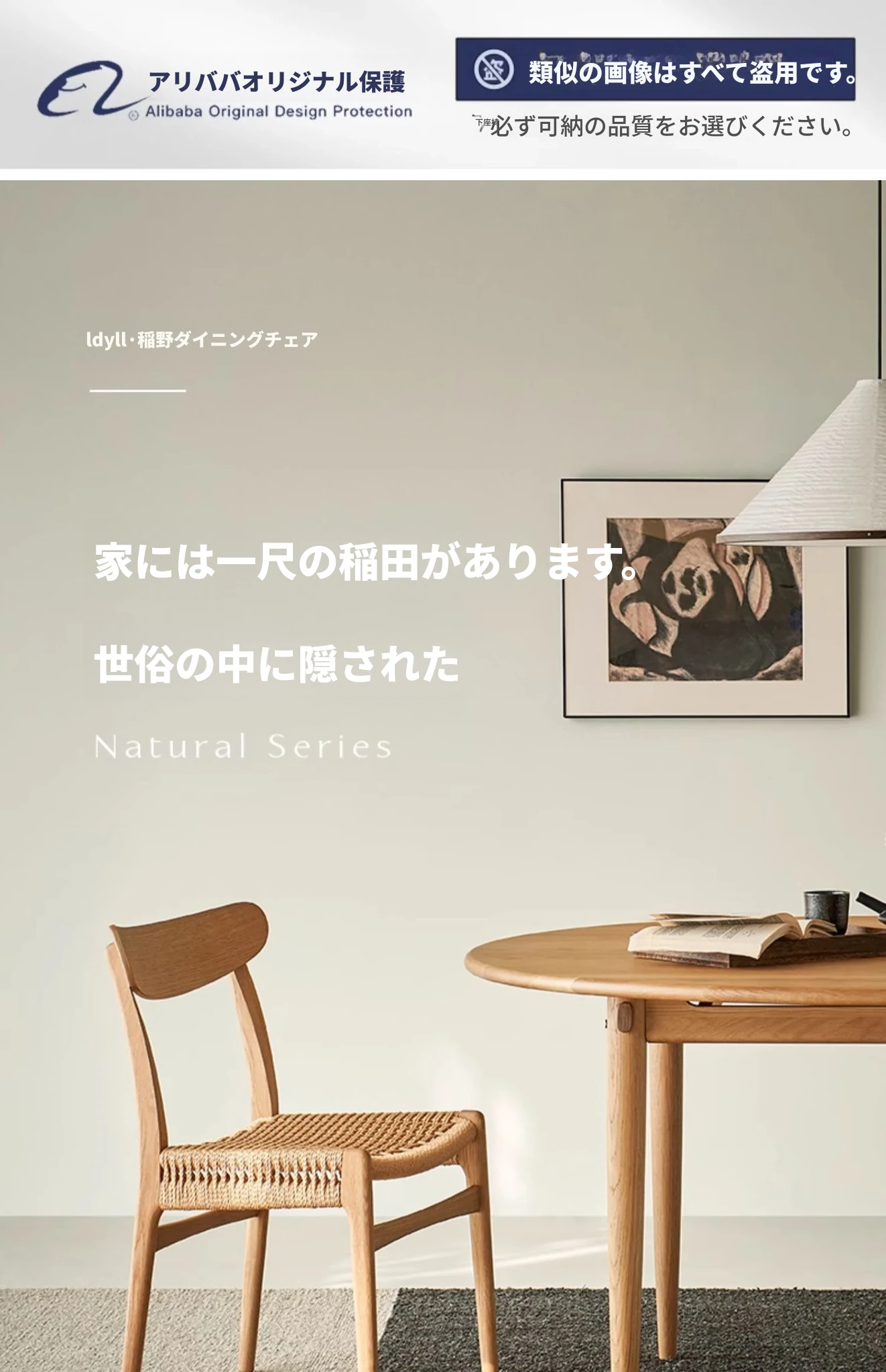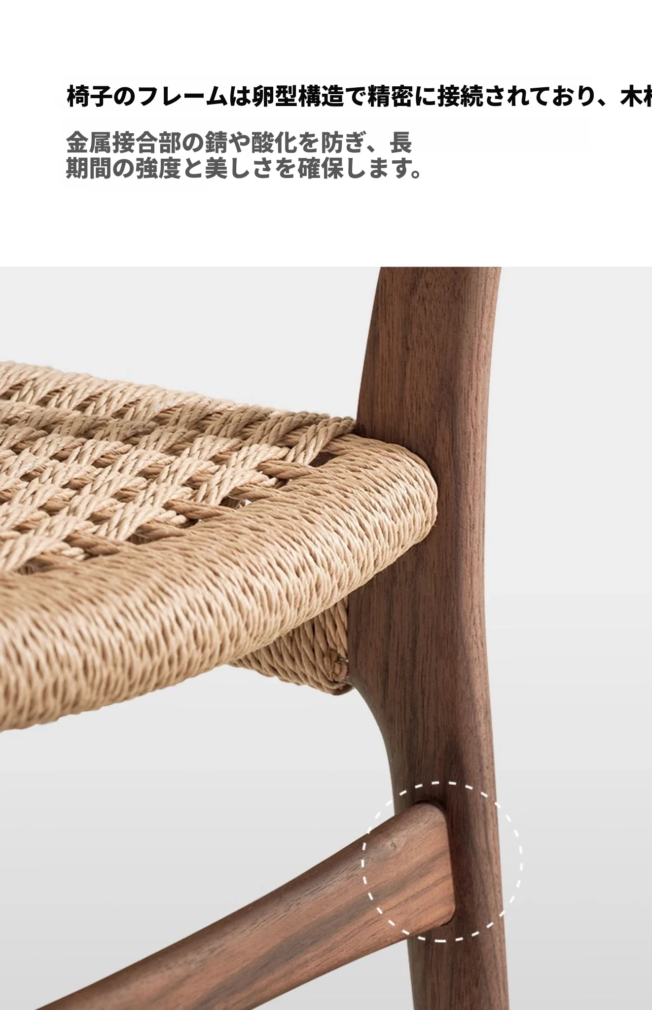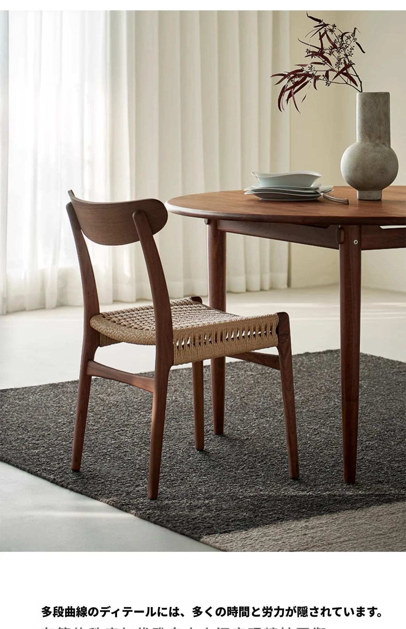 Kena可纳/稻野原木色の実木ダイニングチェア - 侘寂風のラタン編みアームレスト付き背もたれ。シンプルでスタイリッシュな家庭用書椅子。暮らしに自然の温もりを添える一品!