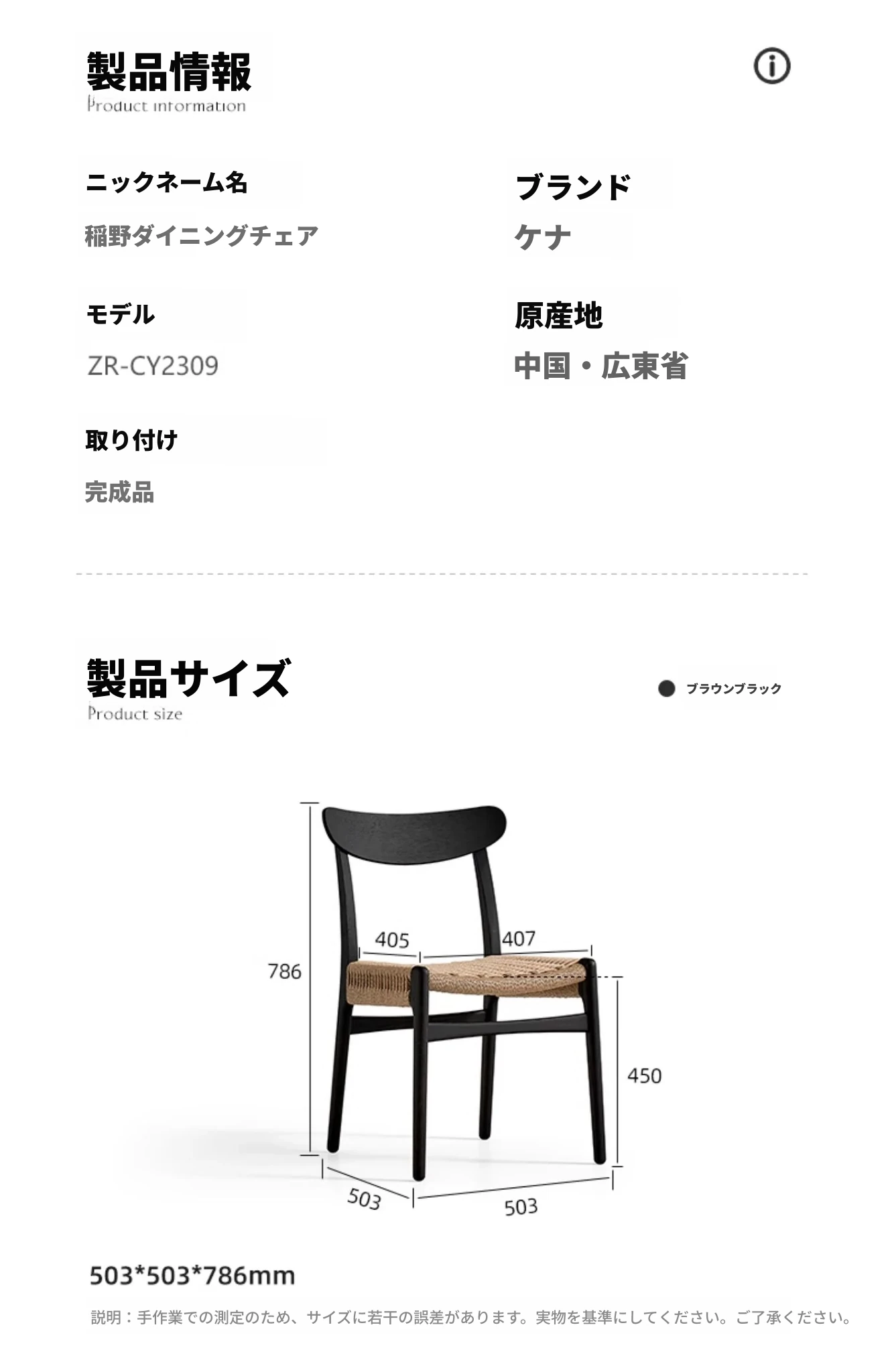 【オーク無垢材-ブラウンブラック】ダイニングチェア1脚 在庫あり