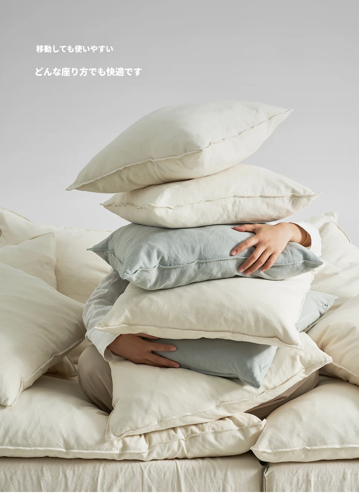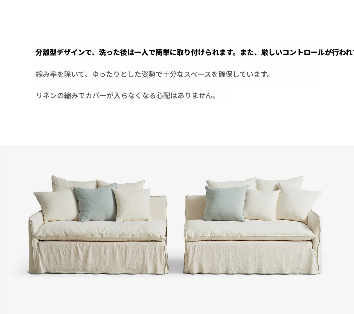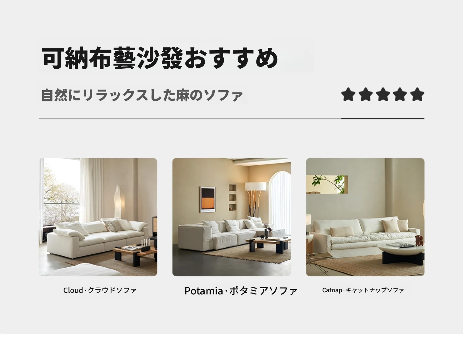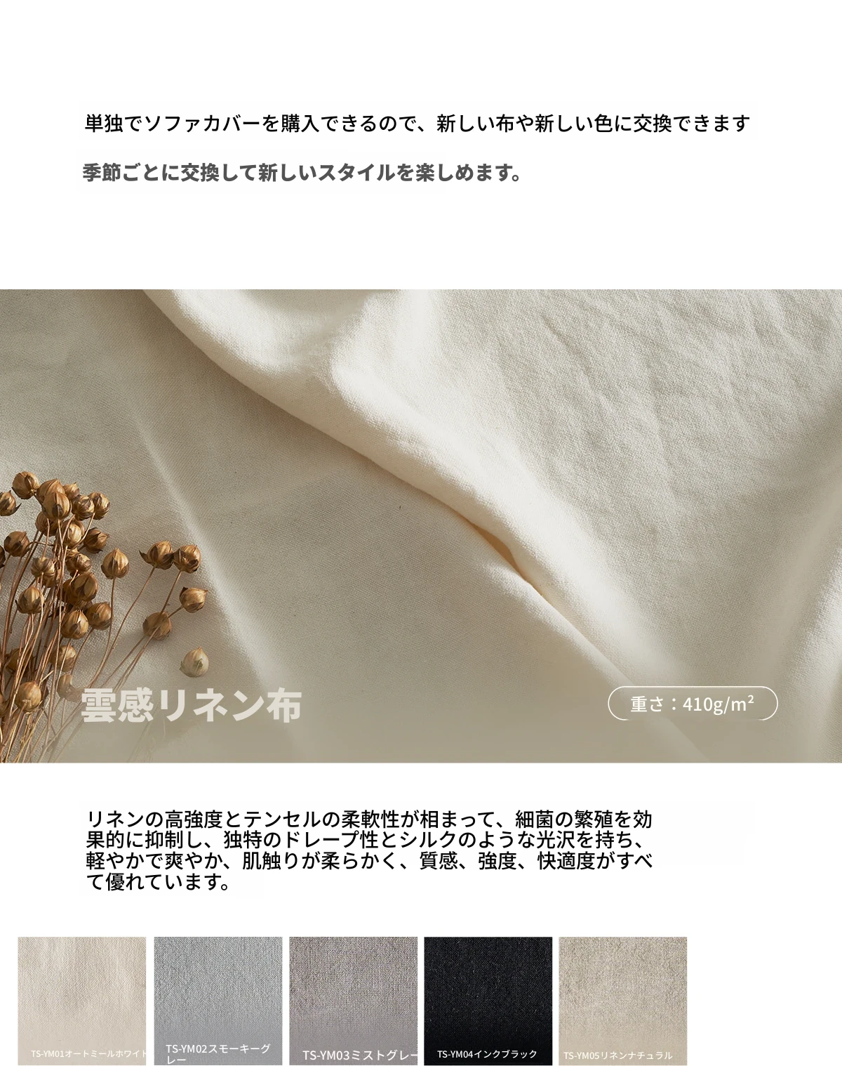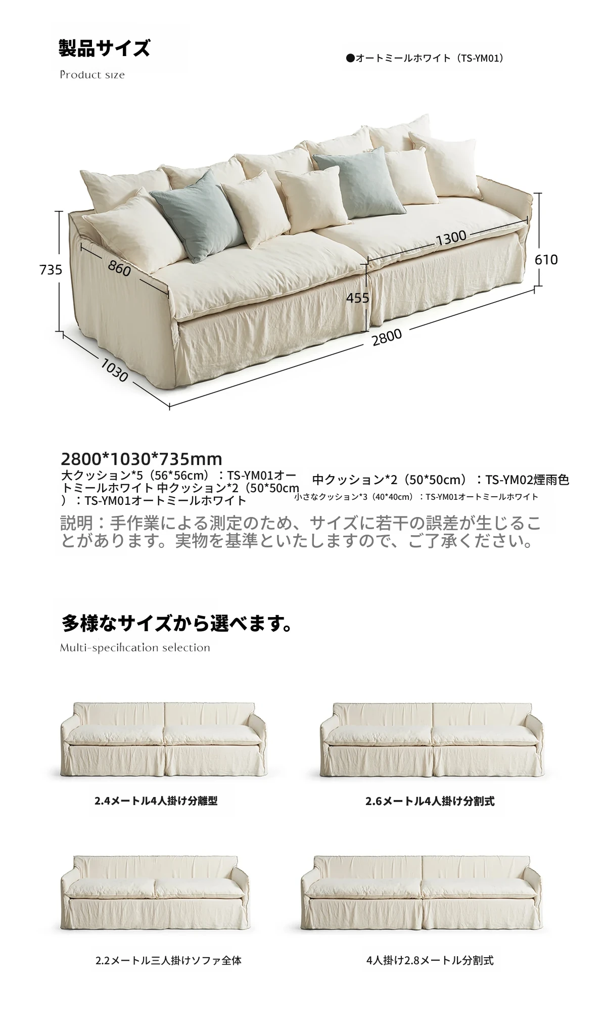 Kena可纳/肆野布艺ソファー 羽毛を使用した侘寂スタイル コンパクトな小型住居に最適 洗濯可能なナチュラルリネン素材 三人掛けZ型デザインでおしゃれな空間を演出!