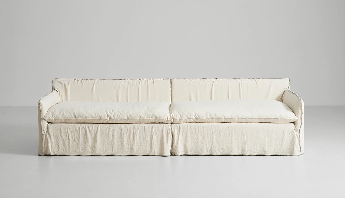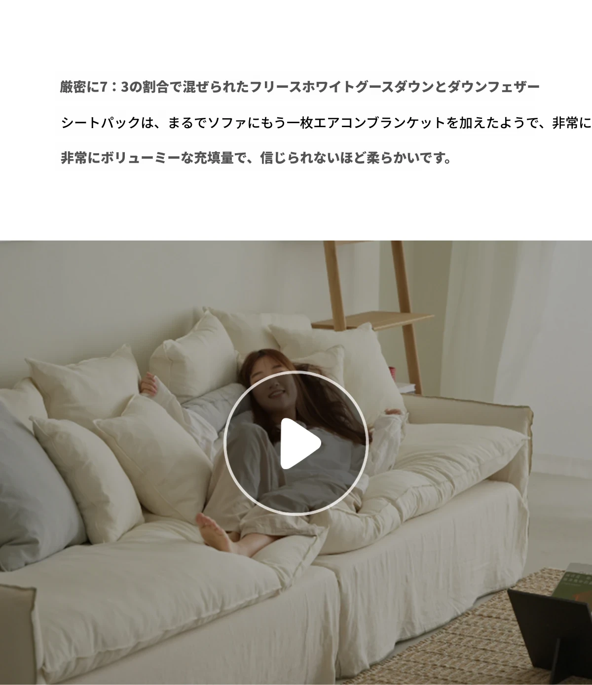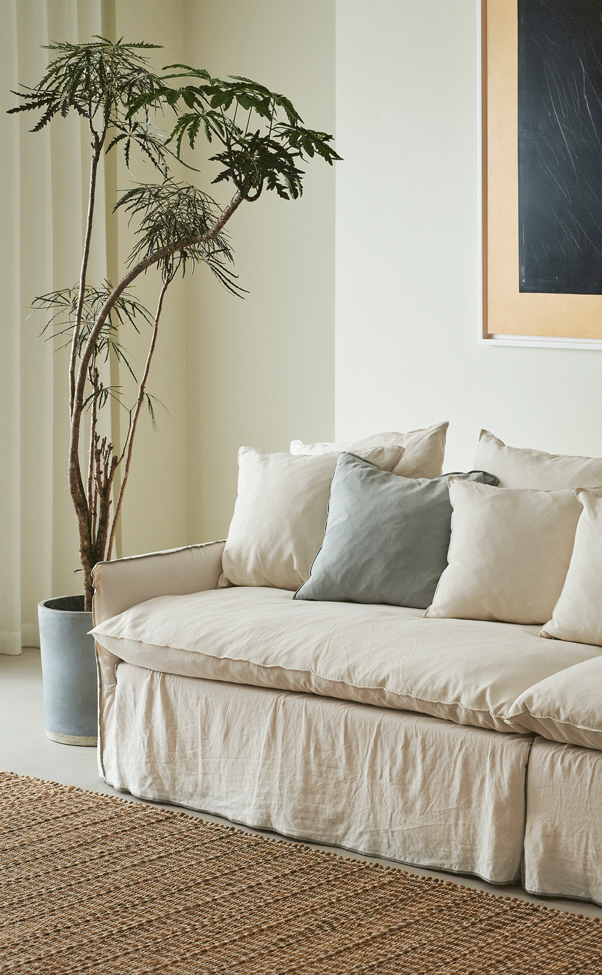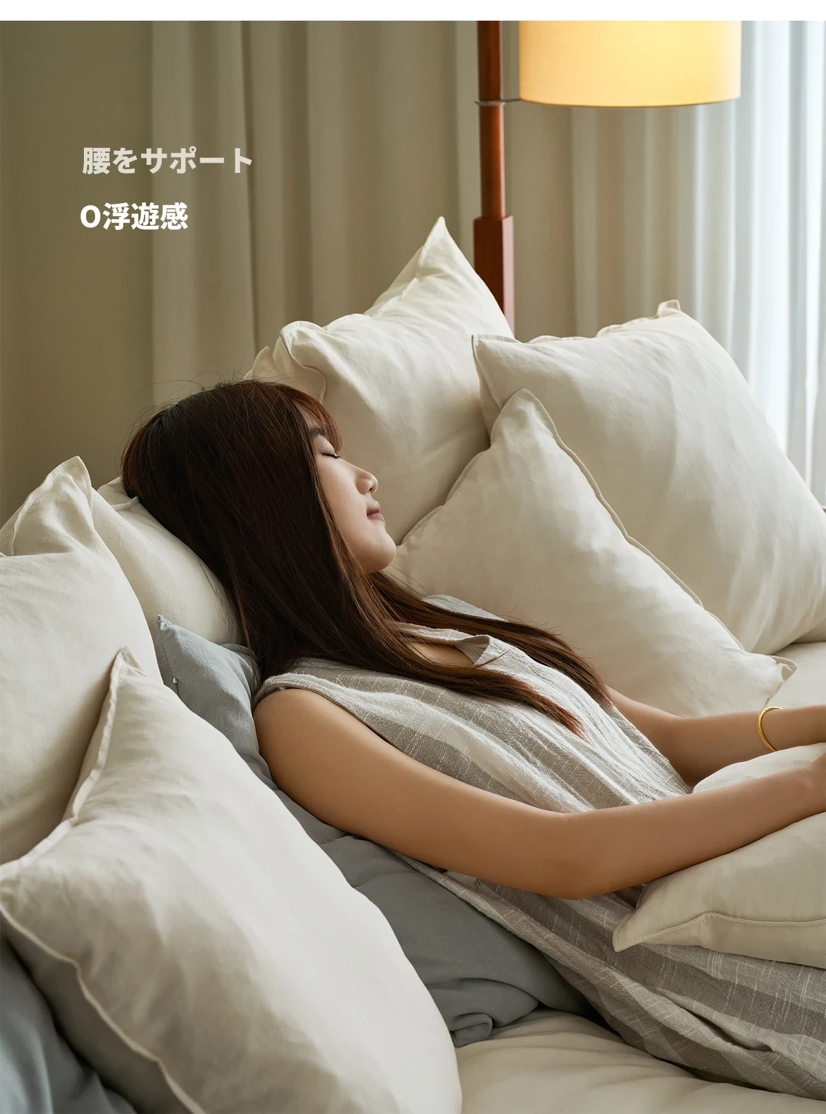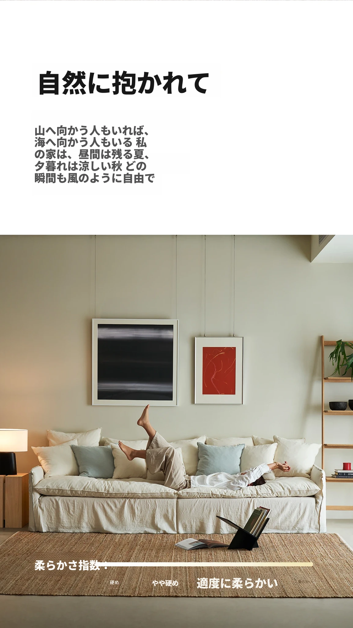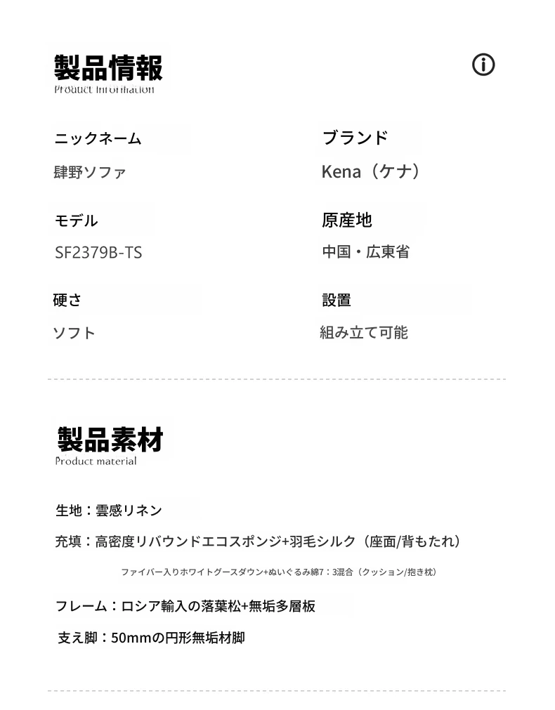 Kena可纳/肆野布艺ソファー 羽毛を使用した侘寂スタイル コンパクトな小型住居に最適 洗濯可能なナチュラルリネン素材 三人掛けZ型デザインでおしゃれな空間を演出!