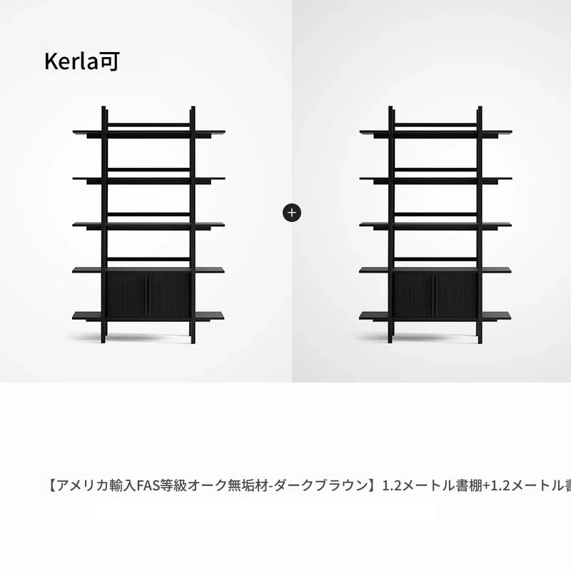 【オーク-ブラウンブラック】1.2m本棚+1.2m本棚