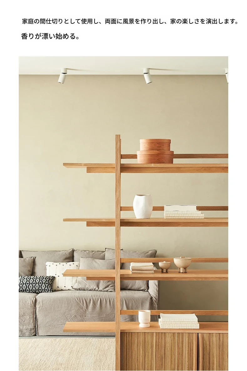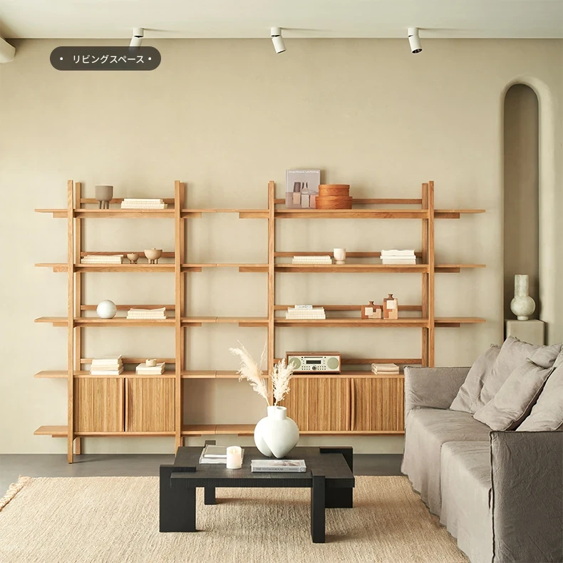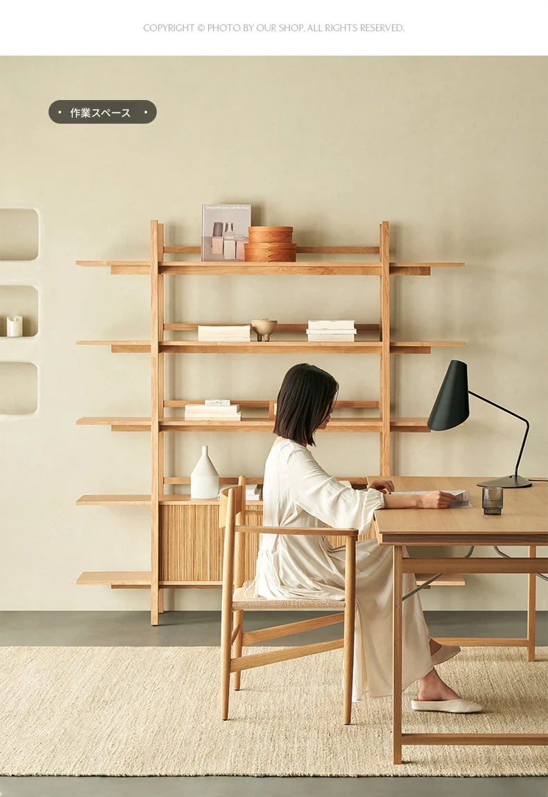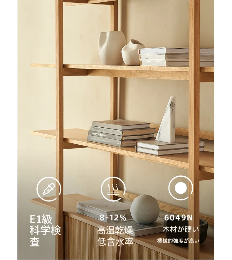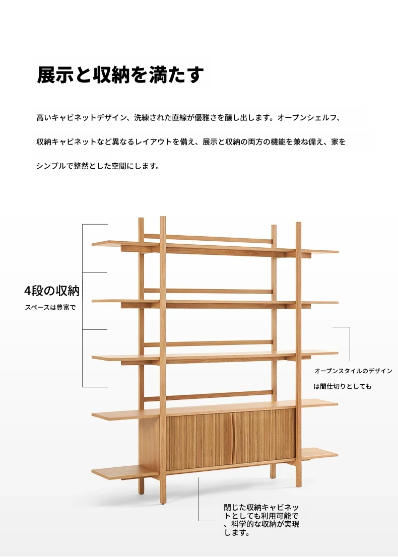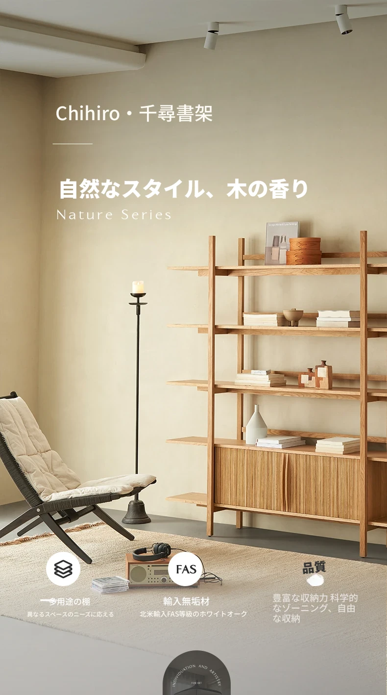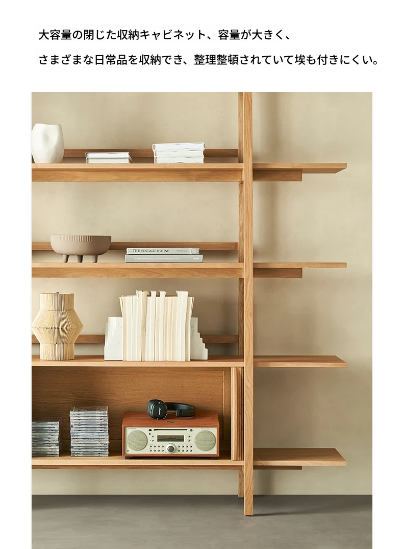 Kena可纳/千寻の本棚 - 高品質なオーク材を使用したスタイリッシュなフロアシェルフ!リビングルームにぴったりの一体型ウォールシェルフで、あなたの本やインテリアを美しく収納。家の雰囲気を格上げするアイテムです!