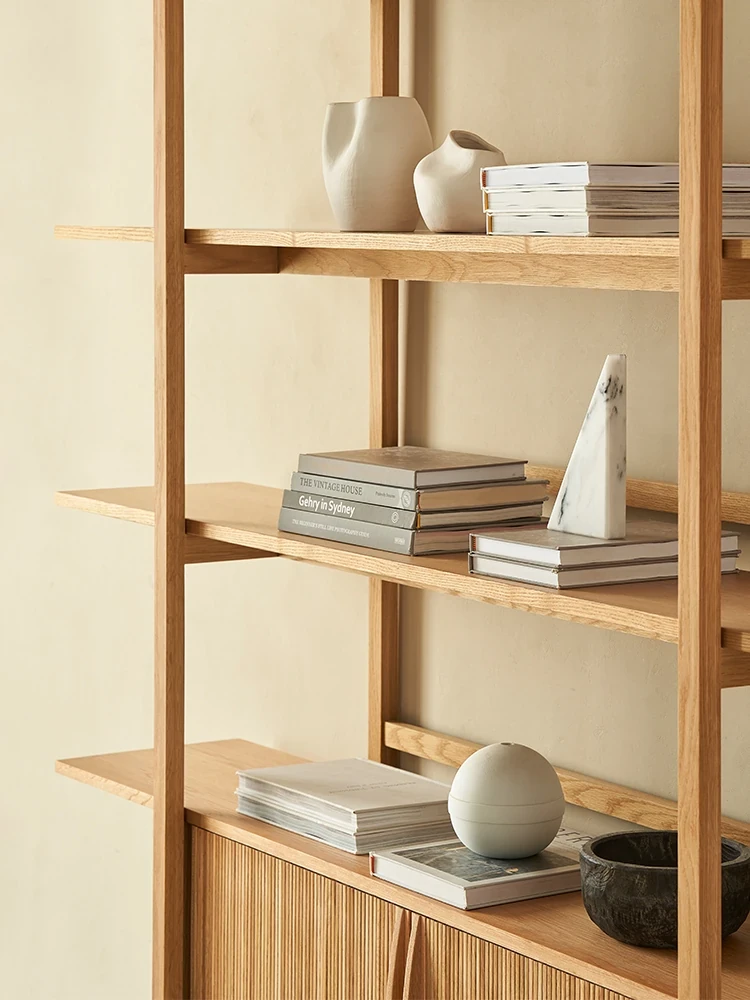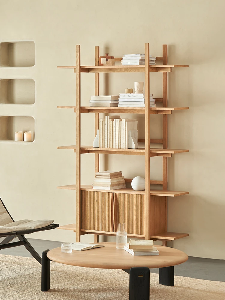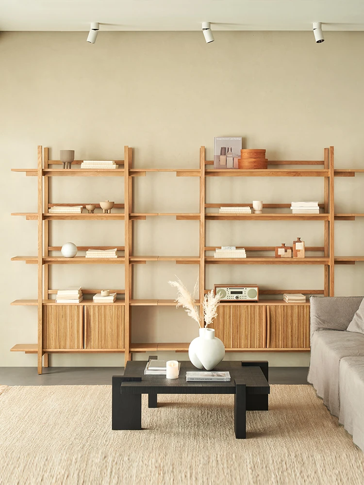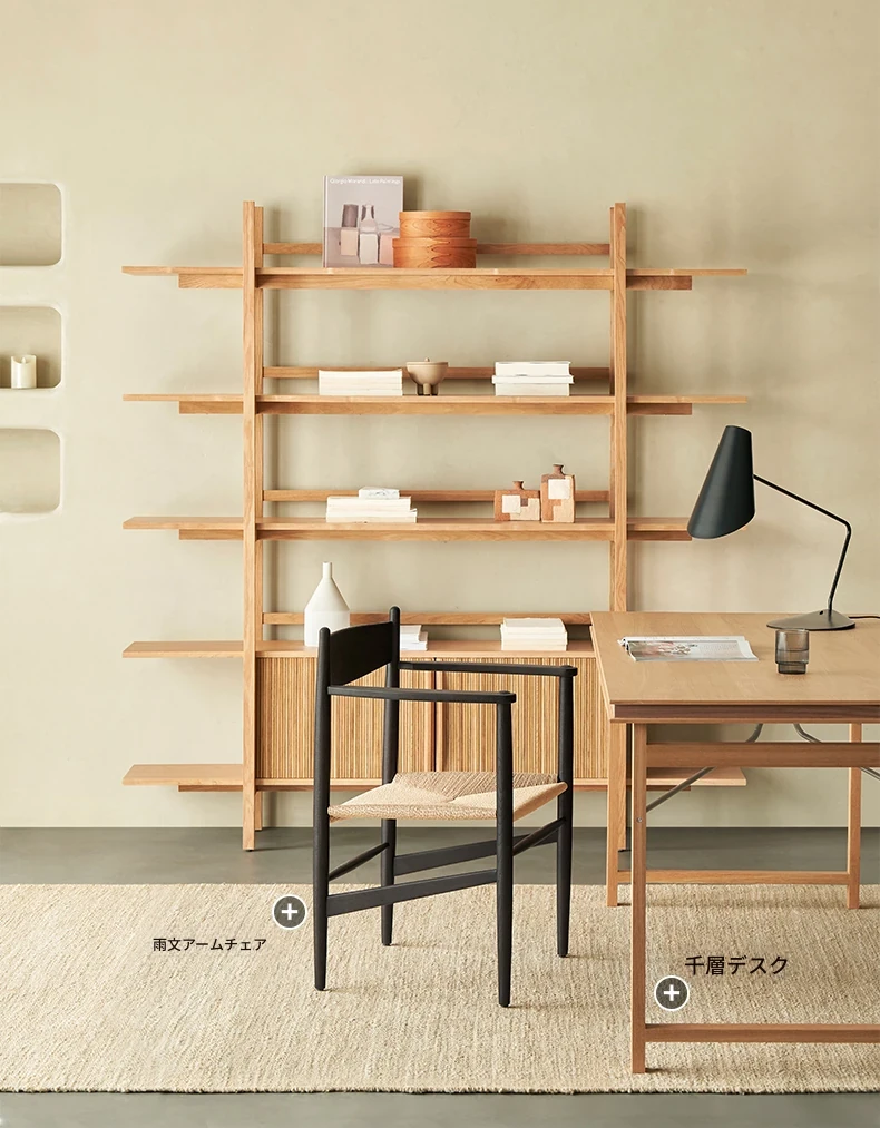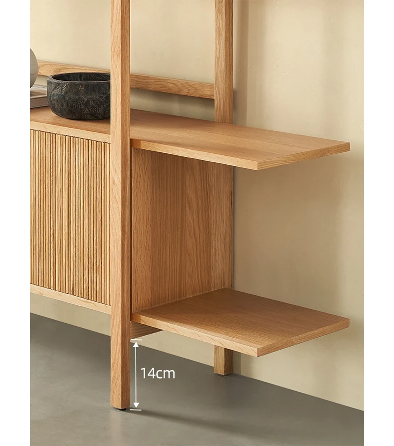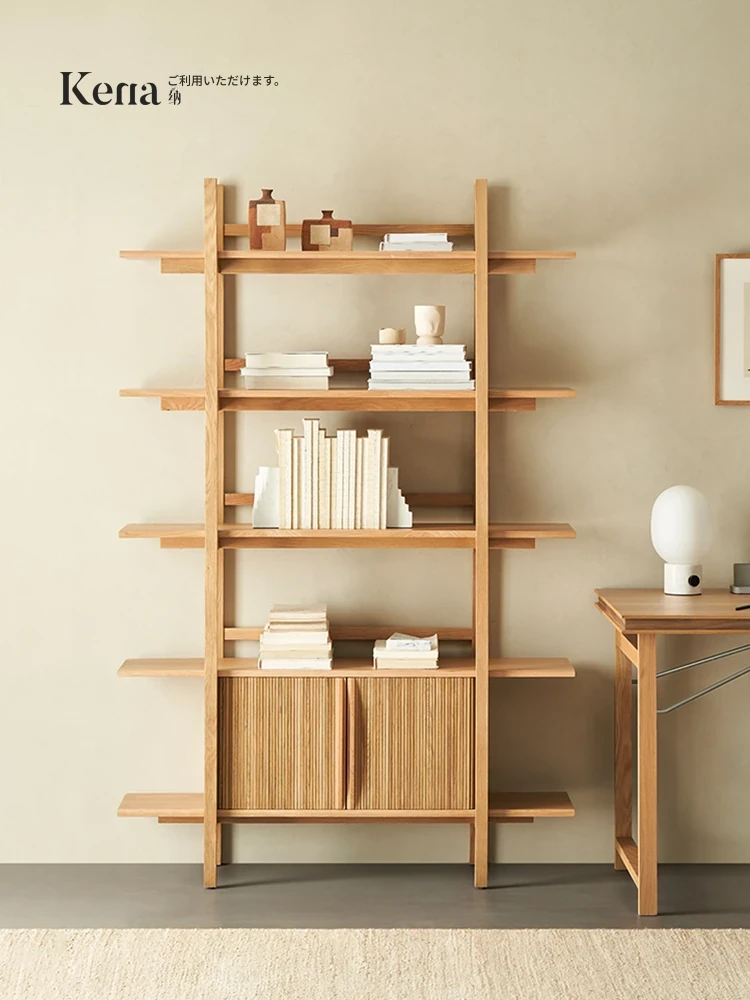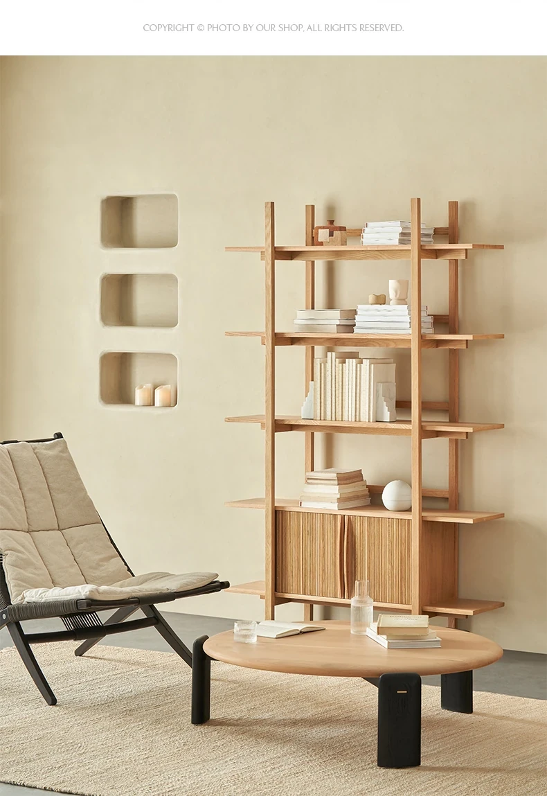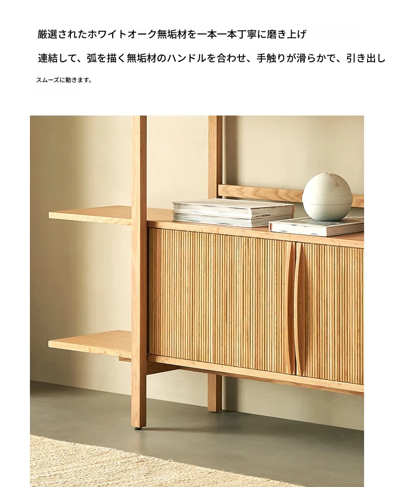 Kena可纳/千寻の本棚 - 高品質なオーク材を使用したスタイリッシュなフロアシェルフ!リビングルームにぴったりの一体型ウォールシェルフで、あなたの本やインテリアを美しく収納。家の雰囲気を格上げするアイテムです!