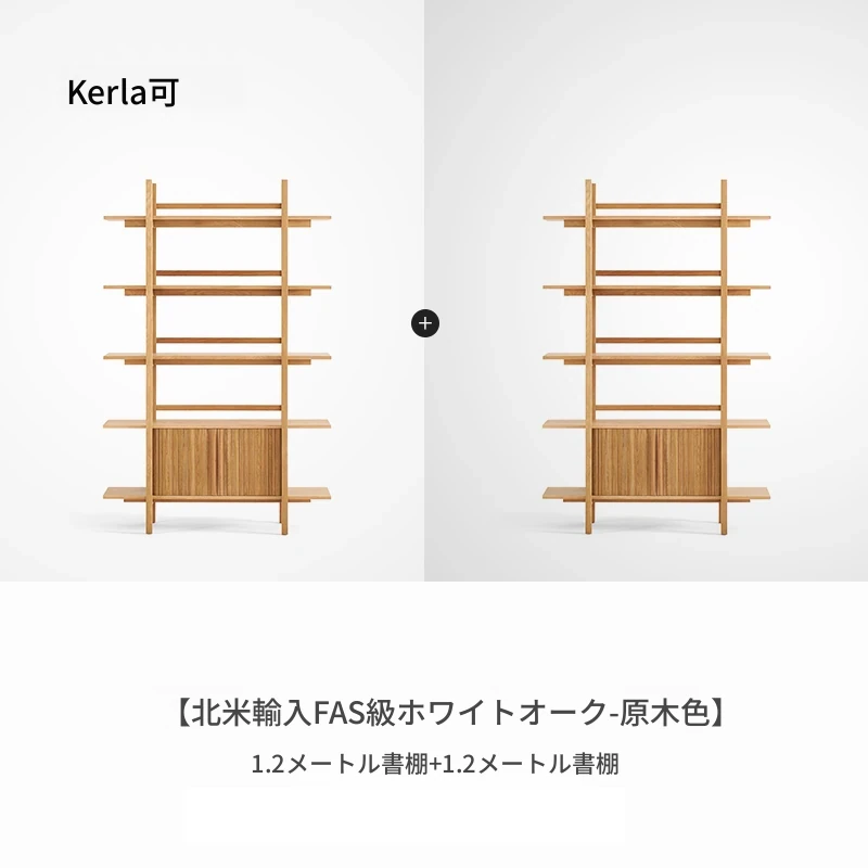 【ホワイトオーク-ナチュラルカラー】1.2m本棚+1.2m本棚