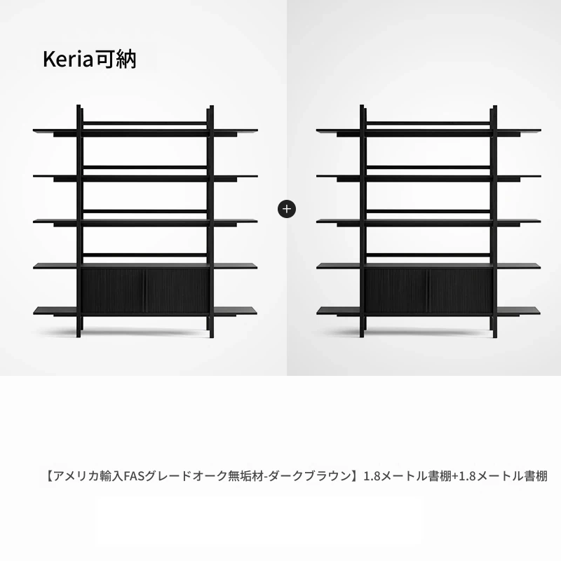 【オーク-ブラウンブラック】1.8m本棚+1.8m本棚