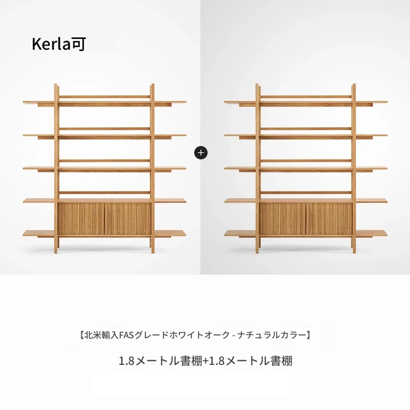 【ホワイトオーク-ナチュラルカラー】1.8m本棚+1.8m本棚